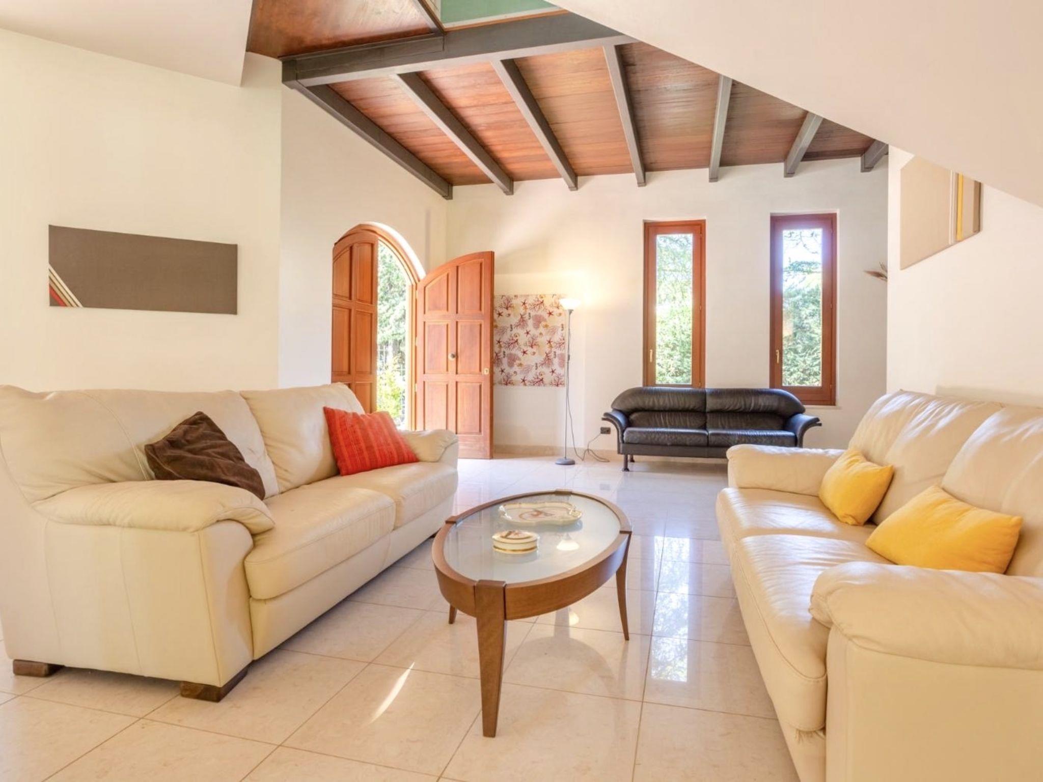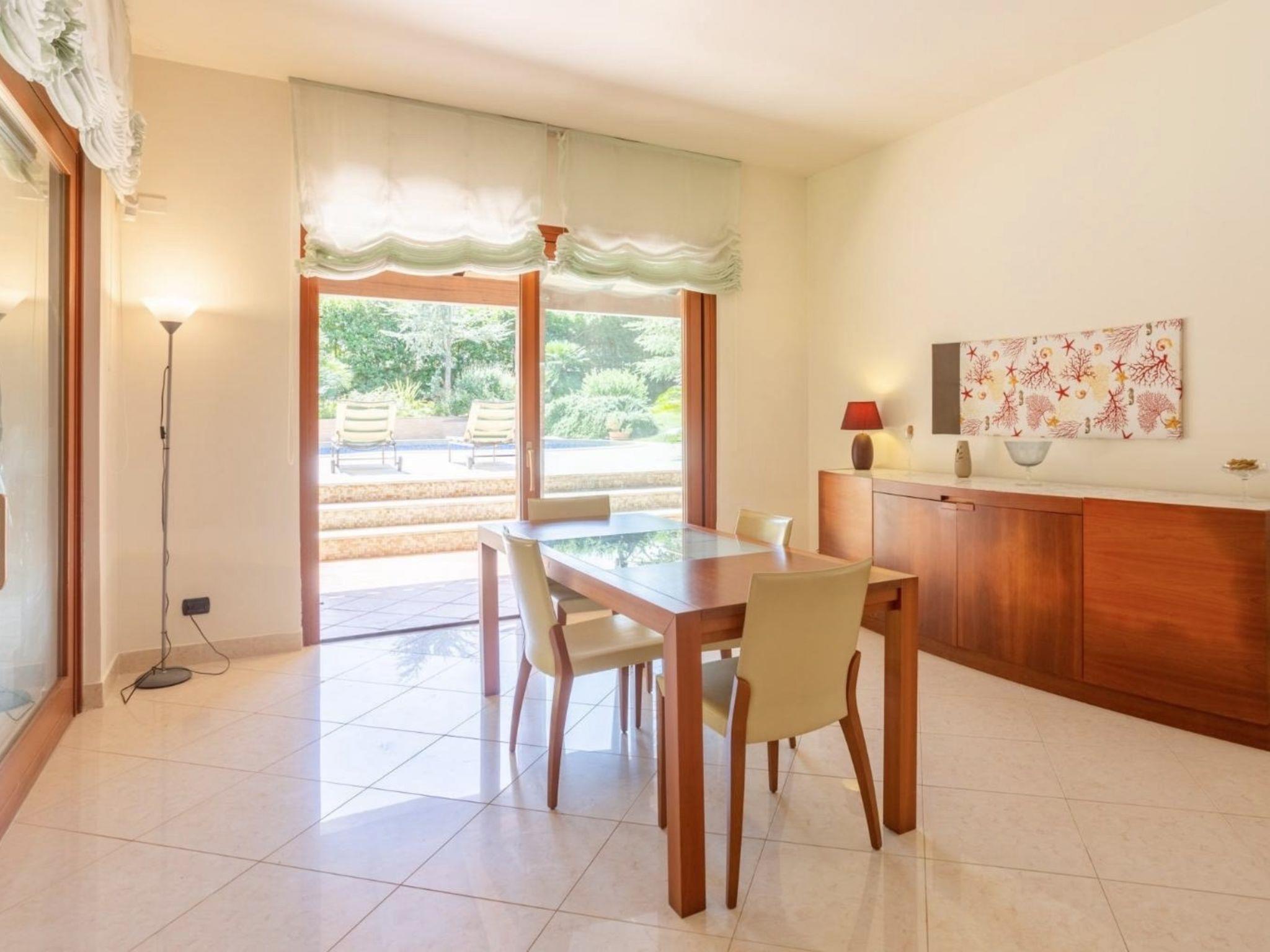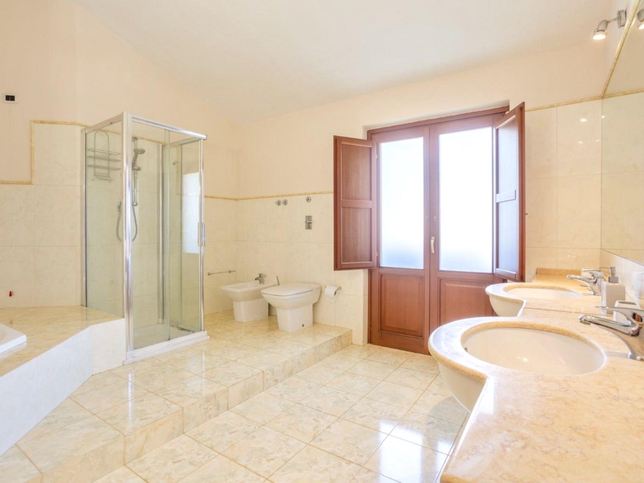 5-room villa 320 m2 on 2 levels. Comfortable and tasteful furnishings: large living/dining room with panoramic window with TV (flat screen). Exit to the garden, to the patio, to the swimming pool. Kitchen (oven, dishwasher, 5 gas rings, toaster, kettle, microwave, electric coffee machine) with small dining table. Exit to the patio. Shower/bidet/WC. Upper floor: living room with 1 sofabed. 1 double bedroom 50 m2 with bath/shower/bidet/WC, double hand-basin, air conditioning and forced-air heating. Exit to the balcony. 1 double bedroom with air conditioning and forced-air heating. Exit to the balcony. 1 room with 2 beds, air conditioning and forced-air heating. Exit to the balcony. Gallery with 1 double bed and air conditioning. Bath/shower/bidet/WC. Heating, air-conditioning, forced-air heating. Heating available only from 01.12. to 31.03, Heating not available in all rooms. 3 balconies 3 m2, large patio 80 m2, roofed. Terrace furniture, barbecue, deck chairs. Facilities: washing machine, iron, children's high chair, baby cot for up to 2 year olds, hair dryer. Internet (WiFi, free). Parking (3 cars). Please note: smoke alarm, fire extinguisher. IT081022C24IDQ5SVW