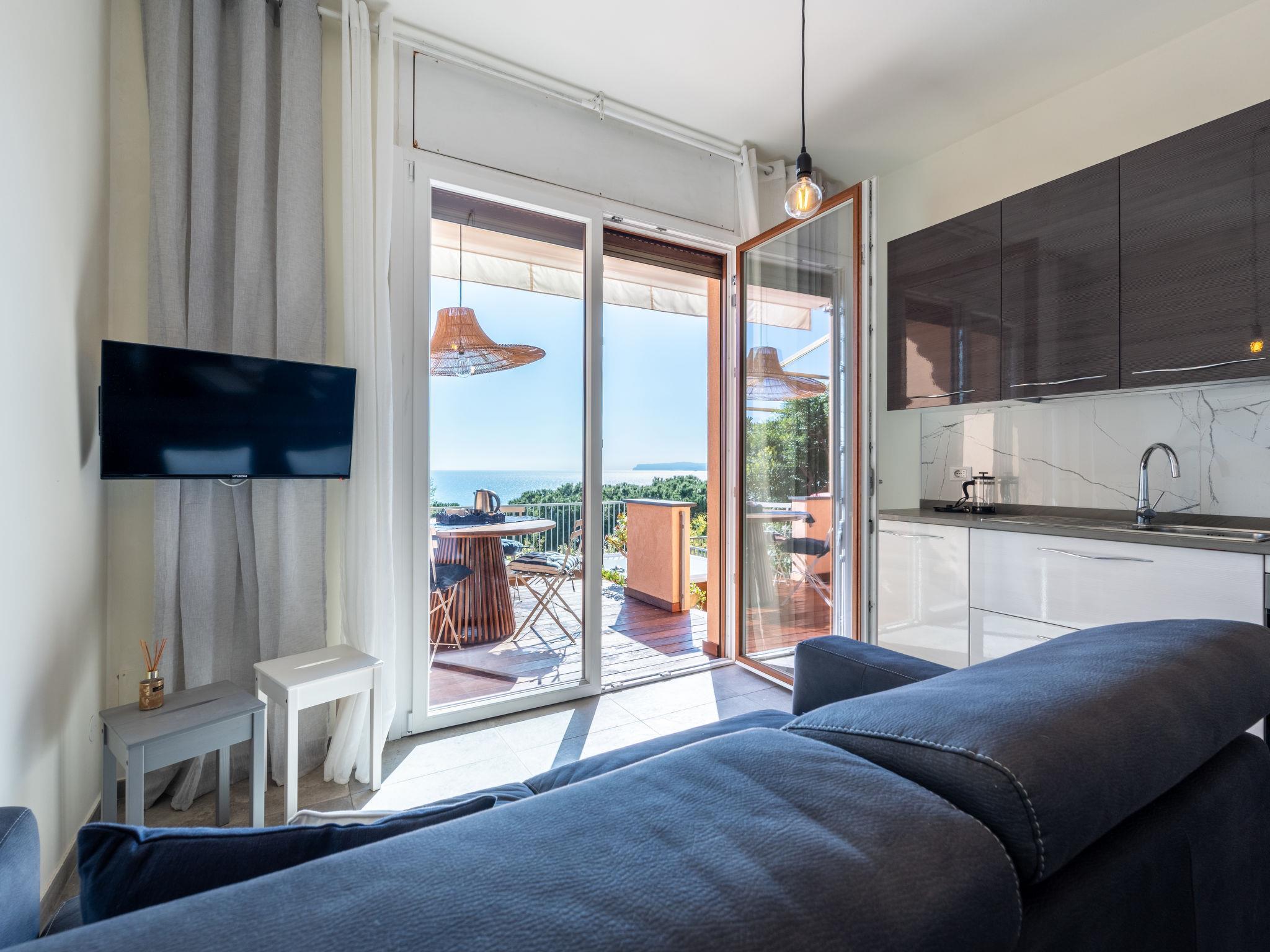 "Casa Clio", 3-room apartment 87 m2, on the ground floor. Bright, fully renovated in 2023, beautiful and modern furnishings: living/sleeping room with panoramic window with 1 double sofabed, dining table and TV. Exit to the terrace. 1 double bedroom. Exit to the balcony. 1 room with 2 beds. Open kitchen (oven, dishwasher, 4 induction hot plates, toaster, kettle, electric coffee machine). 2 showers/bidet/WC. (extra), air-conditioning, forced-air heating. Heating available only from 15.10. to 15.04. Large terrace. Terrace furniture, barbecue, deck chairs. Very beautiful panoramic view of the sea. Facilities: washing machine, iron, baby cot, hair dryer. Internet (WiFi, free). Parking. Please note: 1 small pet/ dog allowed. Private entrance, smoke alarm, fire extinguisher. IT009065C24WSIJDA7