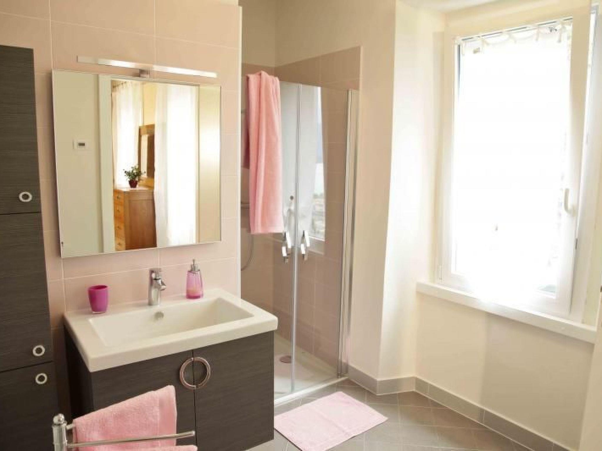 The villa has two floors: on the ground floor there is a spacious, modernly equipped kitchen, a large living room (with sofa bed), a double bedroom and a bathroom. The stone staircase leads to the upper floor where there are two double bedrooms, both with en-suite bathrooms, and a lovely balcony overlooking the lake.