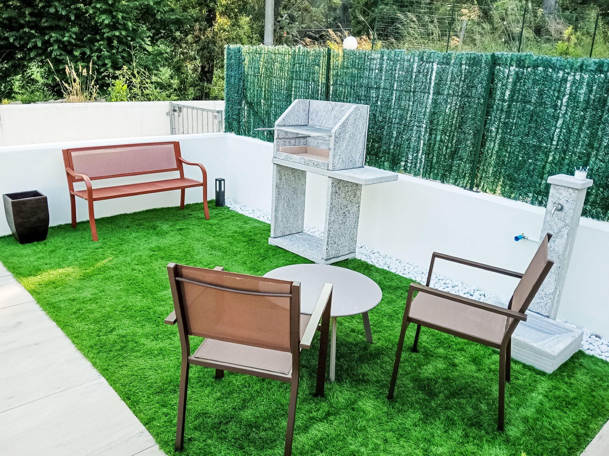 "Suite Garden 31", 2-room terraced house 70 m2, on the ground floor. Modern and tasteful furnishings: living/dining room with 1 double sofabed (160 cm, length 200 cm), TV. Exit to the garden. Kitchen-/living room (oven, dishwasher, 4 ceramic glass hob hotplates, toaster, kettle, microwave, electric coffee machine). Exit to the garden. Shower/bidet/WC. 2nd upper floor: 1 double bedroom. Shower/bidet/WC. Air-conditioning, forced-air heating. Heating available only from 01.11. to 15.04. Patio 50 m2. Terrace furniture, barbecue. Facilities: washing machine, mosquito net, baby cot for up to 2 year olds. Internet (WiFi, free). Garage. Please note: non-smoking house. Maximum 1 pet/ dog allowed. Private entrance, smoke alarm, fire extinguisher. IT009068B47XGQL8UQ