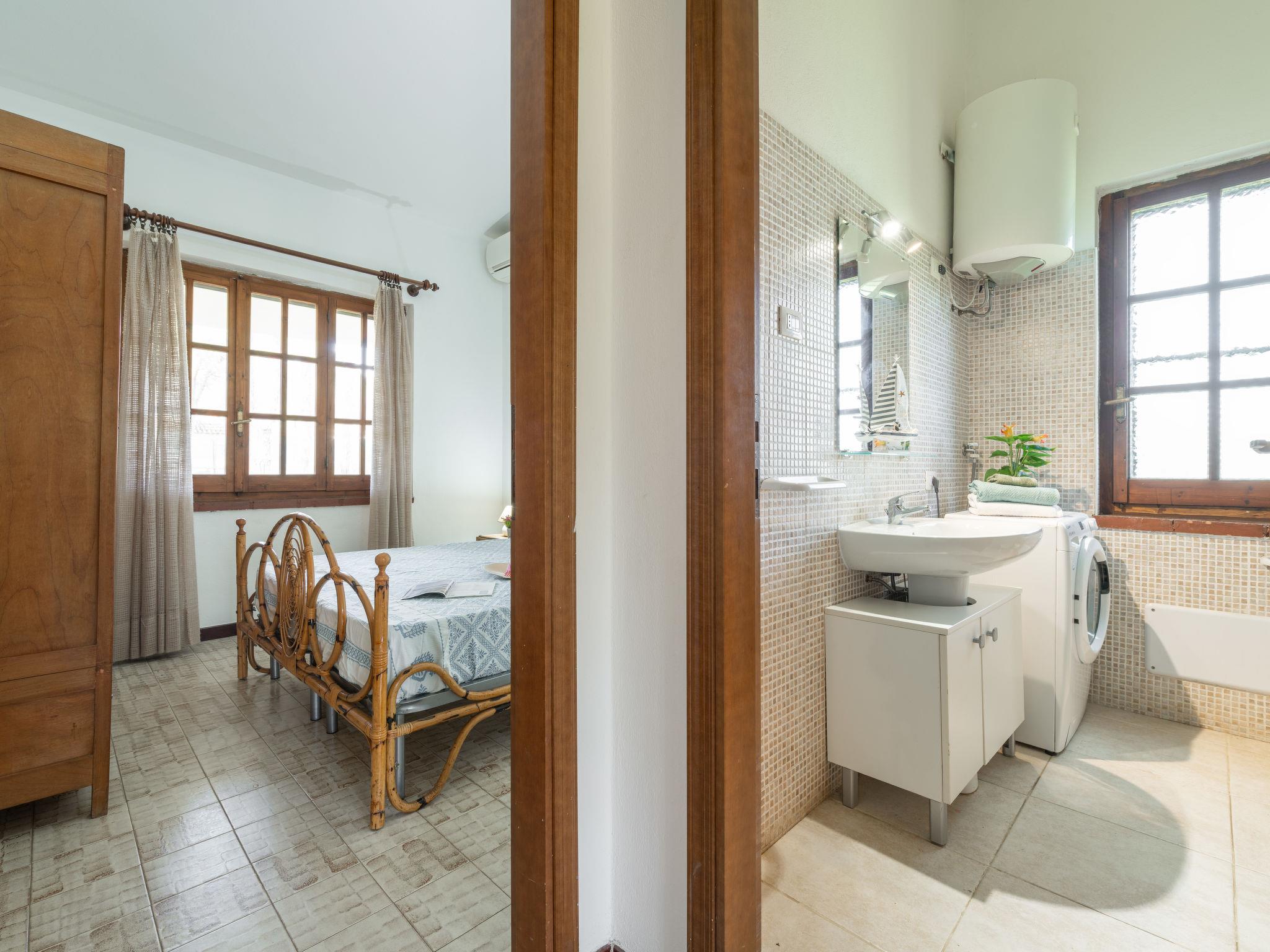 "Itaca", 4-room villa 97 m2. Comfortable and cosy furnishings: living/dining room with Scandinavian wood stove (only for decoration), dining table and digital TV. Exit to the garden, to the veranda. 2 double bedrooms, each room with air conditioning. 1 room with 3 beds and air conditioning. Kitchen (oven, dishwasher, 4 gas rings, toaster, kettle, microwave). Exit to the veranda. 2 showers/bidet/WC. Air-conditioning, forced-air heating. Heating not available in all rooms. Large patio, large garden. Barbecue, deck chairs. View of the countryside. Facilities: washing machine, children's high chair, baby cot (extra), hair dryer. Internet (WiFi). Please note: (extra). Maximum 1 pet/ dog allowed. IT111105C2000S9612