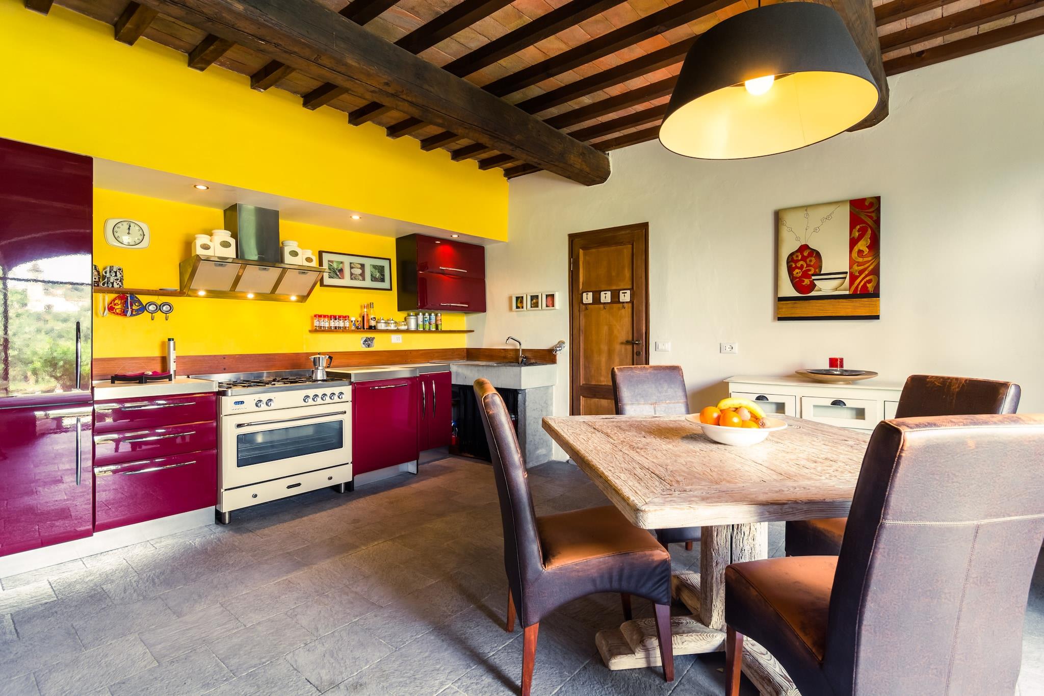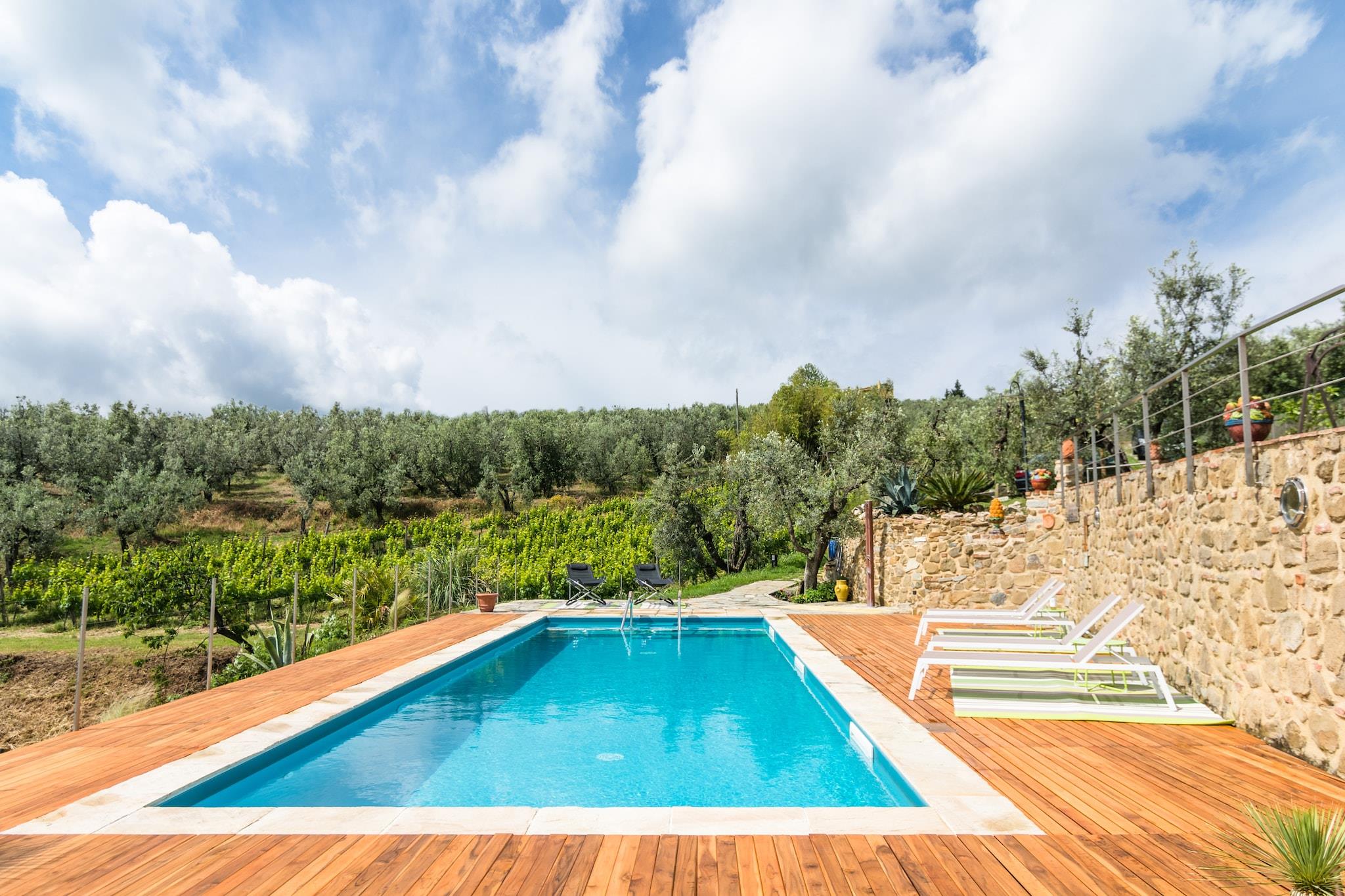 Beliggende i bakkerne i Vinci tilbyder denne kæledyrsvenlige villa en fredelig flugt kun 5 km fra Leonardo da Vincis fødested. Ideel til familier eller grupper, det er en perfekt base for at udforske Museo Leonardiano, kunstnerens barndomshjem i Anchiano, og vinmarkerne og olivenlundene, der inspirerede hans geni. Dagsture til Firenze, Montecatini Terme og Pistoia byder på rige kulturelle oplevelser og renæssancecharme. Villaen har en rummelig stue med pejs, satellit-tv og en dobbelt sovesofa samt et stort køkken med moderne apparater. Med fire soveværelser og tre badeværelser i hovedhuset, plus et gæstehus med eget køkken, soveværelse og badeværelse, kan hjemmet komfortabelt rumme flere gæster. Faciliteterne omfatter aircondition, en vaskemaskine, en privat terrasse og en 12x4 m swimmingpool (åben juni til oktober). Gæsterne kan nyde bordtennis, bordfodbold, cykler og et grillområde til udendørs sjov. Området er omgivet af bølgende toscanske bakker og byder på fremragende spisning kun 5 km væk. Nyd lokale smagsoplevelser på La Burra di Vinci, Il Ristoro del Museo eller Agriturismo Il Piastrino, alle kendt for deres varme gæstfrihed og regionale køkken. Uanset om du cykler gennem vinmarker eller slapper af ved poolen, lover denne villa en mindeværdig italiensk ferie.