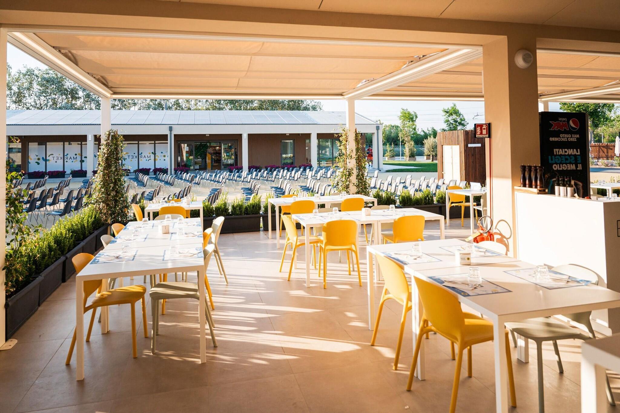 Den perfekte familieferie: Rimini Family Resort ligger direkte på Riminis store strand og byder på alt til en vidunderlig pause med dine kære. Hvert medlem af familien kan tilbringe dagene efter deres ønsker, for parken byder på variation for store og små. Du bor i en moderne lodge, der er udstyret med alt hvad du behøver for et behageligt ophold. Hver boligenhed på landet har sin egen rummelige veranda, hvor du kan afslutte dagen med et lækkert glas vin. Dette er, hvad resortet tilbyder: - Reception - Restaurant, pizzeria, bar - Supermarked, basar, aviskiosk - Strandservice på over 35.000 kvadratmeter strand (service mod et gebyr, afhængig af tilgængelighed) - Hundestrand, hundebassin og motionsområde - Vandland (åbent fra midten af maj til midten af september) - Cykeludlejning (inklusive e-cykler) - Animation, miniklub - Tøjvask - Forskellige sportsmuligheder, såsom fitness, bordtennis og meget mere - Legeplads - 1 parkeringsplads pr. hytte På stedet modtager du et armbånd med kontantfrit betalingssystem - så du nemt kan shoppe dine indkøb og souvenirs til enhver tid. Der tilbydes også forskellige udflugter og guidede ture på stedet. Det venlige team vil hjælpe dig med råd. Det er den ideelle destination for at opdage Rimini og dets natteliv. Men omveje til det omkringliggende område er også en tur værd: Tag for eksempel til San Marino, dværgstaten, hvis historiske centrum vil glæde dig.
