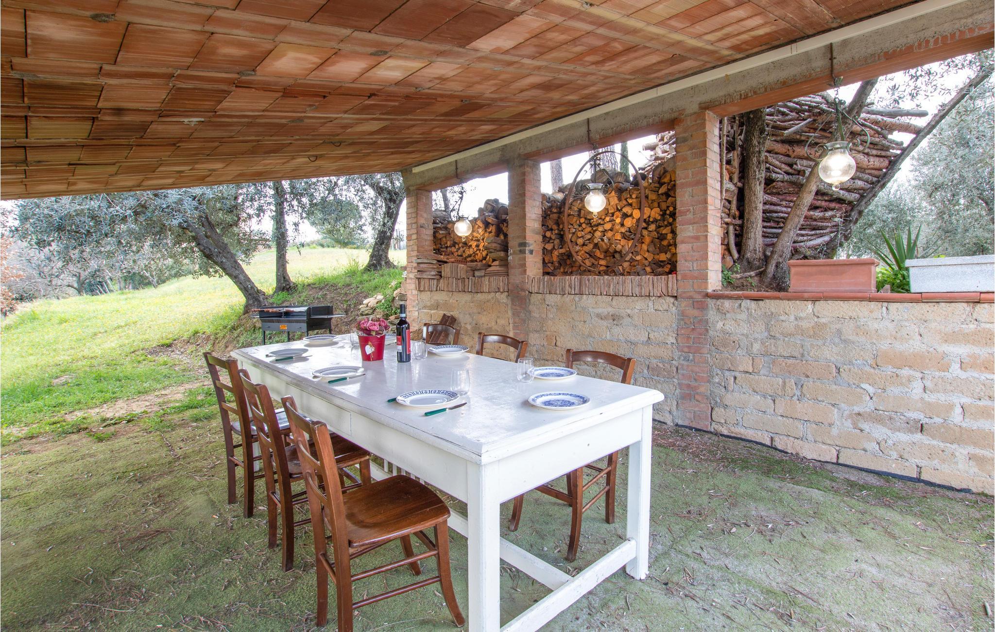 Nyd roen og det toscanske landskab, der omgiver jer, og tilbring tid på den store og åbne grund, som I deler med de andre gæster. Dæk op til et lækkert aftensmåltid fra grillen på den overdækkede terrasse og nyd udsigten til oliventræerne.