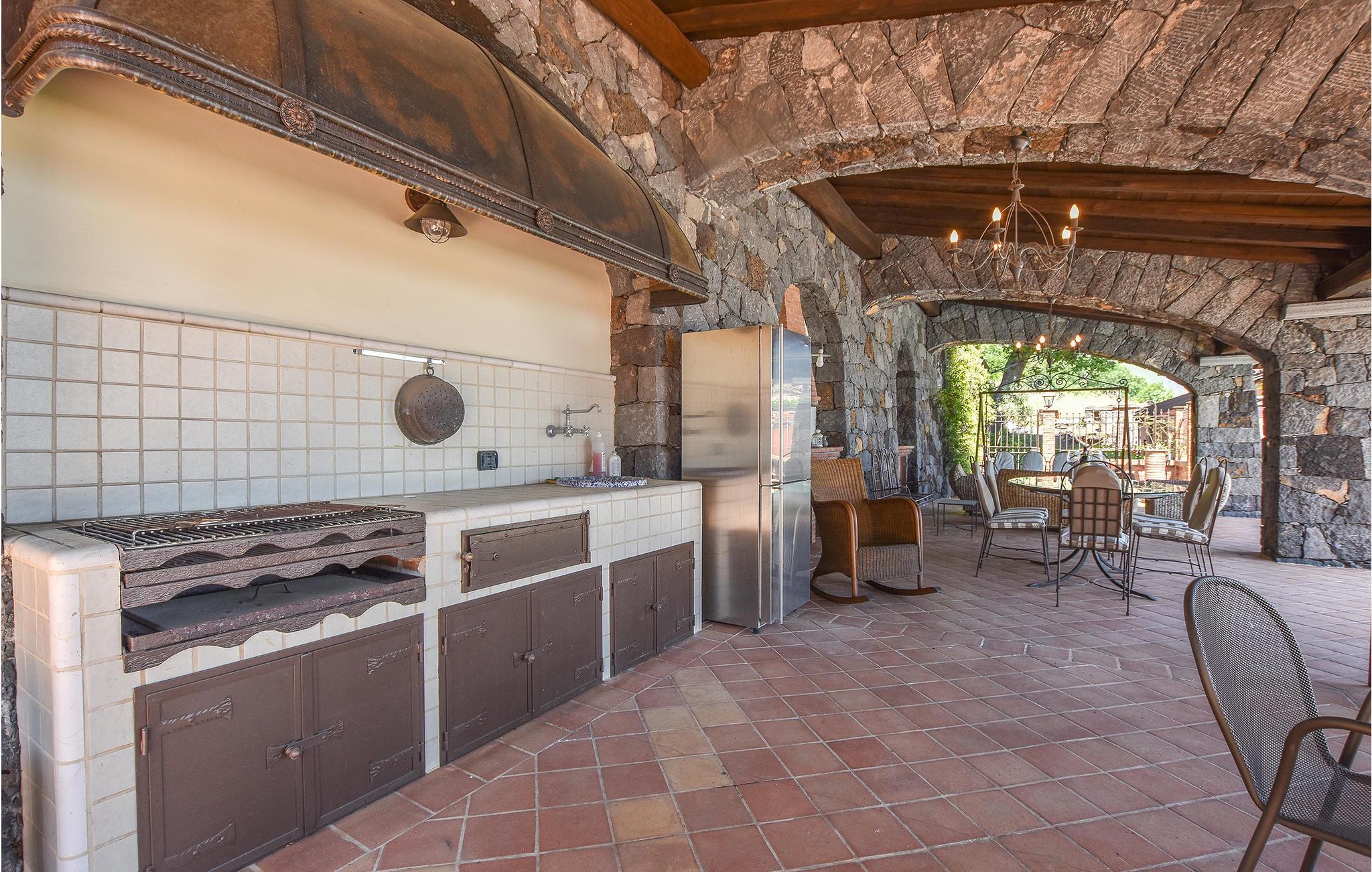 Mellem Etna og kysten, cirka 700 meter over havets overflade, venter dette fantastiske feriehus. Huset vil imponere her både inde og ude. Det strækker sig over flere etager og er ideelt til flere familier på grund af de mange soveværelser og badeværelser. Overalt finder I stilfuldt møblerede værelser at høj kvalitet, hvor I med det samme føler jer hjemme. Tilbring afslappende timer i det lyse sofahjørne og nyd hyggelige måltider ved spisebordet med udsigt over den smukke have. Fra haven har I en betagende panoramaudsigt over havet og kysten mellem Acireale og Taormina. Hop i poolen for en forfriskning og afslut dagen på terrassen med et glas vin og solnedgangen.