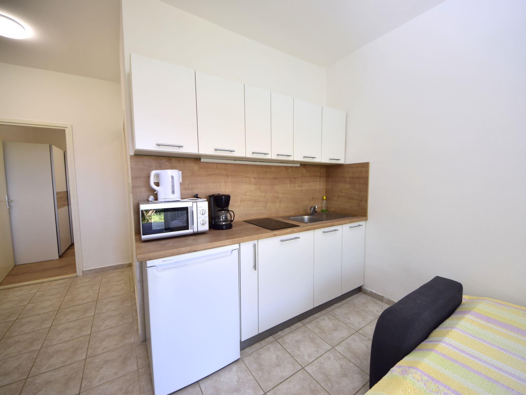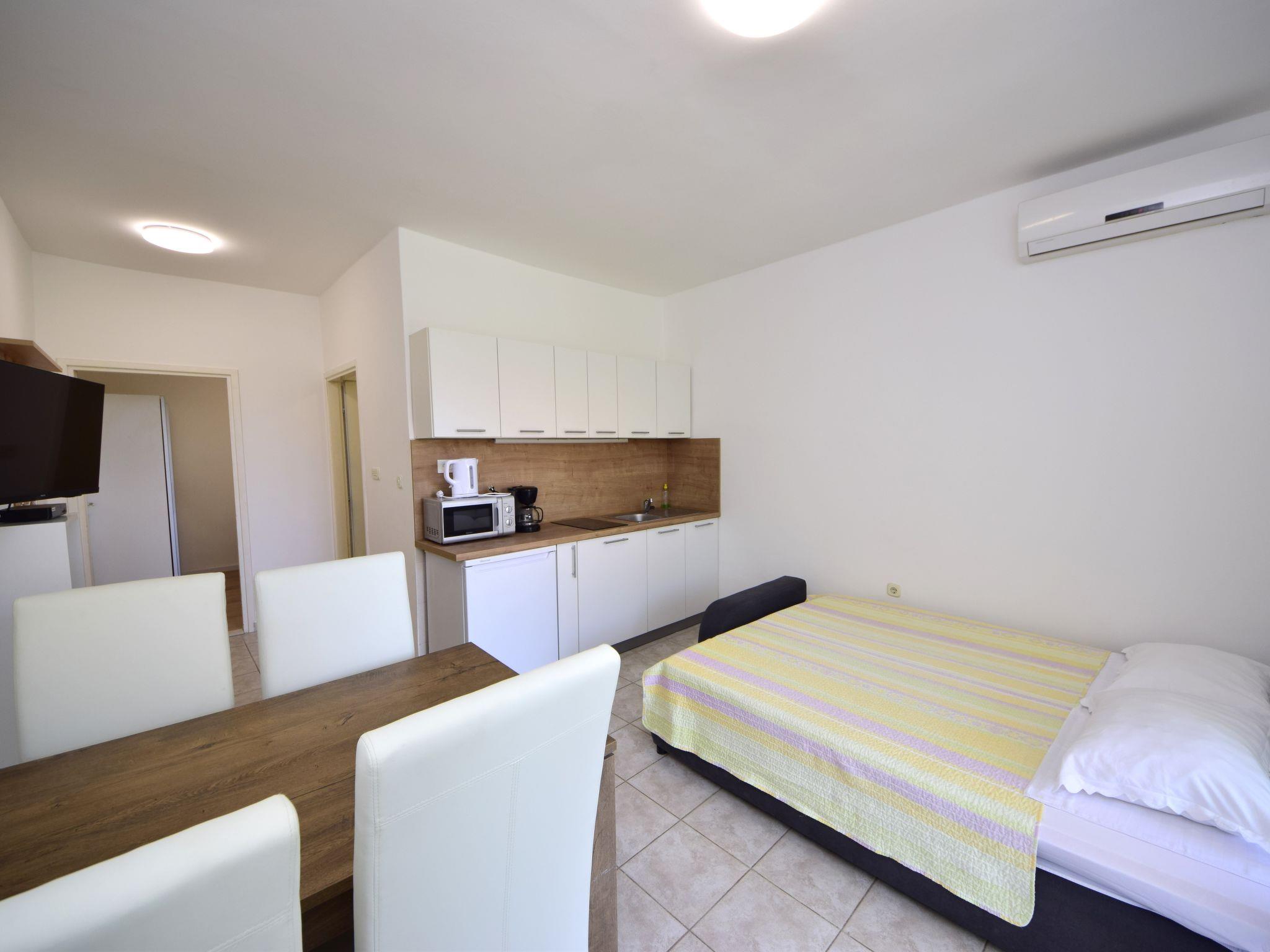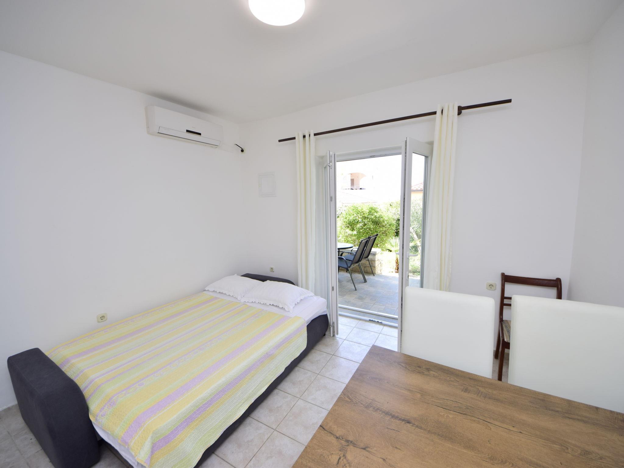 "Katarina 2", 2-room apartment 40 m2, on the upper ground floor. Living/dining room with 1 double sofabed (150 cm, length 200 cm), satellite TV (flat screen), air conditioning. Exit to the terrace. 1 room with 1 french bed (180 cm, length 200 cm). Open kitchen (2 ceramic glass hob hotplates, toaster, kettle, microwave, electric coffee machine). Shower/WC. No heating option. Terrace roofed. Terrace furniture. Facilities: Internet (WiFi, free). Parking (1 car). Please note: private entrance.