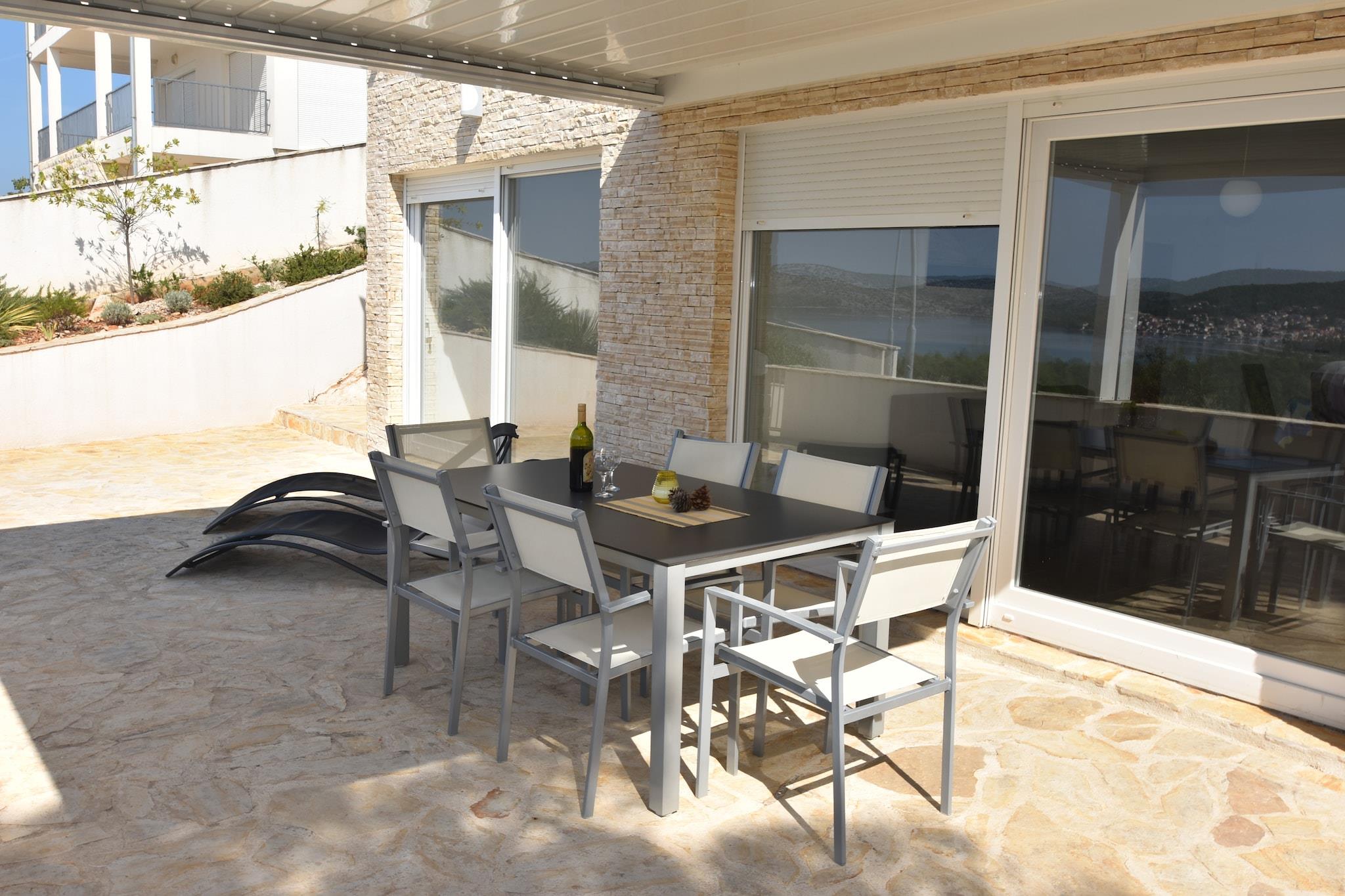 Denne moderne og komfortable lejlighed garanterer en dejlig ferie. Lejligheden er rummelig og nyindrettet. På den store terrasse med havemøbler og grill kan du nyde en fantastisk udsigt over bugten. Et dejligt sted at nyde en lækker morgenmad eller middag! I løbet af dagen vil du være meget ude, fordi du er på ferie i et meget interessant miljø. En smart pergola på terrassen er det perfekte supplement til at tilbringe mere tid udendørs. Der er nu en stor elektrisk pergola på 16 m2, som er ideel. Nyd denne smukke kyst med sine mange øer og smukke bugter. Kun 150 m væk finder du de første strande. Men der er mere... Det grønne, bjergrige bagland kulminerer i Krka Nationalpark (11 km). Her kan du nyde den smukke natur under en vandretur, beundre de smukke vandfald og måske endda tage en dukkert i det forfriskende vand. Men de historiske byer Sibenik (7 km), Zadar (80 km) og Split (86 km) kan også anbefales. Åh, og... glem ikke Primosten (40 km) og Trogir (56 km). Med en så interessant liste over ting at lave glemmer man næsten, at man er på ferie og også har brug for at slappe af! DVD-afspilleren er kompatibel med Blu-Ray. Der er ikke noget tv med kanaler, kun en tv-skærm, så du kan streame.
