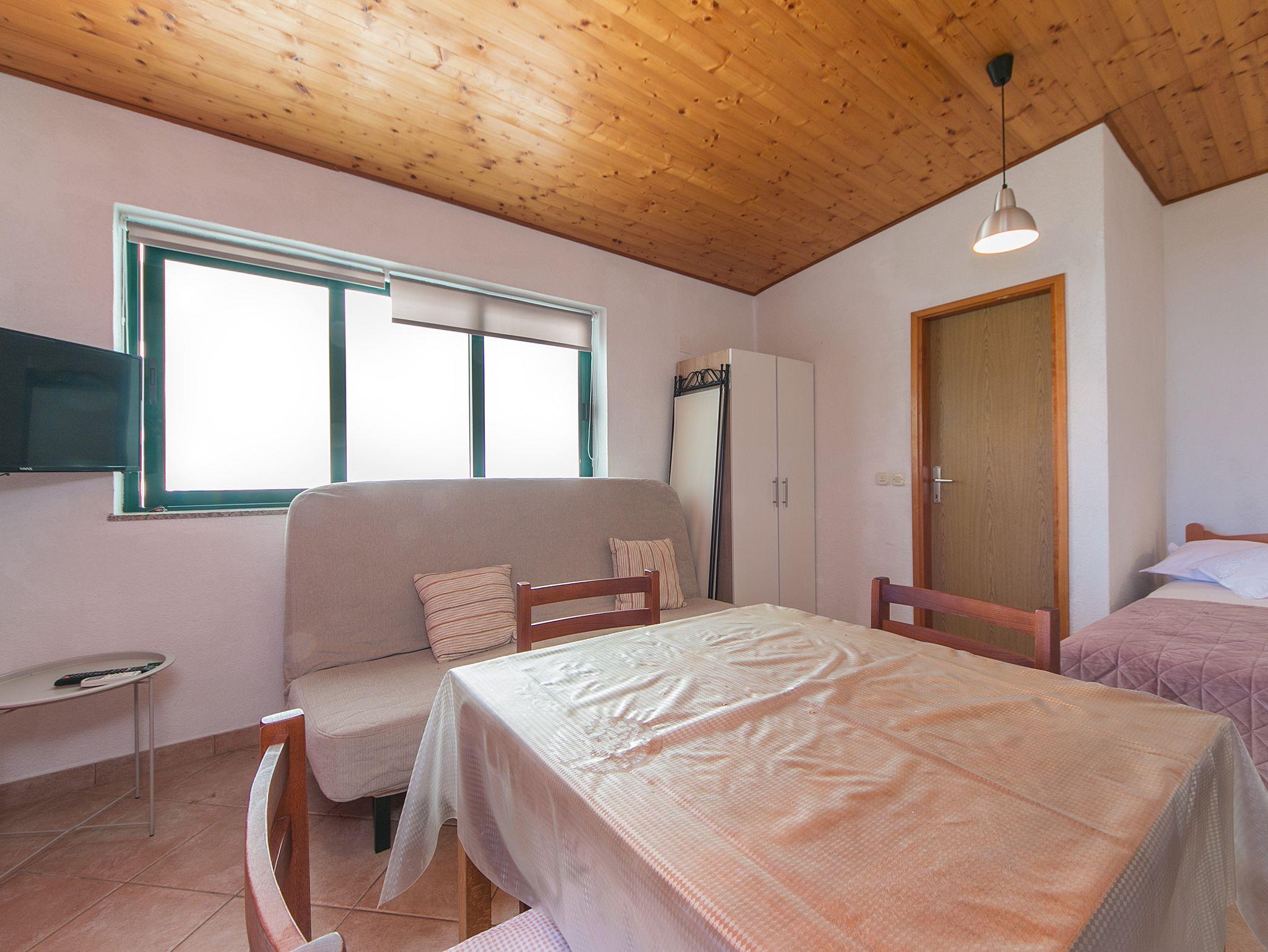 Studio bietet Platz für 3 Gäste. Die Betten sind in Schlafzimmern, die es 1 gibt, und in Esszimmer, innerhalb einer Gesamtfläche von 19m2, angeordnet. Die Gäste haben eine eigene Terrasse zur Verfügung, auf der sie in warmen Sommernächten genießen können. Das Studio-Apartment bietet Meerblick. Für vollen Genuss und Entspannung gibt es einen privaten Grill für Gäste dieser Unterkunft. IM PREIS INBEGRIFFEN: Kurtaxe, Endreinigung, Parkplatz, Internet, Bügeleisen, Bügelbrett, Föhn. VERBINDLICHE ZUSÄTZLICHE KOSTEN: Aufzahlung für Kurzaufenthalte (prozentualer Zuschlag pro Nächtigungsanzahl: 30% - 1, 20% - 2, 10% - 3). UNVERBINDLICHE ZUSÄTZLICHE KOSTEN: Klimatisierung (5,00 € pro Nacht). Die Verfügbarkeit zusätzlicher Dienstleistungen in Ihrem reservierten Termin und die Preise derselben (falls nicht aufgeführt) müssen im Voraus überprüft werden. Zusätzliche Dienstleistungen die in der Zahlungsaufforderung nicht aufgeführt sind werden direkt beim Vermieter bezahlt, angenommen der Gast nutzt auch diese. Ermäßigung auf den Grundpreis: Gratistag 14=13 (bei einem Aufenthalt von 14 Tagen oder mehr erhalten Sie einen Gratistag für den Aufenthalt bis 31.12.26).