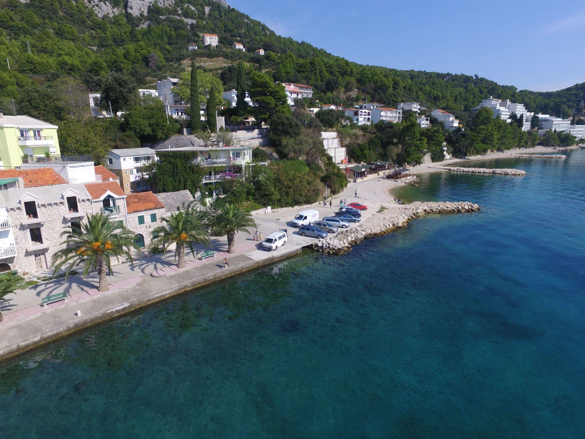 This detached timber house with two holiday apartments is close to the beach, in a tranquil setting along a not-often used road in the town/village of Zivogosce.The following description is a first draft, which is still awaiting revision. Please contact our Customer Service if it contains any gaps.