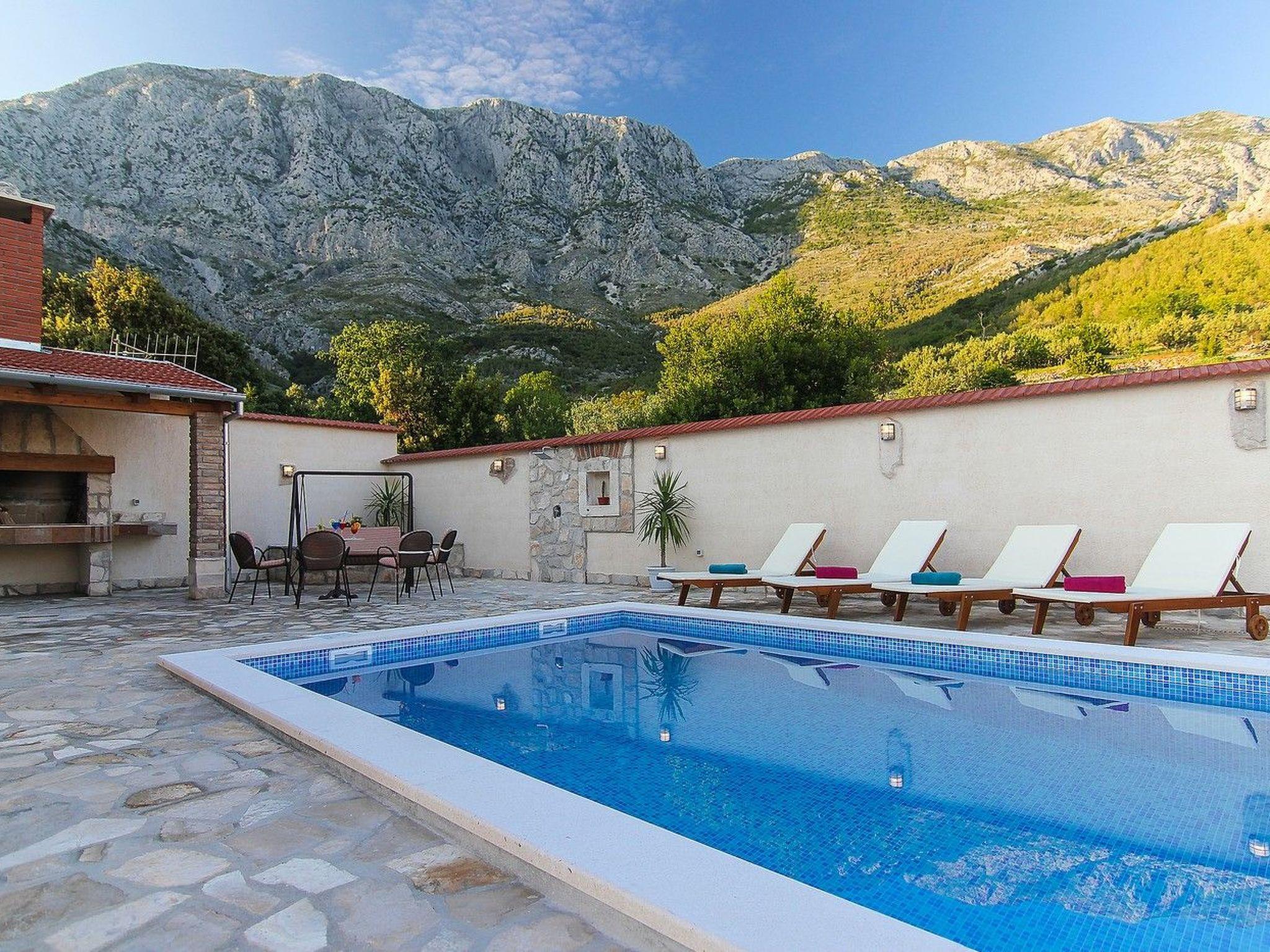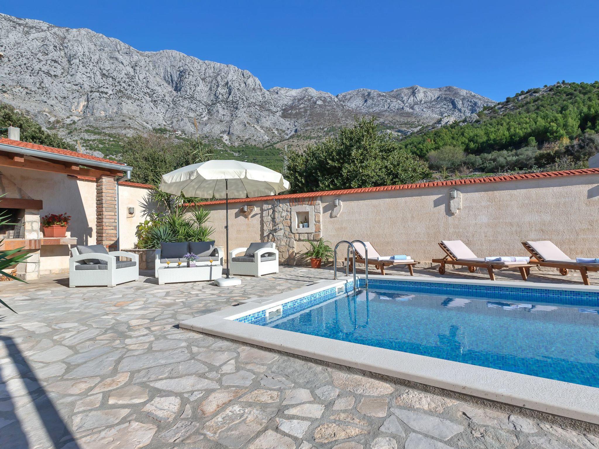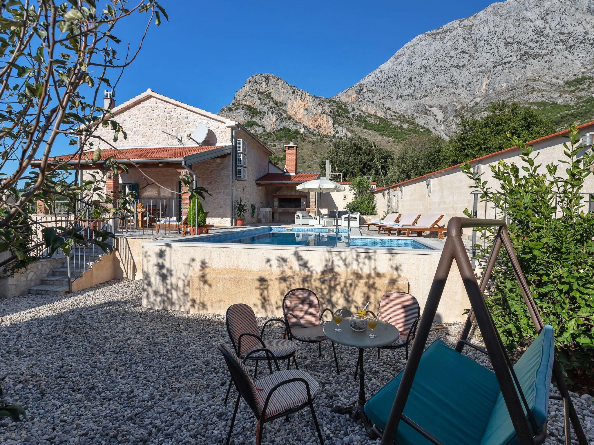 Holiday house Mya with heated pool is located 20 km south of the town of Makarska, 1.0 km from the sea and the beach. The completely renovated stone house has three bedrooms with double bed, three bathrooms with shower.