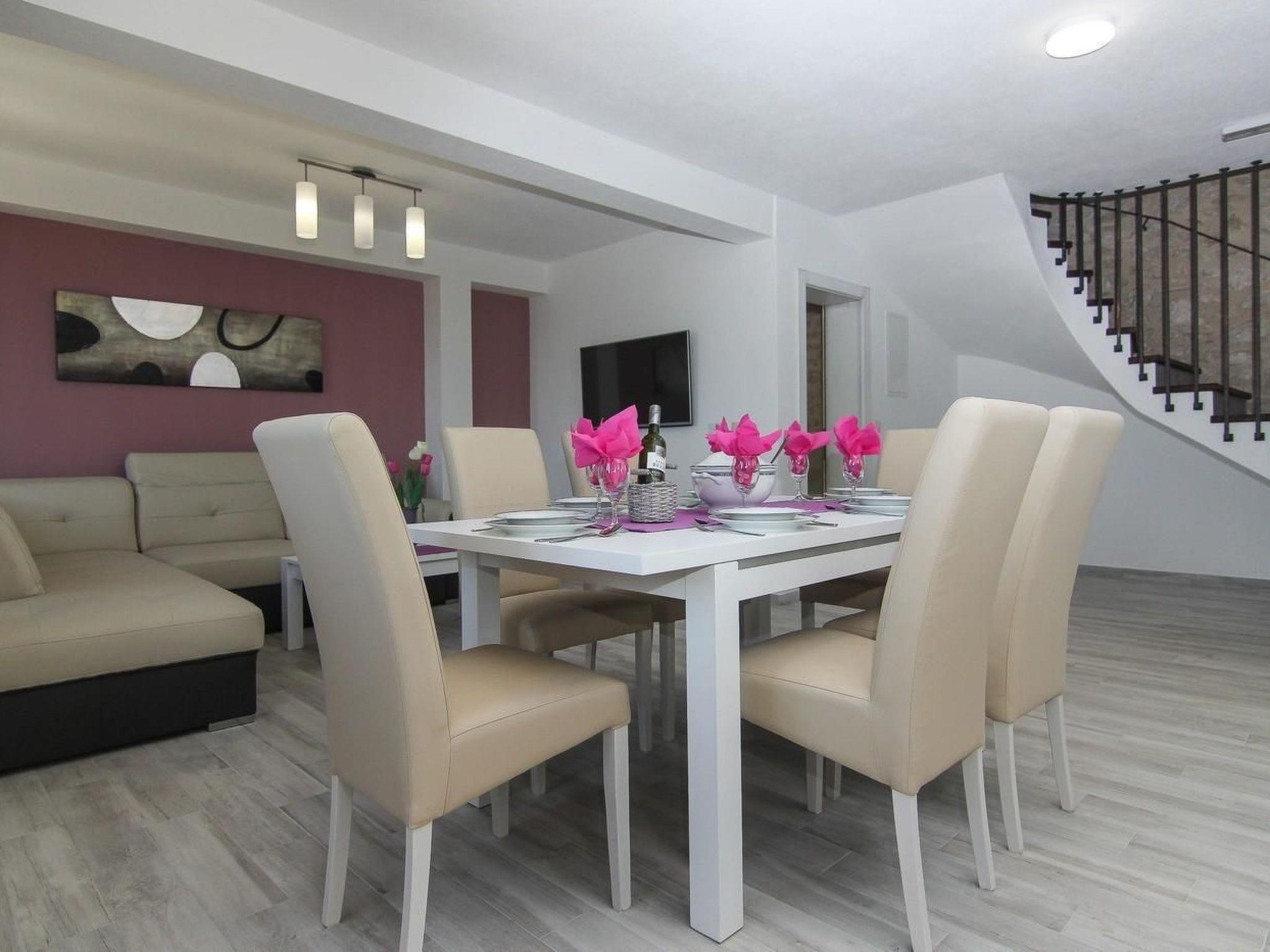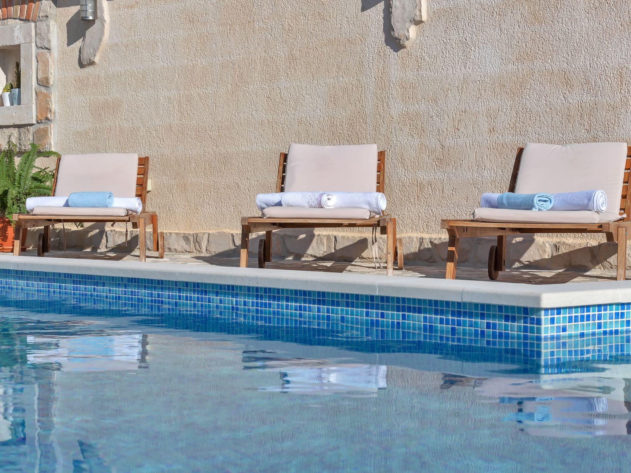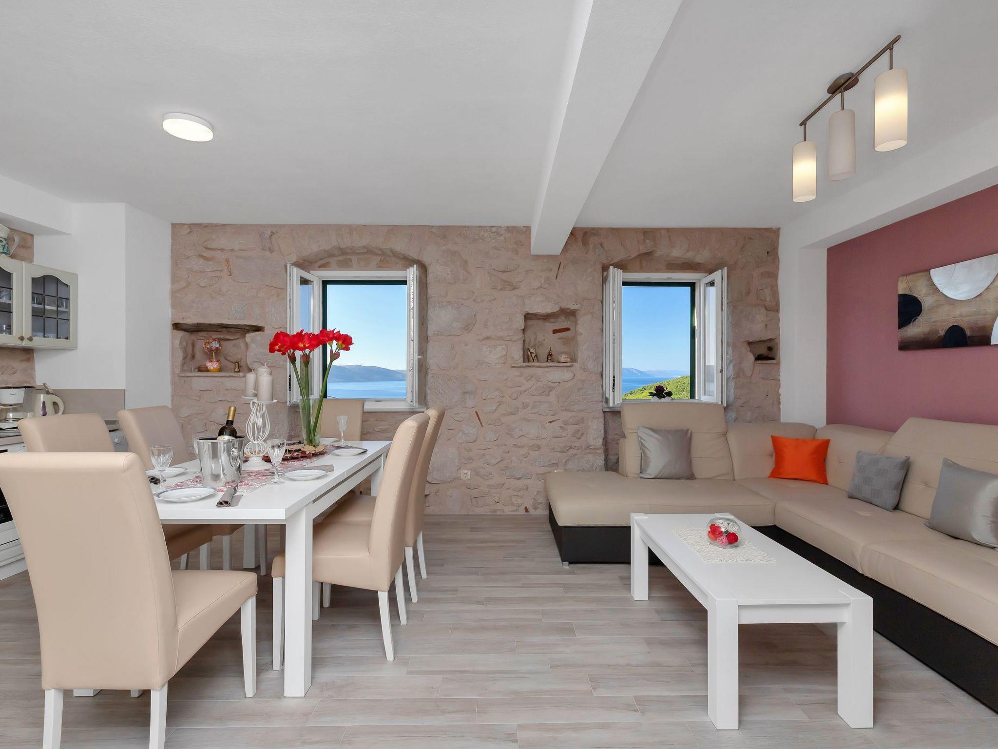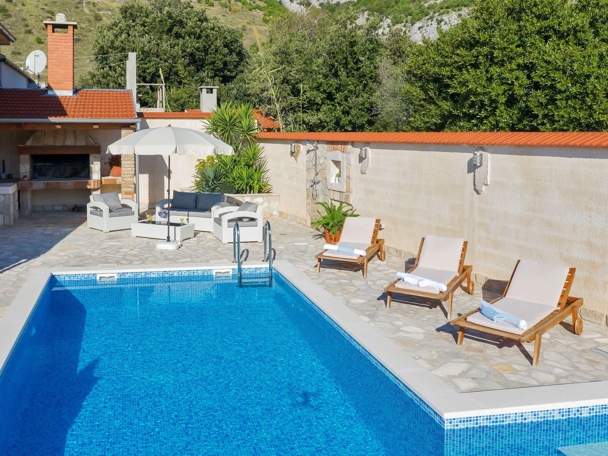 Holiday house Mya with heated pool is located 20 km south of the town of Makarska, 1.0 km from the sea and the beach. The completely renovated stone house has three bedrooms with double bed, three bathrooms with shower.