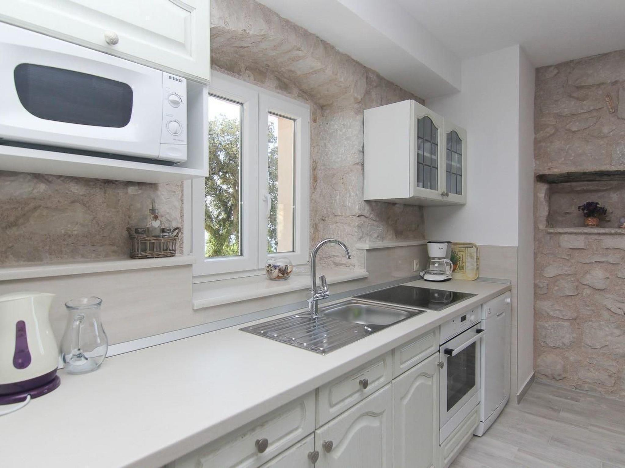 The completely renovated stone house has three bedrooms with double beds, three bathrooms with shower.