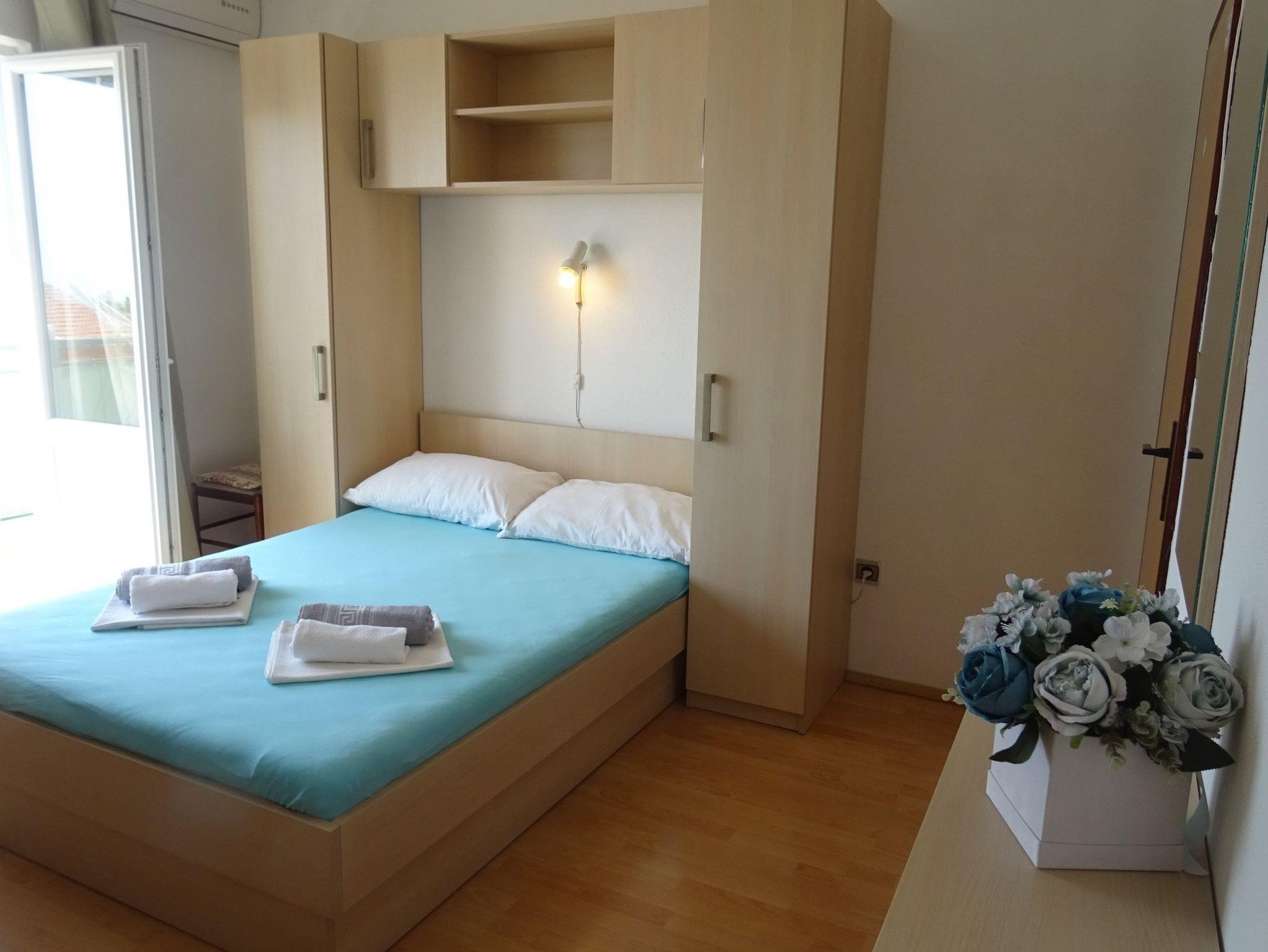 Ferienwohnung bietet Platz für 5 Gäste. Die Betten sind in Schlafzimmern, die es 1 gibt, und in Esszimmer, innerhalb einer Gesamtfläche von 41m2, angeordnet. Die Gäste haben einen eigenen Balkon zur Verfügung, auf der sie in warmen Sommernächten genießen können. Das Apartment bietet Meerblick. Es ist erlaubt, Speisen auf dem Gemeinschafts-Grill vorzubereiten. IM PREIS INBEGRIFFEN: Kurtaxe, Endreinigung, Klimatisierung, Parkplatz, Internet, Wäschewaschen, Bügeleisen, Bügelbrett, Föhn. Die Verfügbarkeit zusätzlicher Dienstleistungen in Ihrem reservierten Termin und die Preise derselben (falls nicht aufgeführt) müssen im Voraus überprüft werden. Zusätzliche Dienstleistungen die in der Zahlungsaufforderung nicht aufgeführt sind werden direkt beim Vermieter bezahlt, angenommen der Gast nutzt auch diese.