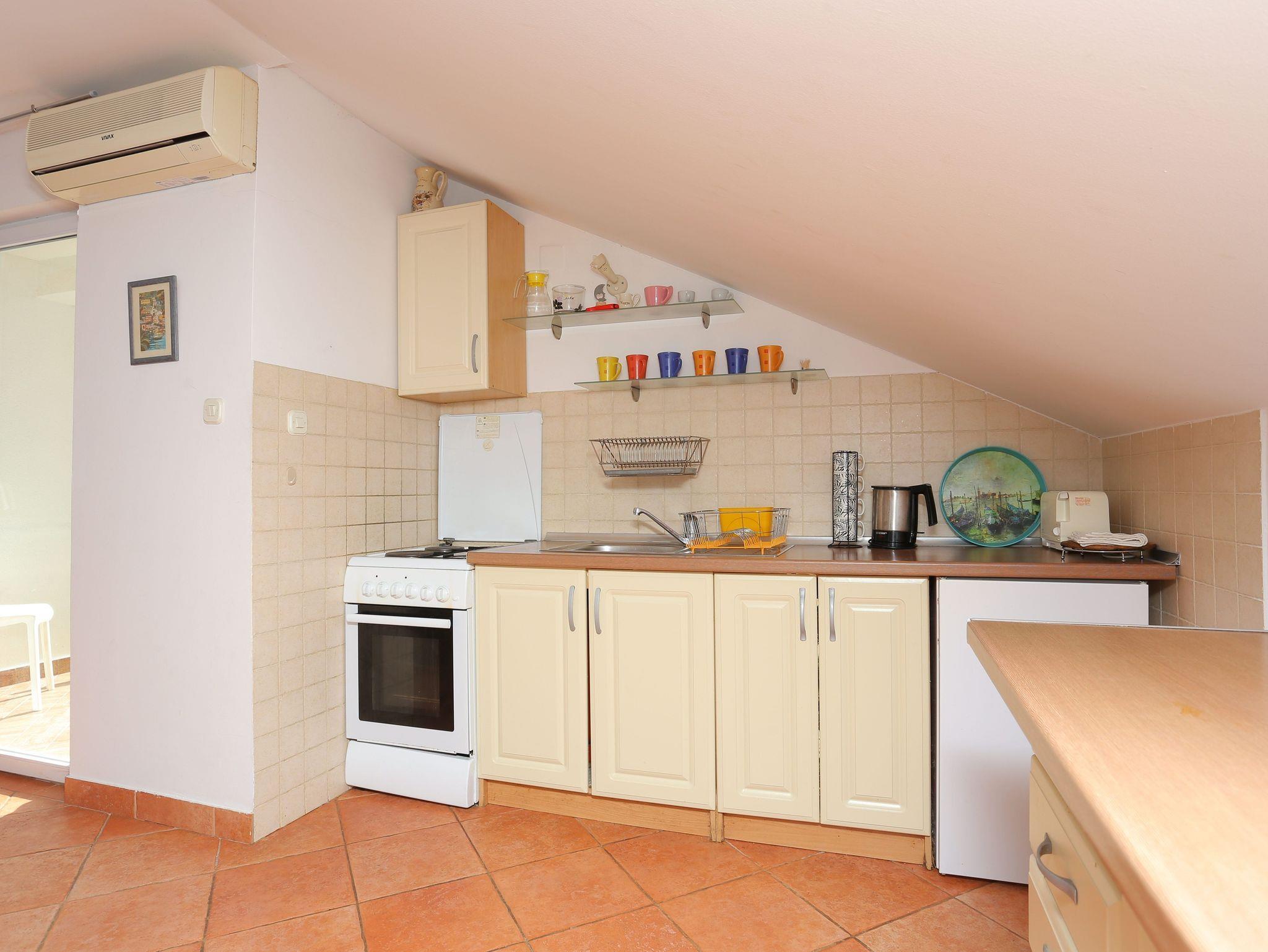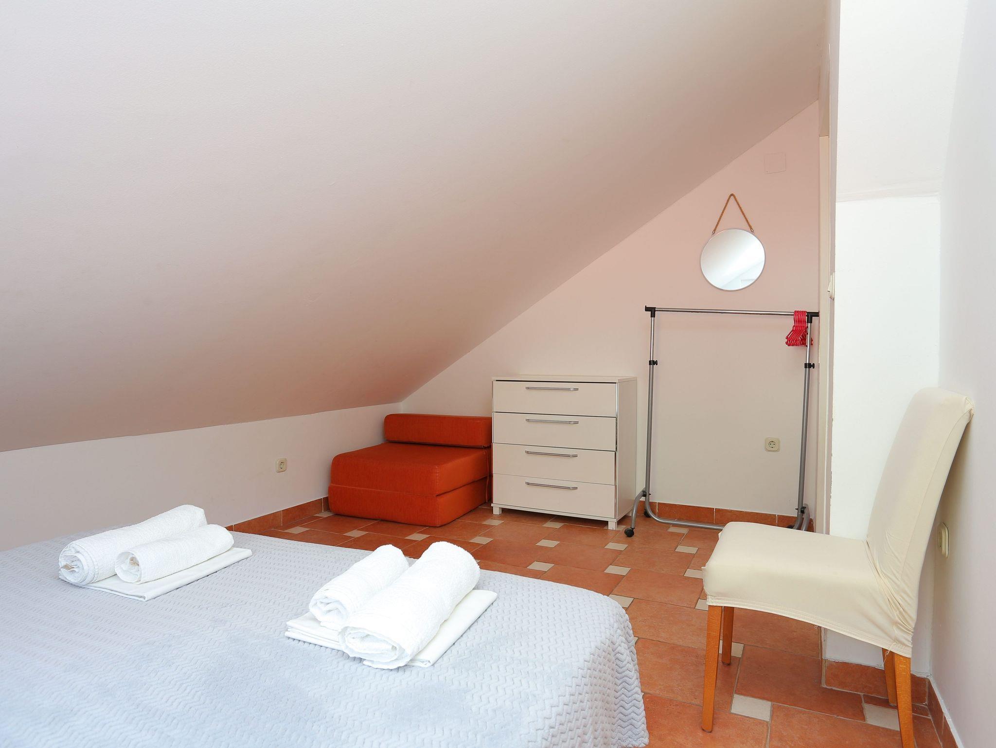 Ferienwohnung bietet Platz für 6 Gäste. Die Betten sind in Schlafzimmern, die es 2 gibt, und in Wohnzimmer, innerhalb einer Gesamtfläche von 65m2, angeordnet. Die Gäste haben eine eigene Terrasse zur Verfügung, auf der sie in warmen Sommernächten genießen können. Das Apartment bietet Meerblick. Es ist erlaubt, Speisen auf dem Gemeinschafts-Grill vorzubereiten. In der Unterkunftseinheit besteht die Möglichkeit des Mitbringens von Haustieren gegen Aufpreis. IM PREIS INBEGRIFFEN: Kurtaxe, Endreinigung, Klimatisierung, Parkplatz, Internet, Wäschewaschen, Kinderbett, Bügeleisen, Föhn, tragbarer Grill. VERBINDLICHE ZUSÄTZLICHE KOSTEN: Aufzahlung für Kurzaufenthalte (prozentualer Zuschlag pro Nächtigungsanzahl: 30% - 1, 20% - 2, 10% - 3). UNVERBINDLICHE ZUSÄTZLICHE KOSTEN: Haustiere (10,00 € pro Nacht). Die Verfügbarkeit zusätzlicher Dienstleistungen in Ihrem reservierten Termin und die Preise derselben (falls nicht aufgeführt) müssen im Voraus überprüft werden. Zusätzliche Dienstleistungen die in der Zahlungsaufforderung nicht aufgeführt sind werden direkt beim Vermieter bezahlt, angenommen der Gast nutzt auch diese.