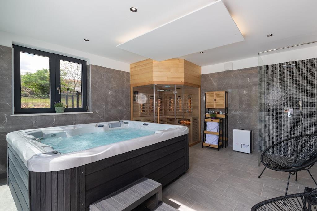 Villa Alison har grill på den overdækkede terrasse og gratis parkering i den indhegnede have. Den har to soveværelser, begge med aircondition og gulvvarme, og er udstyret med satellit-tv og kroatiske kanaler. Hvert soveværelse har et badeværelse. Den samlede kapacitet er til seks personer (4 voksne + 2 børn). Soveværelserne er møbleret med dobbeltsenge. Gratis Wi-Fi, satellit-tv, swimmingpool og grill er tilgængelige. Som du vil bemærke, skaber de dejlige detaljer en varm atmosfære, der får dig til at føle dig endnu mere komfortabel. Den 32 m² store opvarmede pool er også et højdepunkt. Men det er ikke alt – for at tage oplevelsen til et endnu højere niveau er der også en stor indendørs jacuzzi på 210x210 cm, en sauna og et siddeområde til fuldstændig afslapning.