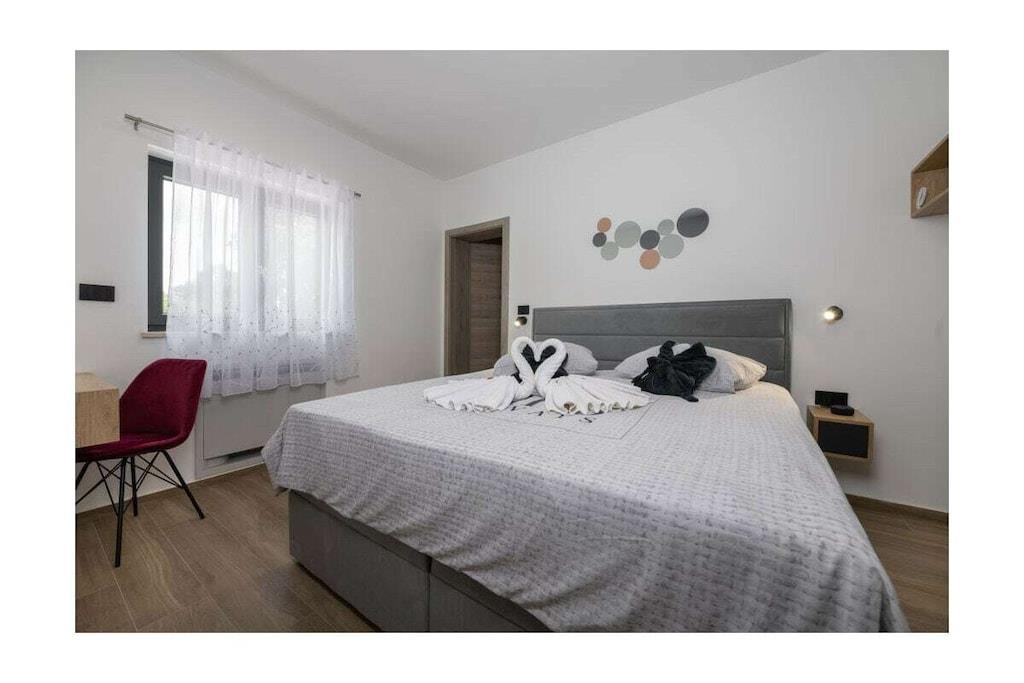 Villa Alison har grill på den overdækkede terrasse og gratis parkering i den indhegnede have. Den har to soveværelser, begge med aircondition og gulvvarme, og er udstyret med satellit-tv og kroatiske kanaler. Hvert soveværelse har et badeværelse. Den samlede kapacitet er til seks personer (4 voksne + 2 børn). Soveværelserne er møbleret med dobbeltsenge. Gratis Wi-Fi, satellit-tv, swimmingpool og grill er tilgængelige. Som du vil bemærke, skaber de dejlige detaljer en varm atmosfære, der får dig til at føle dig endnu mere komfortabel. Den 32 m² store opvarmede pool er også et højdepunkt. Men det er ikke alt – for at tage oplevelsen til et endnu højere niveau er der også en stor indendørs jacuzzi på 210x210 cm, en sauna og et siddeområde til fuldstændig afslapning.