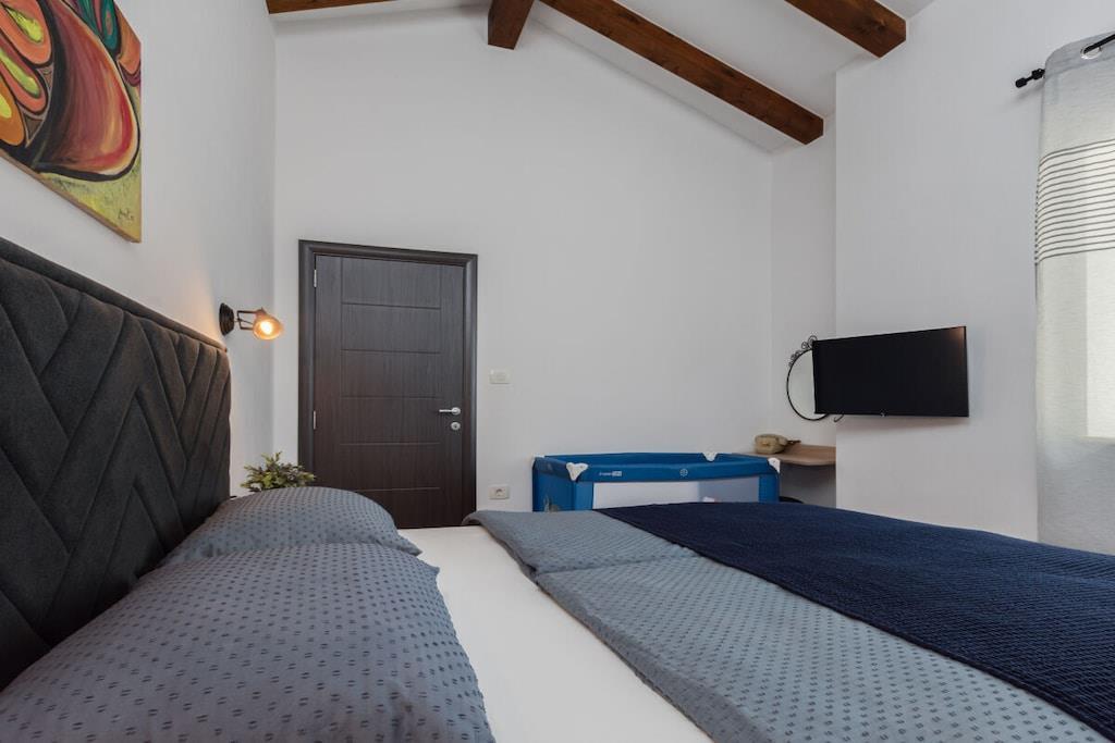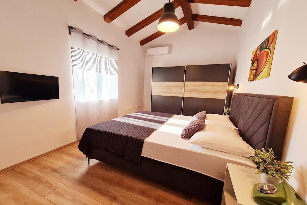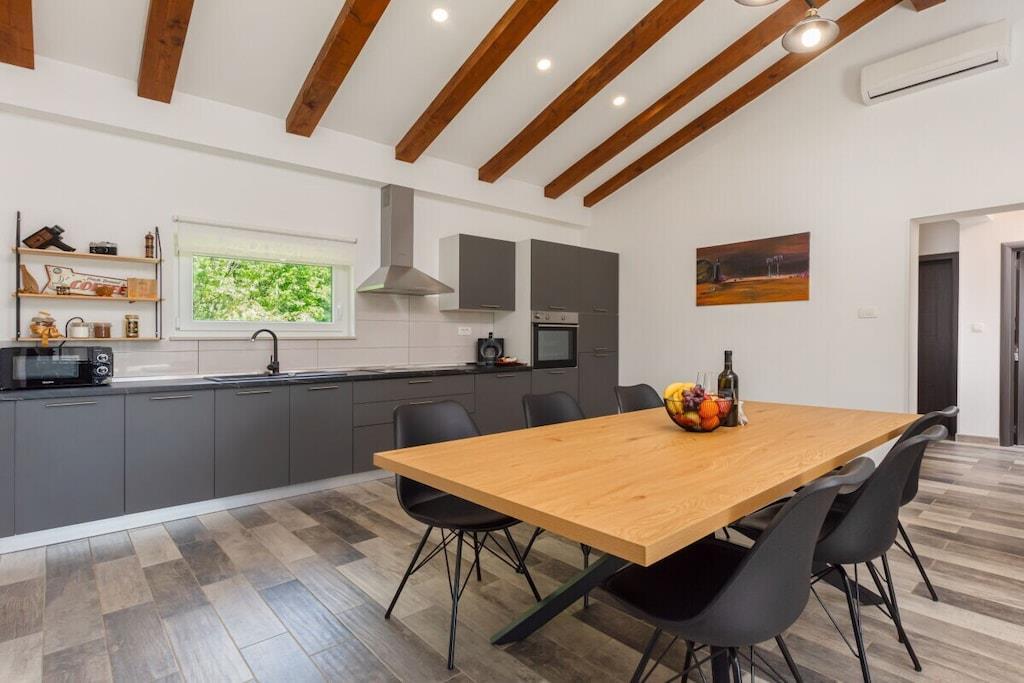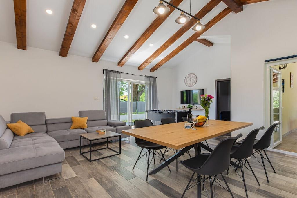 Velkommen til Istrien, Kroatien! Villa Ari tilbyder 100 m² boligareal til op til 6 gæster, inklusive terrasse, pool og stor indhegnet have. Huset er fuldt udstyret til en perfekt og afslappende ferie på landet, men alligevel tæt på havet. Det har 3 soveværelser, 2 badeværelser, en rummelig opholdsstue med køkken og en overdækket terrasse med et udendørs køkken. Huset er ideelt for familier med børn eller små vennegrupper.