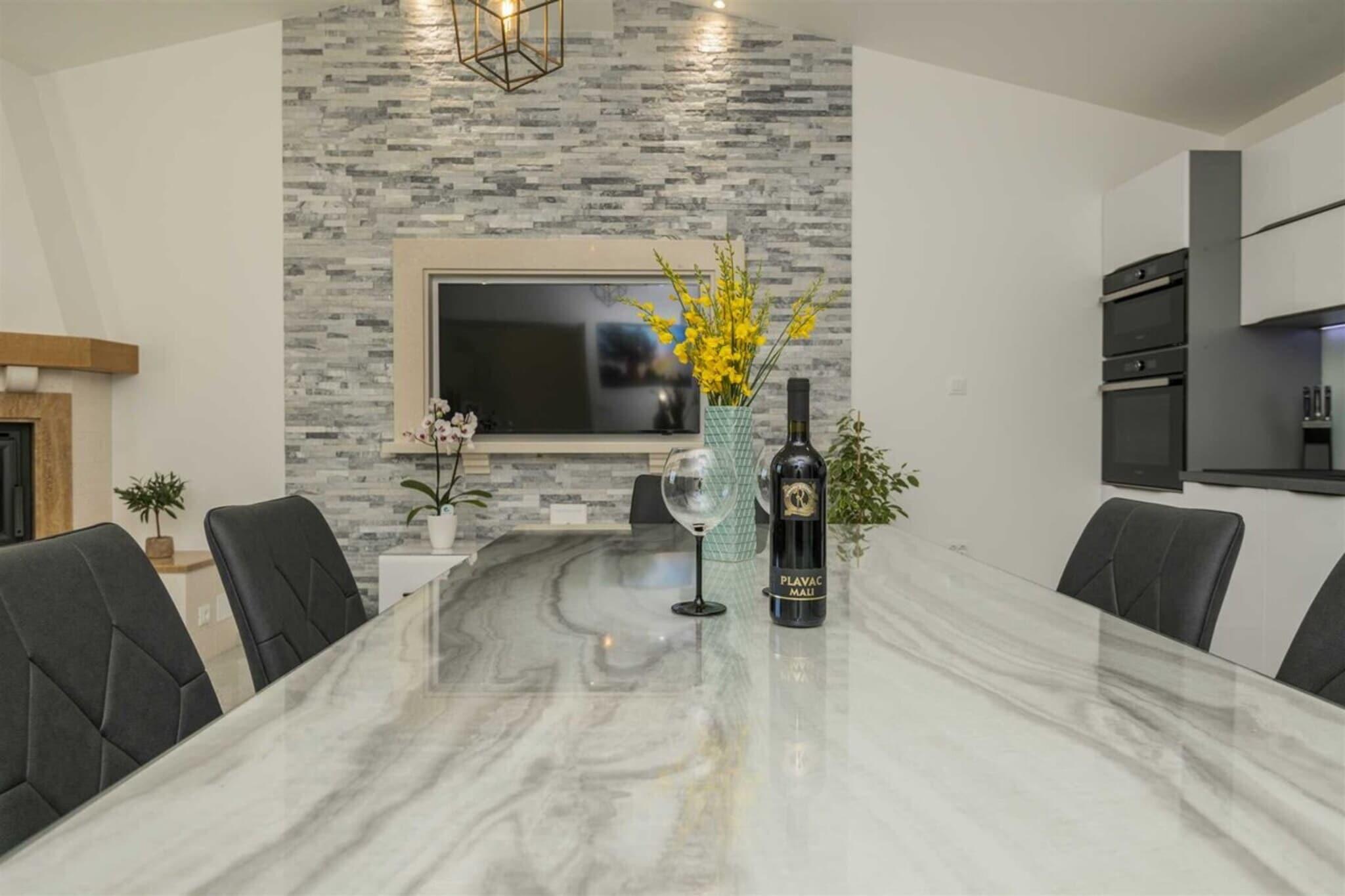 Gemt i den fredelige landsby Naklice og kun en kort køretur fra Omiš' energiske by, er Feriehuset Maslina skabt til den perfekte genforening - den hvor tiden går langsommere, telefoner glemmes, og venskaber genoptages præcis hvor de slap. Med plads til op til 6 venner handler denne hyggelige sommerbase om let ophold, fælles måltider og spontane eventyr. Indeni det 70 m² store hjem er alt indrettet til komfort uden besvær. To afslappede soveværelser - det ene med en kingsize-seng, det andet med to enkeltsenge plus en sovesofa i stuen - gør sovearrangementerne fleksible for par eller venner, der deler. Den åbne stue, spisestue og det fuldt udstyrede køkken bliver dit daglige opholdsområde - uanset om det er morgenkaffe i stilhed, fælles morgenmadsplanlægning eller sene snacks efter en lang aften ude. Men den virkelige sommermagi sker udenfor. Din private have og terrasse forvandles til hjertet af genforeningen - grillaftener under stjernerne, afkølede cocktails efter stranddage og endeløse runder bordtenniskampe, der langsomt bliver mere konkurrenceprægede, efterhånden som aftenen skrider frem. Der er plads til at strække sig ud på liggestole, slappe af i skyggen og lade timerne gå ubesværet. Faciliteter for ekstra komfort inkluderer - PS3, brætspil, Wi-Fi, aircondition og privat parkering. Når du er klar til at skrue op for lyden, venter eventyret lige om hjørnet. Strandene, de historiske gader og den summende sommerstemning i Omiš ligger kun få minutter væk, mens Cetina-flodens vilde skønhed sætter scenen for rafting, ziplining, canyoning og adrenalinfyldte gruppeminder. Dette er den slags sted, hvor morgenen starter langsomt, dagene bruges på at jagte sol og saltluft, og nætterne tilhører historier, musik og latter.
