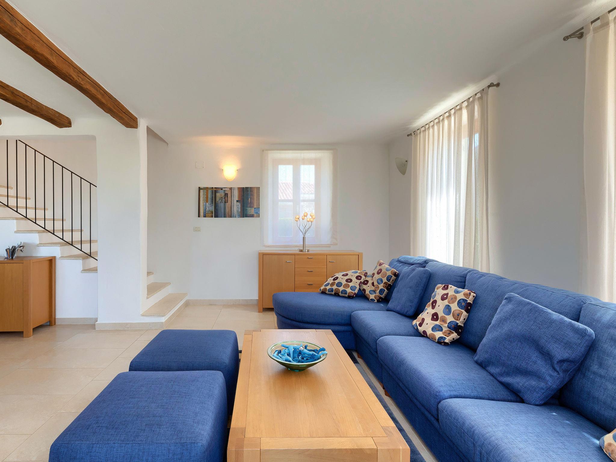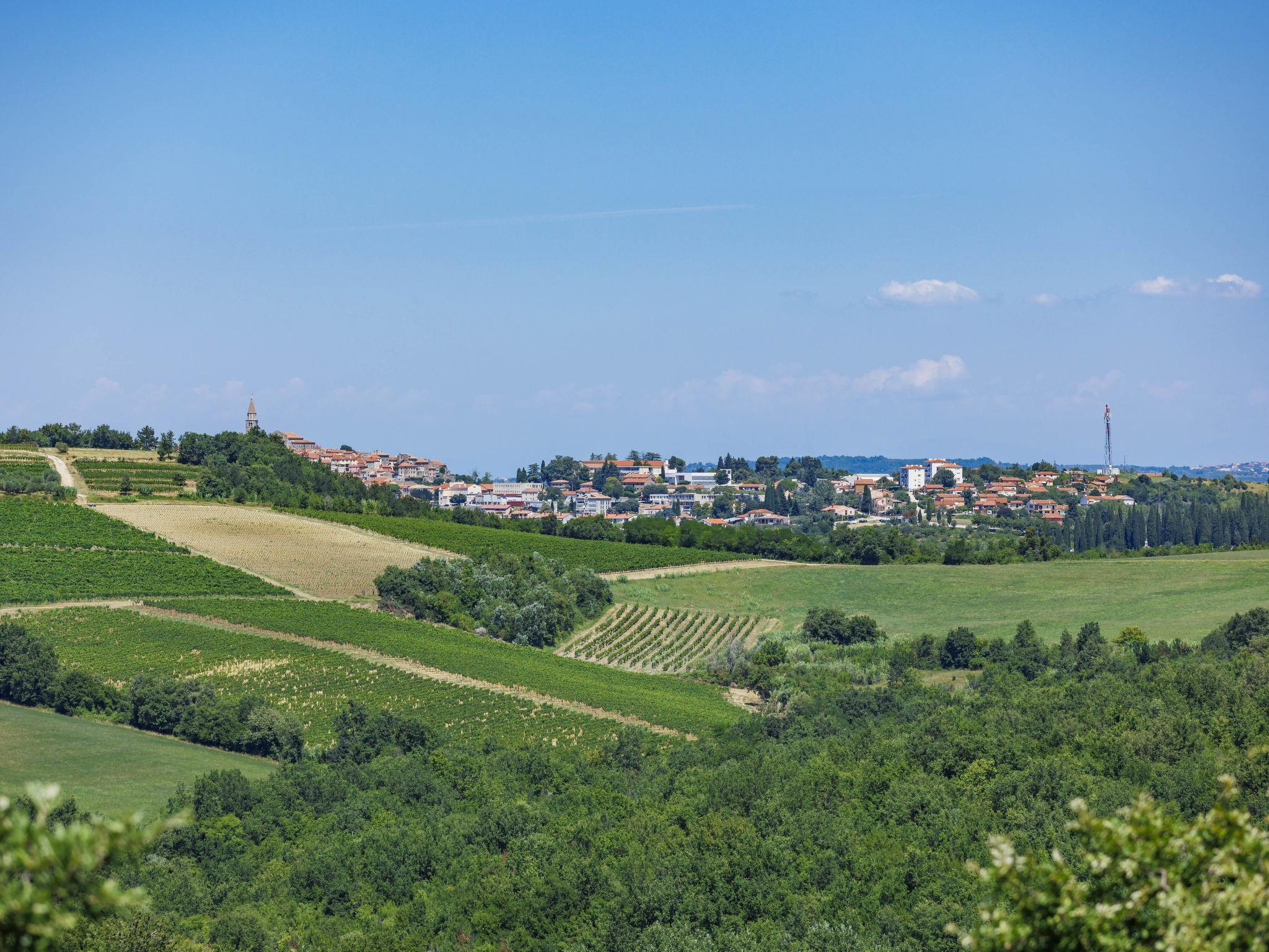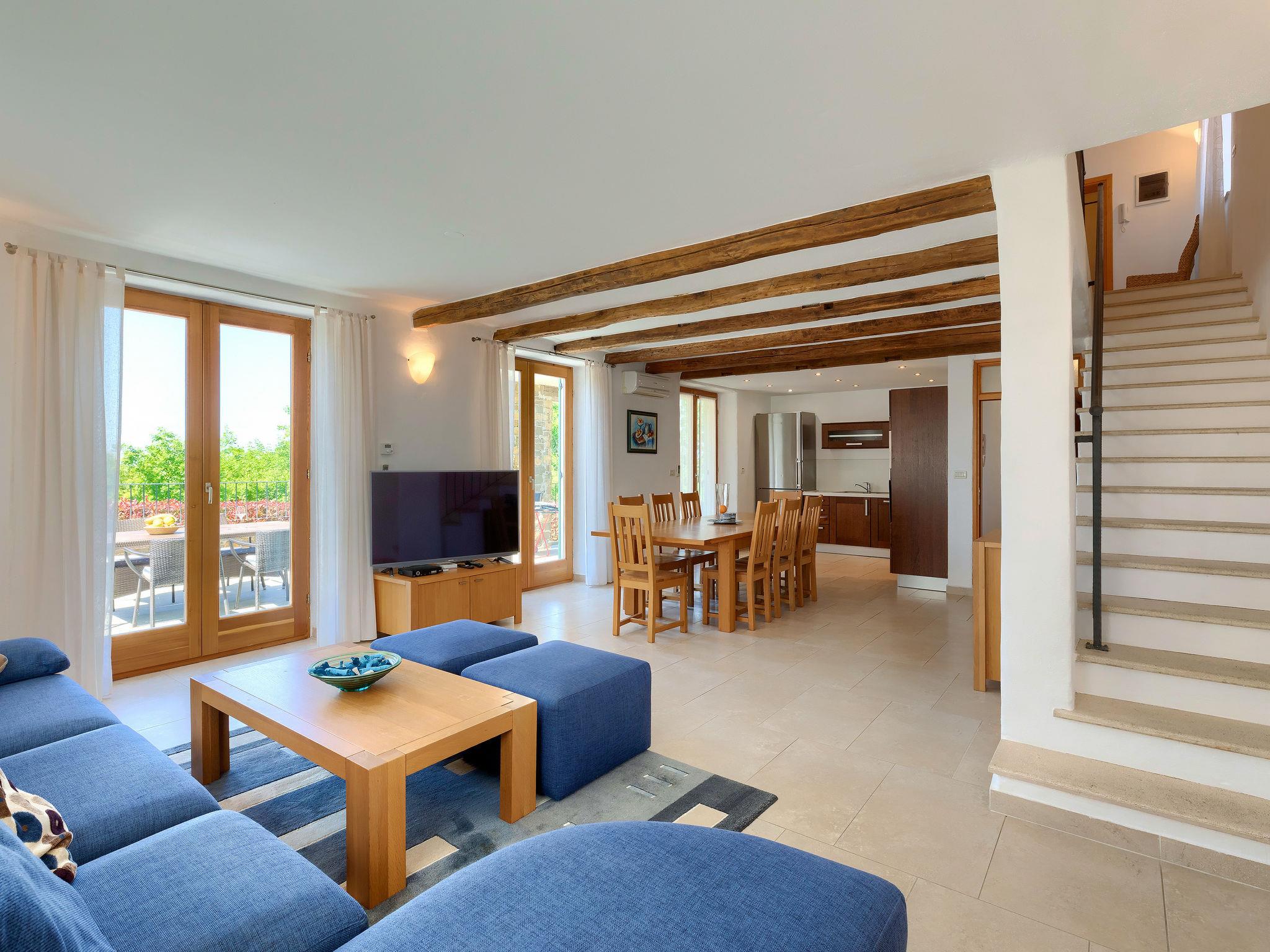 Beautiful villa "Morgan", 2 storeys. In the hamlet Baredine 4 km from the centre of Buje, in a quiet, sunny, elevated position, 17 km from the sea. Private: property 300 m2, small garden with lawn, swimming pool angular, heated (8 x 4 m, depth 140 cm, seasonal availability: 15.Apr. - 15.Oct.) with internal staircase. Outdoor shower. In the house: internet access, washing machine, tumble dryer. Parking at the house on the premises. Shop 4 km, restaurant 1 km, bus stop 4 km, railway station 33 km, pebble beach 17 km. Tennis 16 km, sports centre 16 km, walking paths from the house 1 km, cycle lane 1 km. Nearby attractions: Aquapark 19 km.