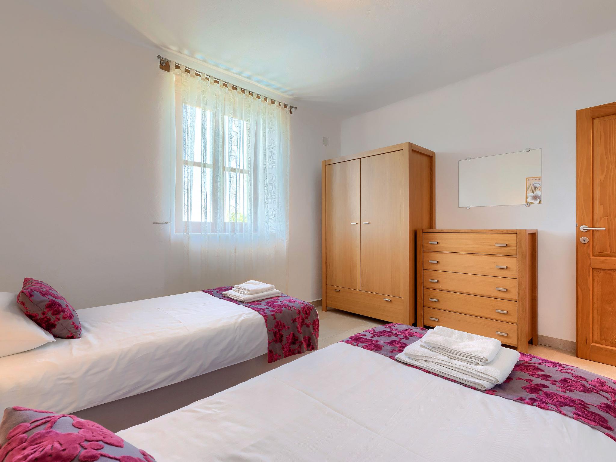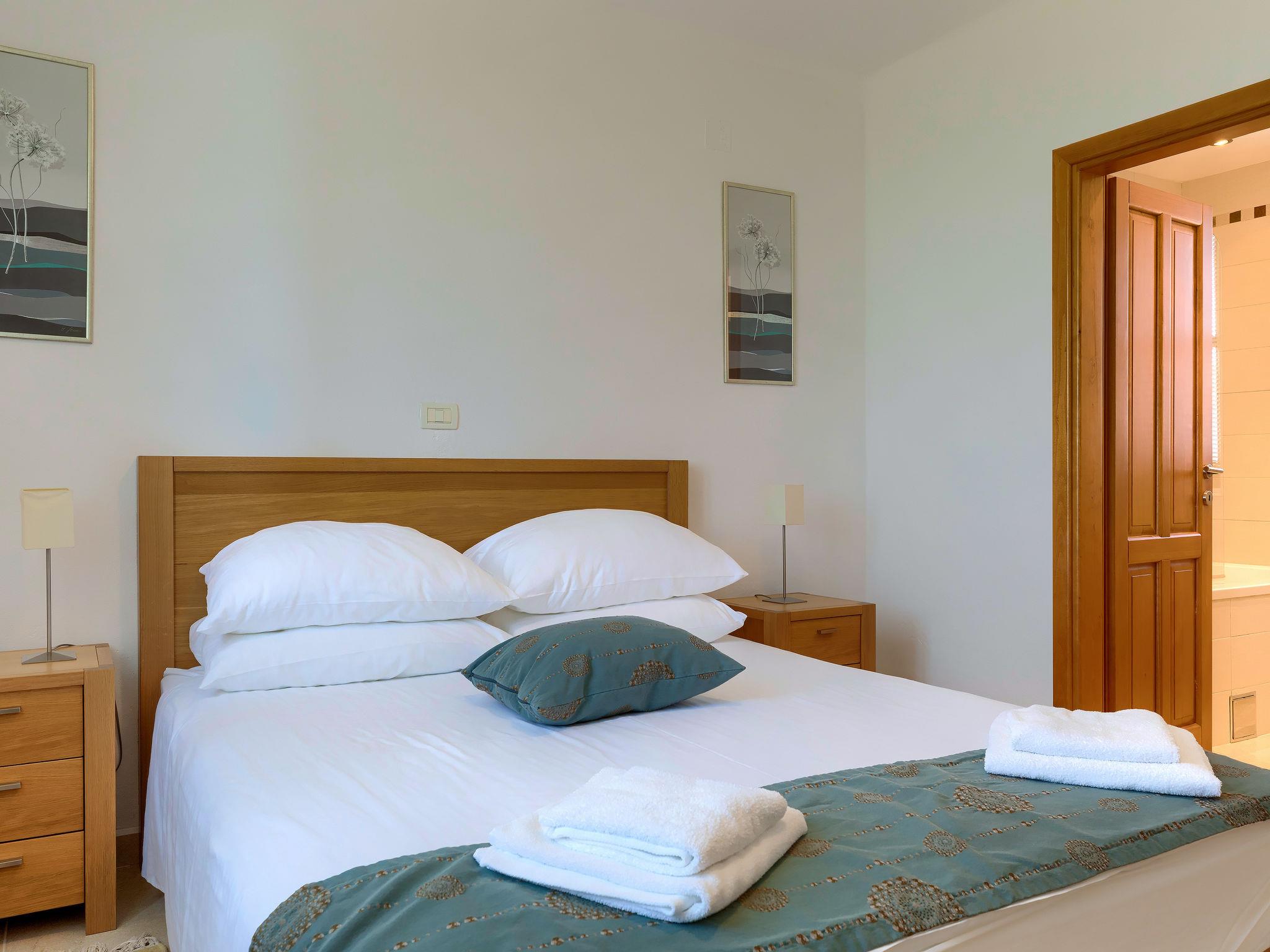 5-room villa 148 m2 on 2 levels. Beautiful and cosy furnishings: living/dining room with satellite TV (flat screen), DVD and air conditioning. Exit to the terrace. 1 room with 1 french bed (160 cm, length 200 cm), shower/WC and air conditioning. Exit to the terrace. Open kitchen (oven, dishwasher, 4 ceramic glass hob hotplates, microwave, freezer, electric coffee machine). Sep. WC. Upper floor: 1 room with 1 french bed (160 cm, length 200 cm), shower/WC and air conditioning. 1 room with 2 beds (80 cm, length 200 cm), air conditioning. 1 room with 2 beds (80 cm, length 200 cm), air conditioning. Exit to the terrace. Bath/shower/bidet/WC. Floor heating. Terrace 15 m2, roofed, 2 terraces 8 m2, roofed. Terrace furniture, barbecue (portable), deck chairs. Very beautiful view of the swimming pool and the countryside. Facilities: safe, hair dryer. Internet (WiFi, free).