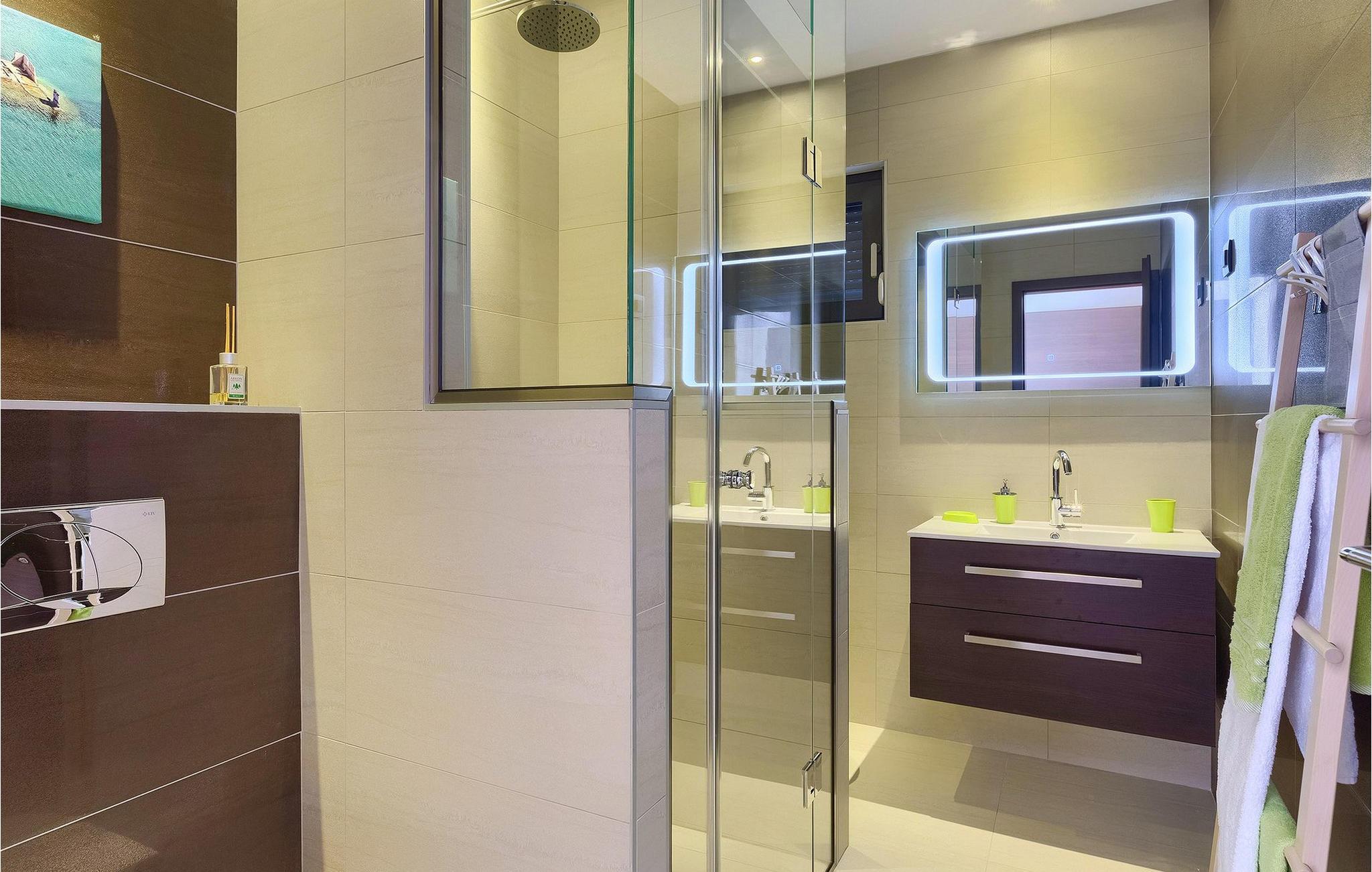 På første sal i villaen er der 3 soveværelser, som alle har eget badeværelse og en fantastisk udsigt. Hvert af soveværelserne har direkte udgang til terrassen med opholdsstue og panoramaudsigt, hvor du helt sikkert vil nyde din morgenkaffe.