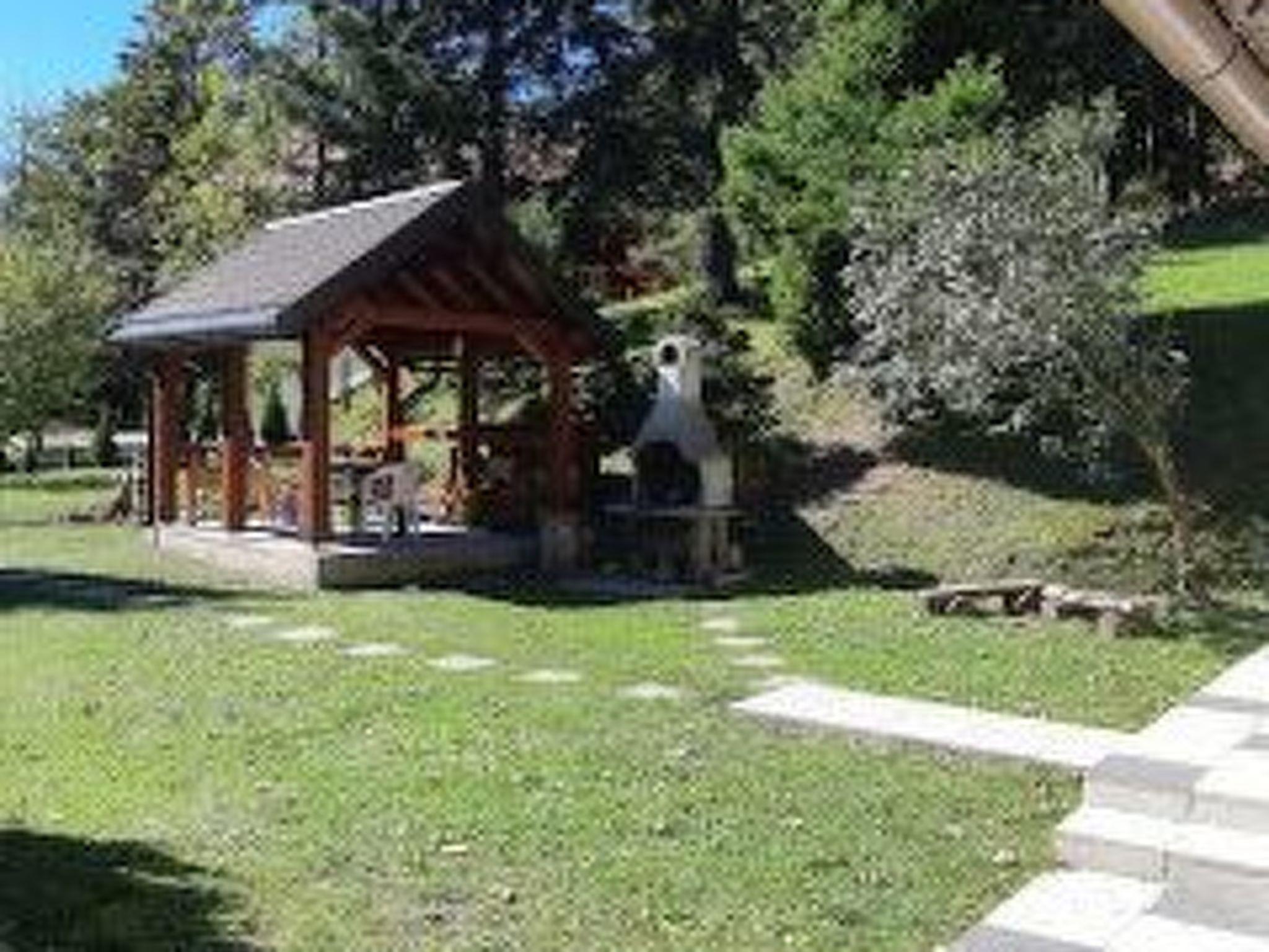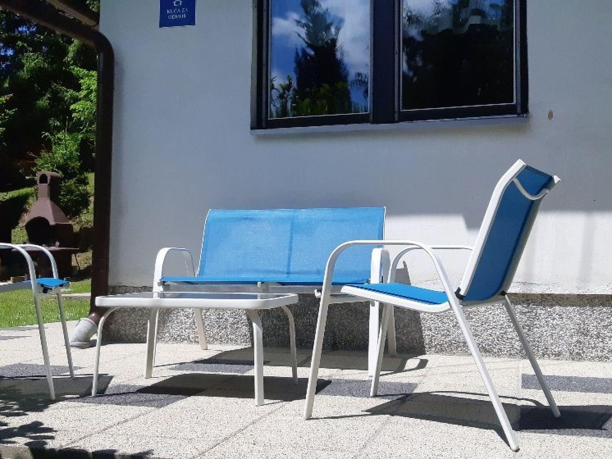 The house has a 2400m² plot of land that is not fenced. In front of the house there is a roofed and furnished terrace with a brick-built outdoor grill. There are two parking spaces by the house.