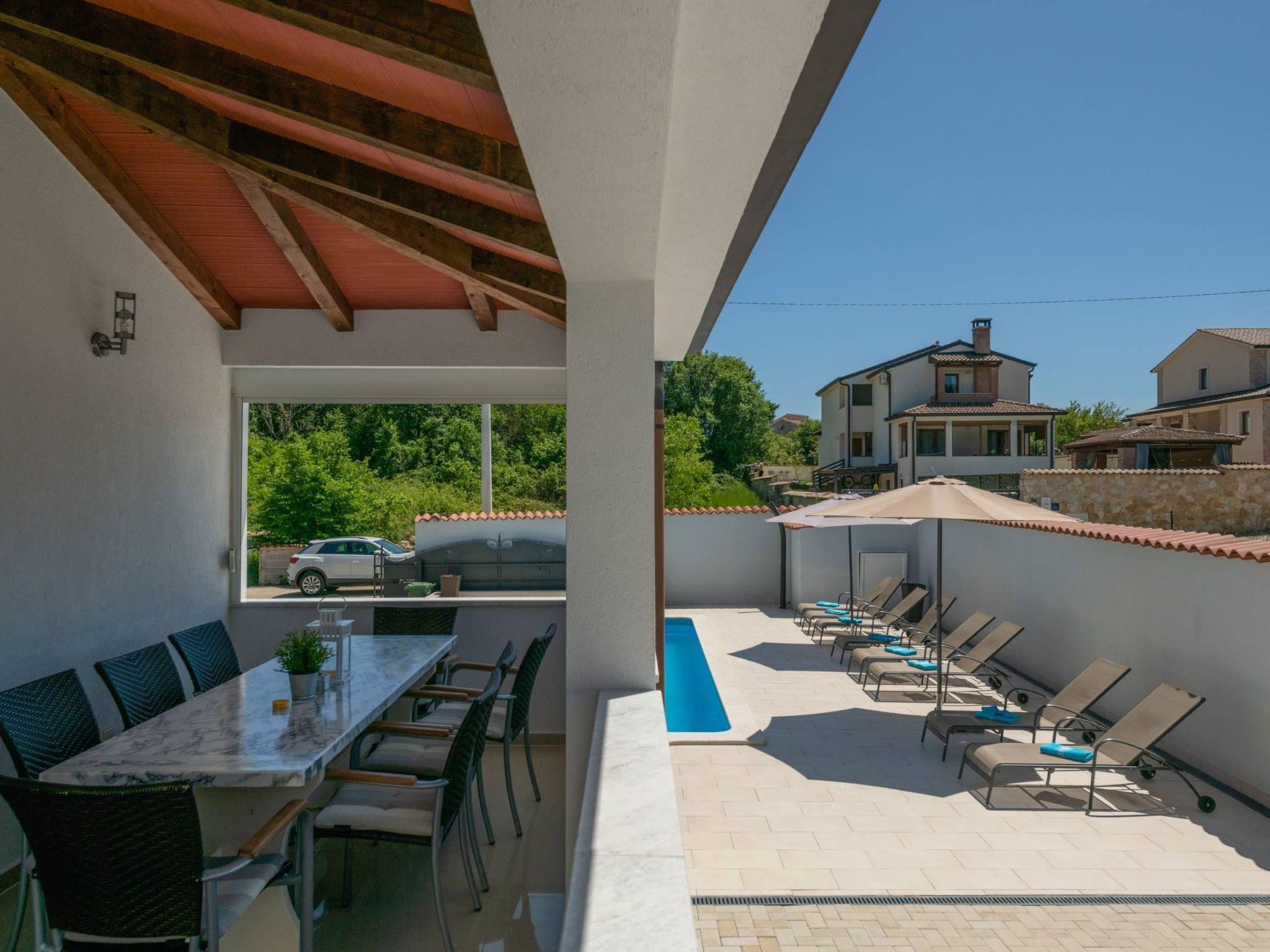 The beautiful beach Špadici is just 8 km away. Shops and a restaurant are 4 km away from the villa, the city center 6 km and Airport Pula 60 km.