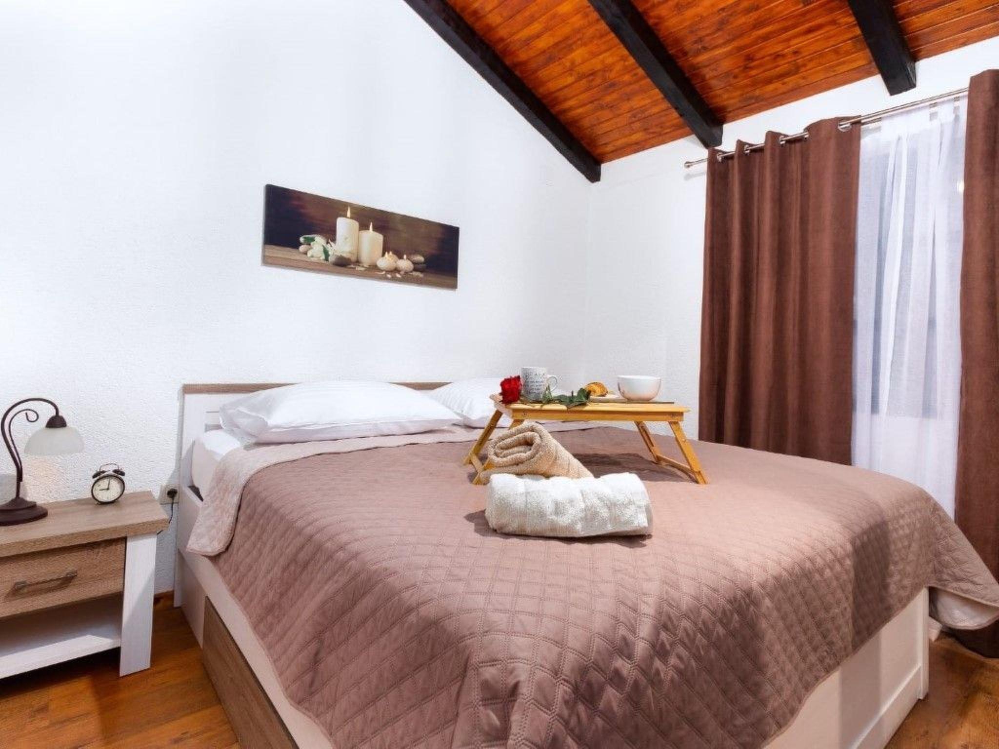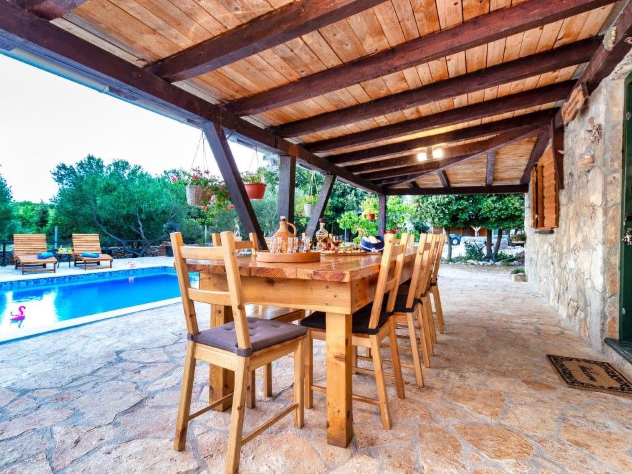 This Dalmatian estate can fully accommodate up to 8 guests in three spacious bedrooms, each with its own bathroom. It consists of a beautifully decorated living room with a sofa bed for extra two people and a kitchen with a barbecue that will meet all the guest’s needs.