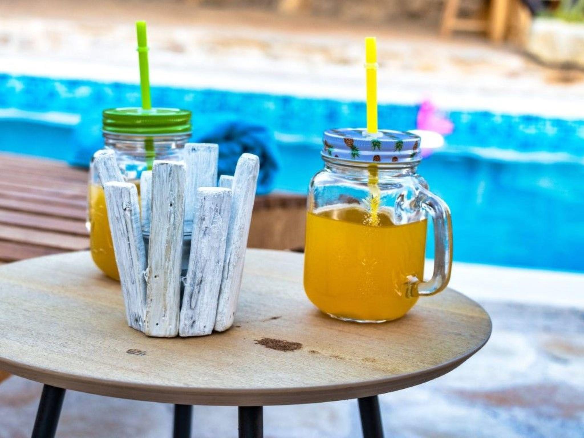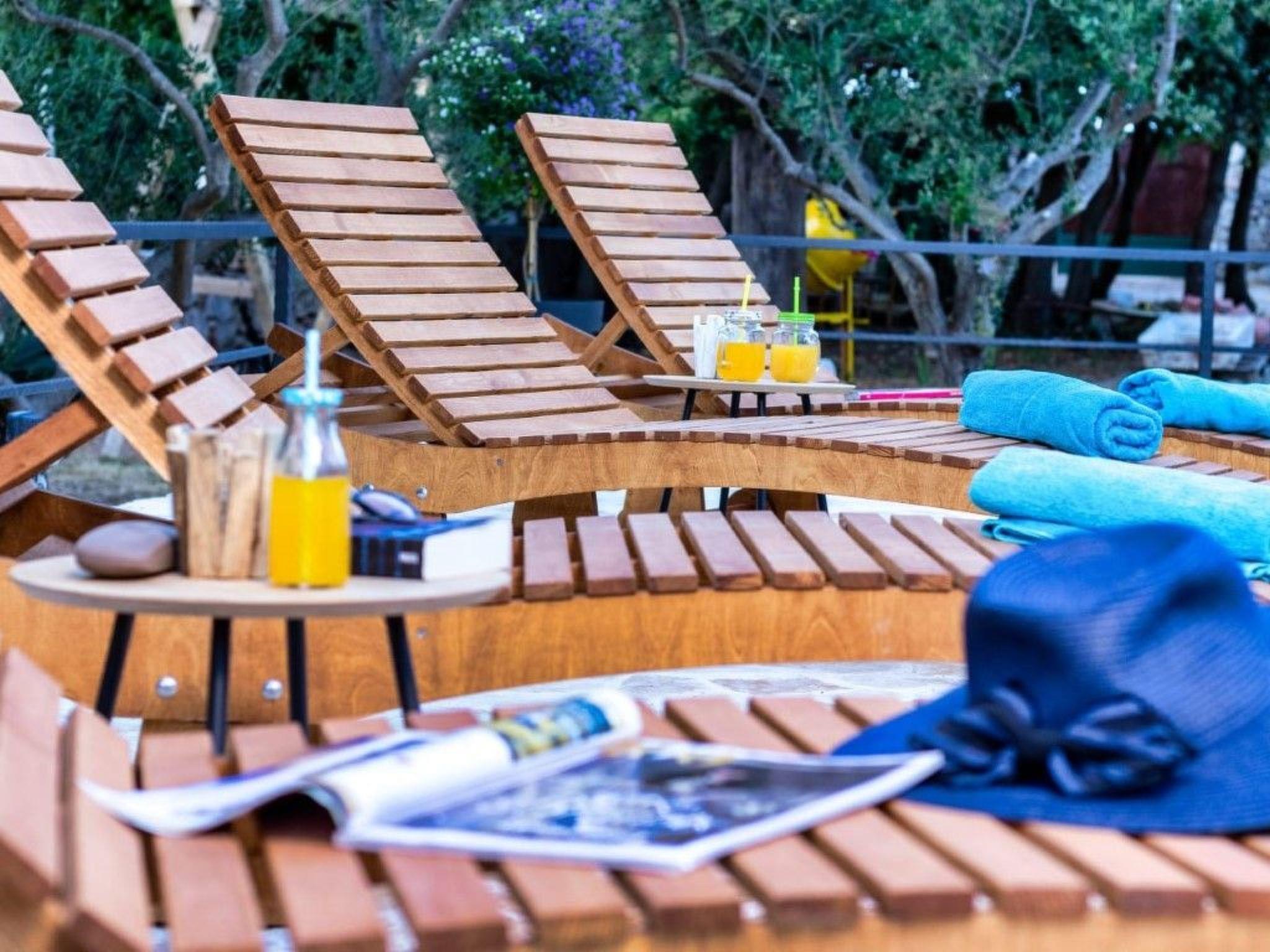 The surrounding area provides a 40 m2 sized swimming pool, located next to the terrace, and an outdoor mini bar. Guests can enjoy the sun on the deck by the pool while the children play on the playground. If you want to have fun, there are a gym, table soccer, table tennis and darts as well as 4 bikes to explore the beautiful surroundings.