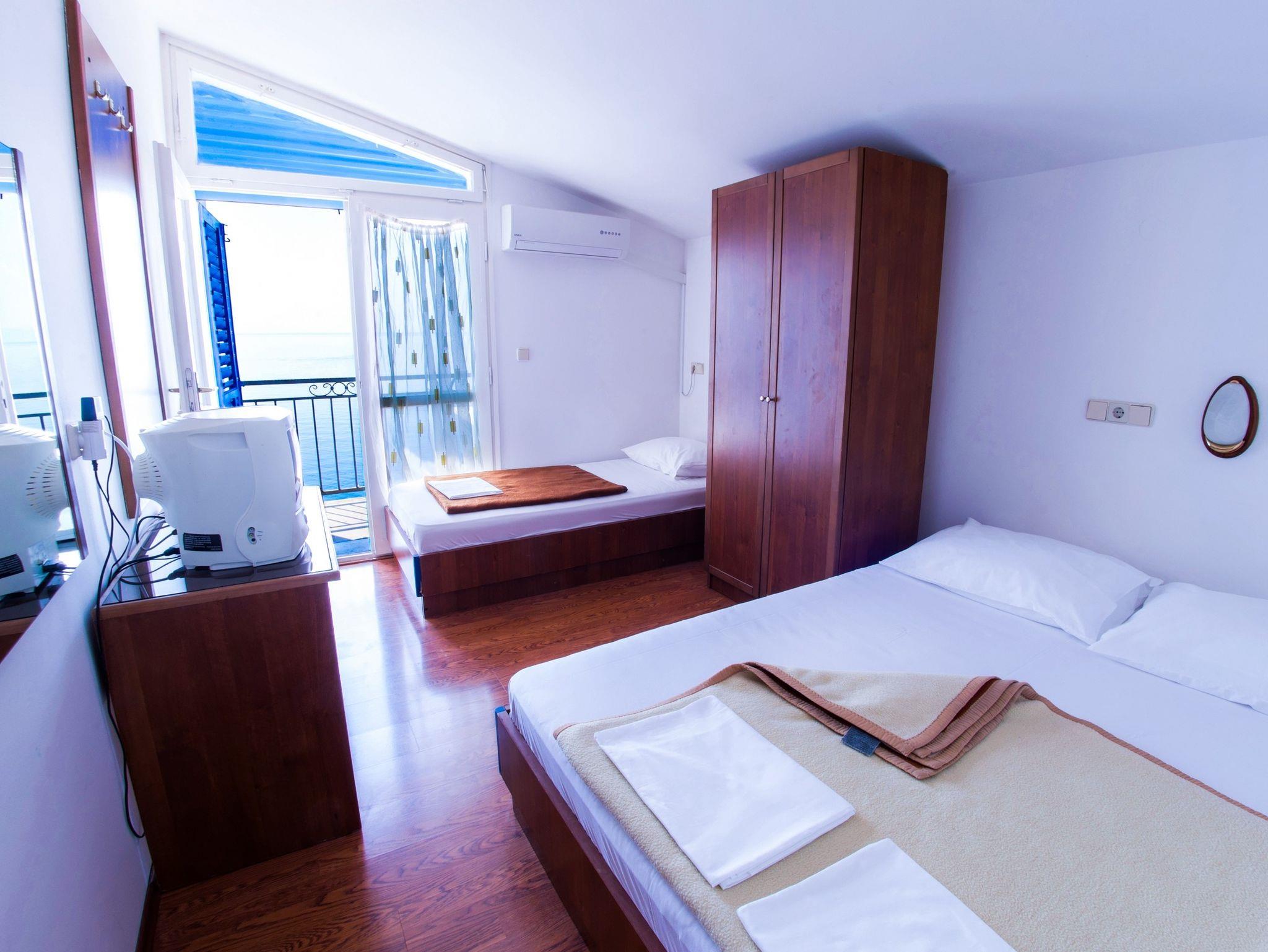 Studio bietet Platz für 3 Gäste. Die Betten sind in Schlafzimmern, die es 1 gibt, innerhalb einer Gesamtfläche von 19m2, angeordnet. Die Gäste haben einen eigenen Balkon zur Verfügung, auf der sie in warmen Sommernächten genießen können. Das Studio-Apartment bietet Meerblick. IM PREIS INBEGRIFFEN: Frühstück, Endreinigung, Klimatisierung, Parkplatz, Internet, Wäschewaschen, Bügelbrett, Föhn. VERBINDLICHE ZUSÄTZLICHE KOSTEN: Kurtaxe (Erwachsene 0,93 € - 1,78 € Nacht/Person, Kinderermäßigung 12 - 17 Jahre), Aufzahlung für Kurzaufenthalte (prozentualer Zuschlag pro Nächtigungsanzahl: 30% - 1, 20% - 2, 10% - 3). UNVERBINDLICHE ZUSÄTZLICHE KOSTEN: Halbpension (12,00 €, 50% Nachlass für Kinder zwischen 4 und 12 Jahren, Kinder bis 4 Jahre sind frei.), Vollpension (24,00 €, 50% Nachlass für Kinder zwischen 4 und 12 Jahren, Kinder bis 4 Jahre sind frei.). Die Verfügbarkeit zusätzlicher Dienstleistungen in Ihrem reservierten Termin und die Preise derselben (falls nicht aufgeführt) müssen im Voraus überprüft werden. Zusätzliche Dienstleistungen die in der Zahlungsaufforderung nicht aufgeführt sind werden direkt beim Vermieter bezahlt, angenommen der Gast nutzt auch diese.