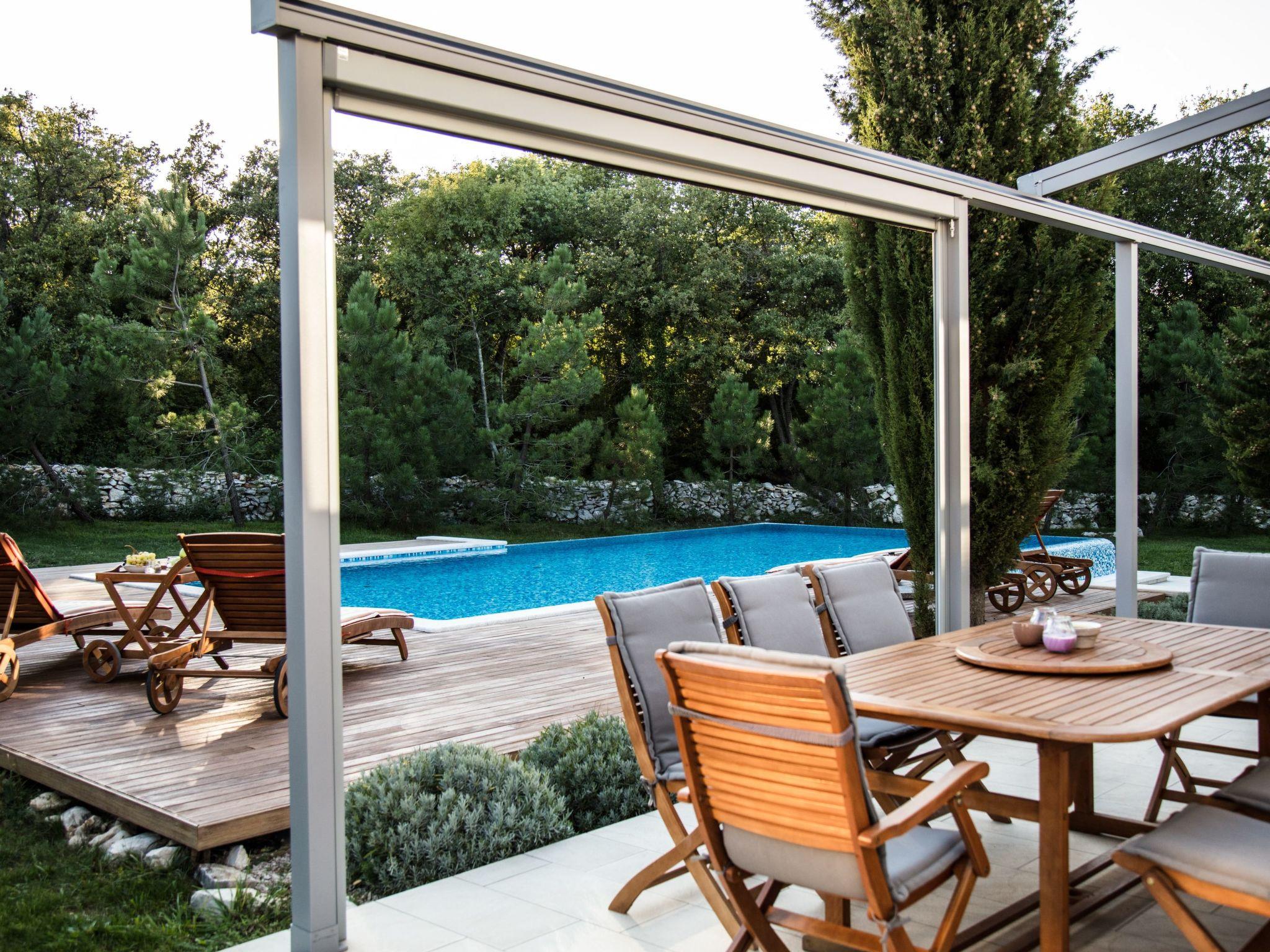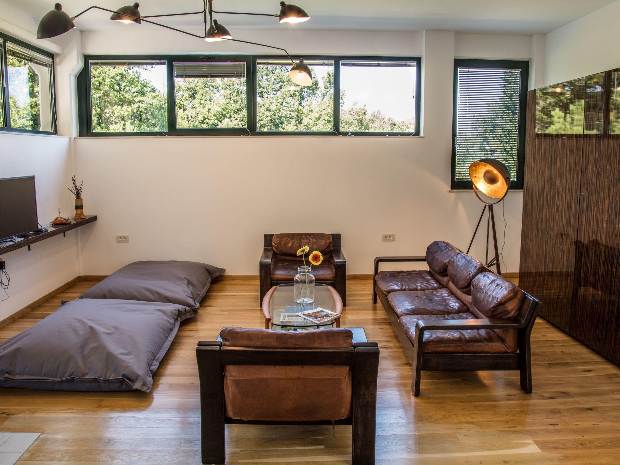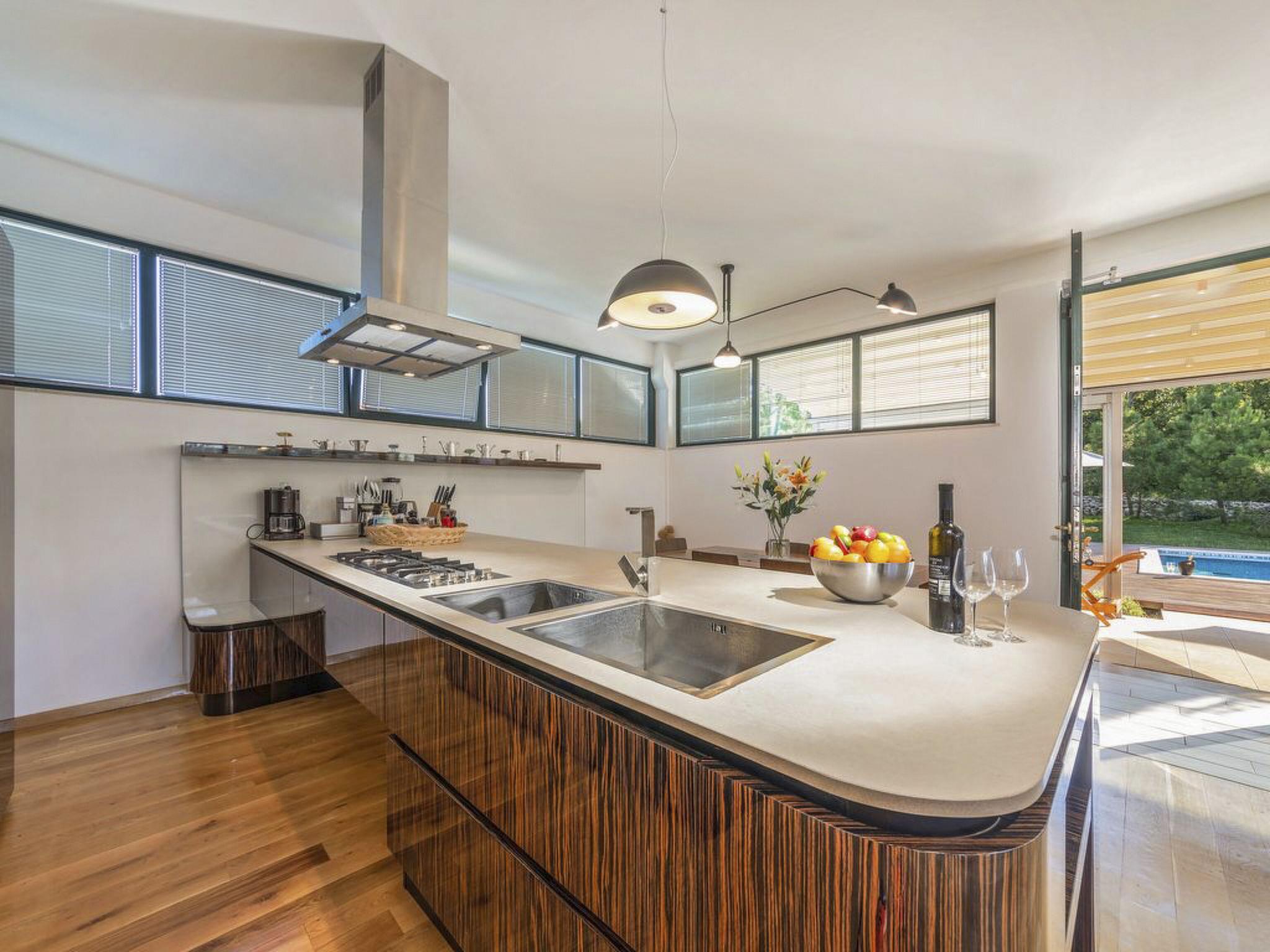 Modern country house with swimming pool and garden. This villa is set in a private garden (1600 m²) with a swimming pool (5.5 m x 11 m) on the edge of a quiet Istrian village. It offers a view of the forest.