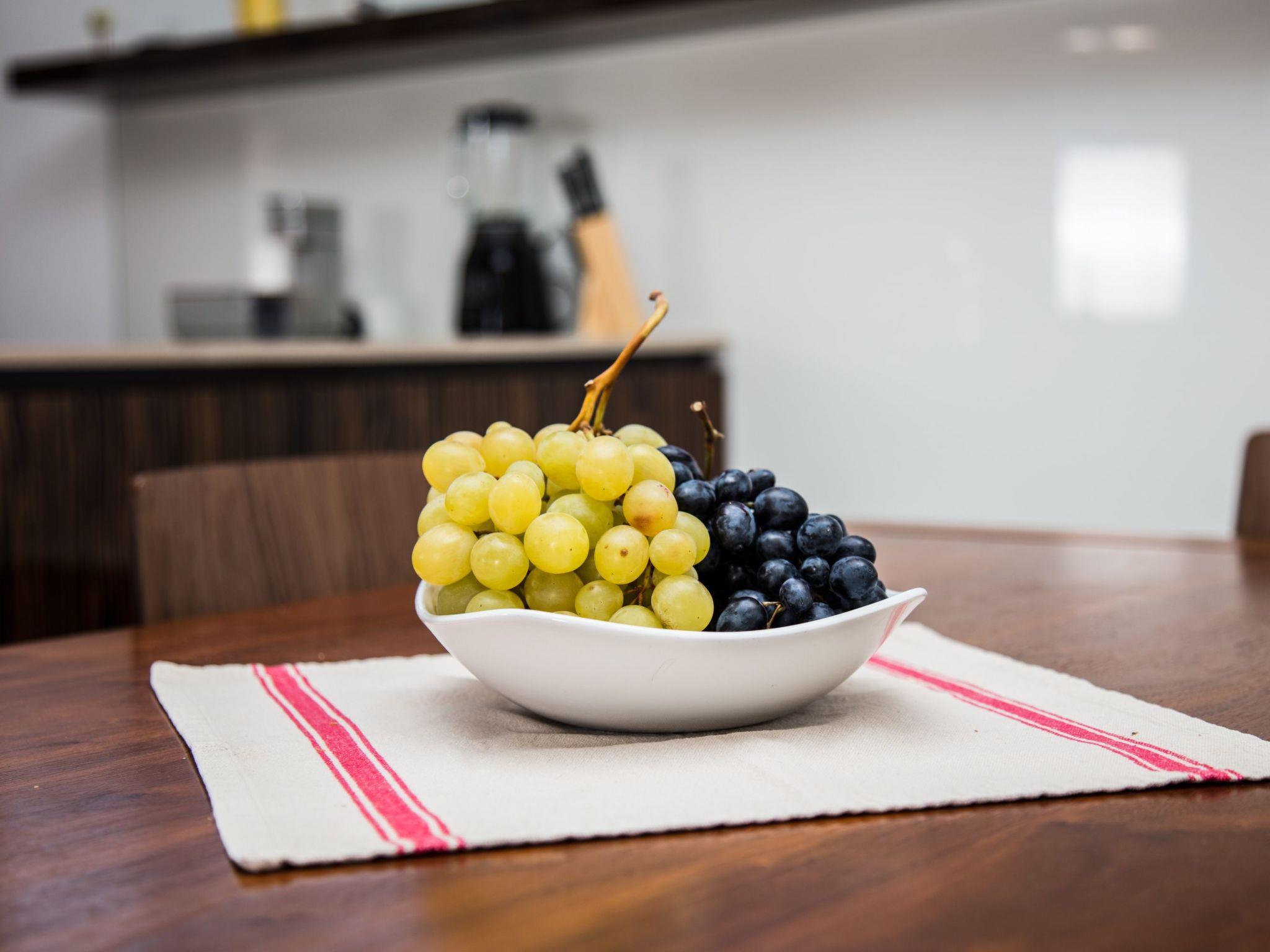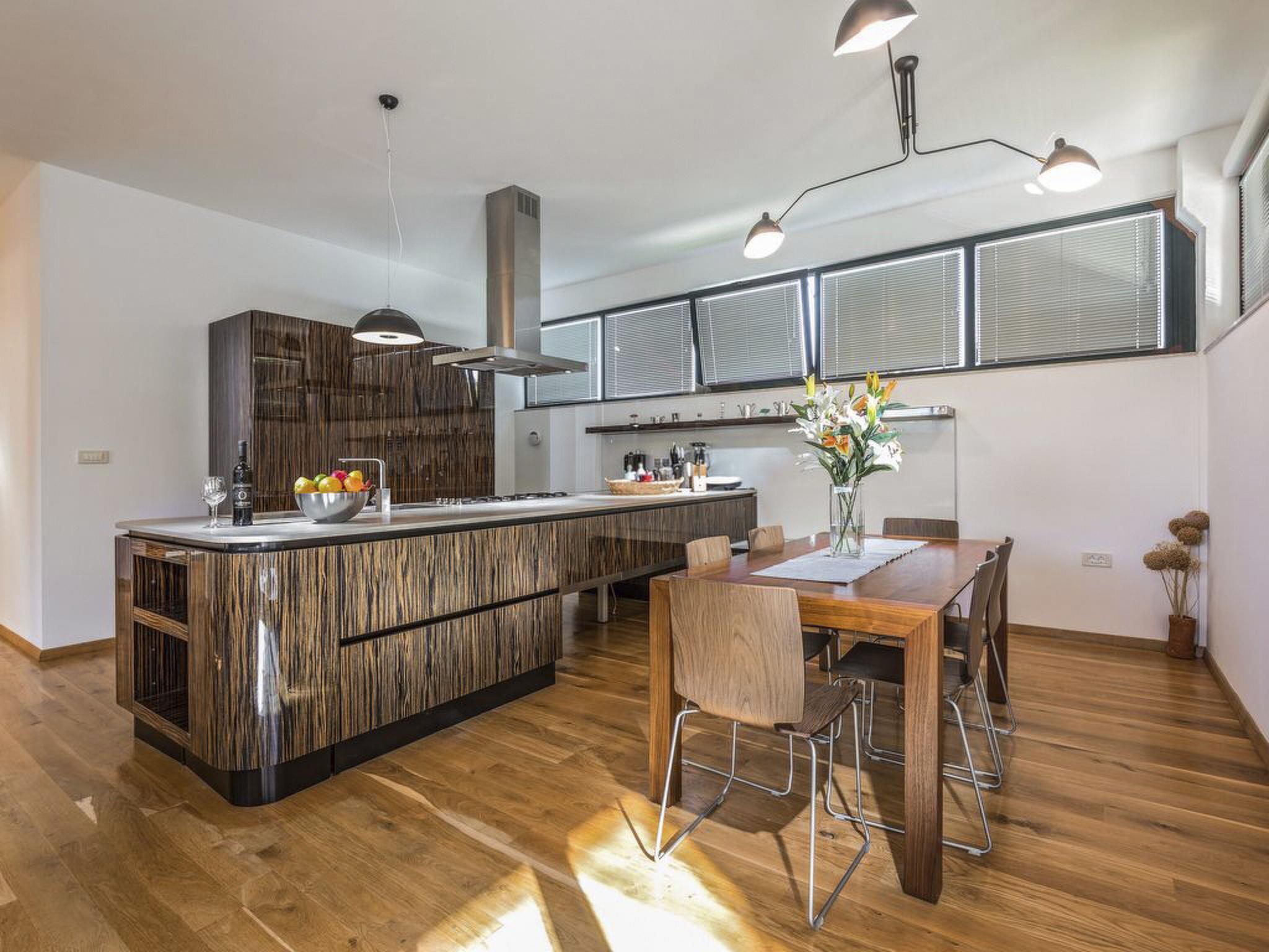 Spacious living area with a luxurious large kitchen. Cot and high chair are available on request.