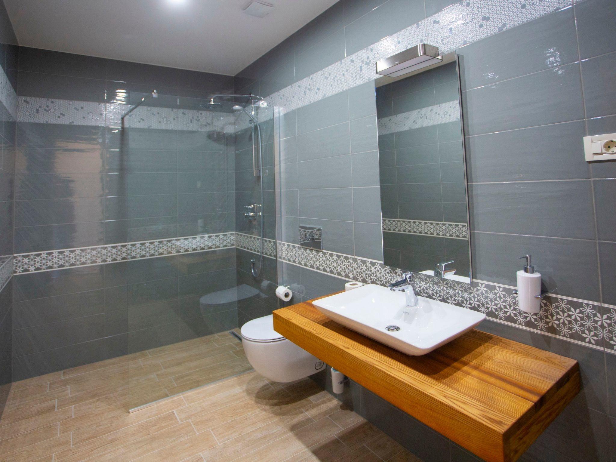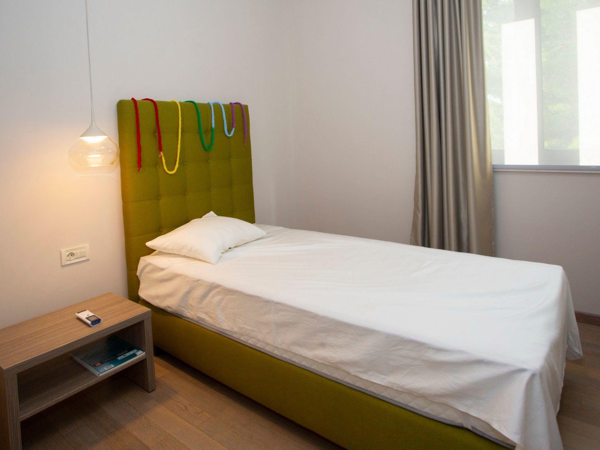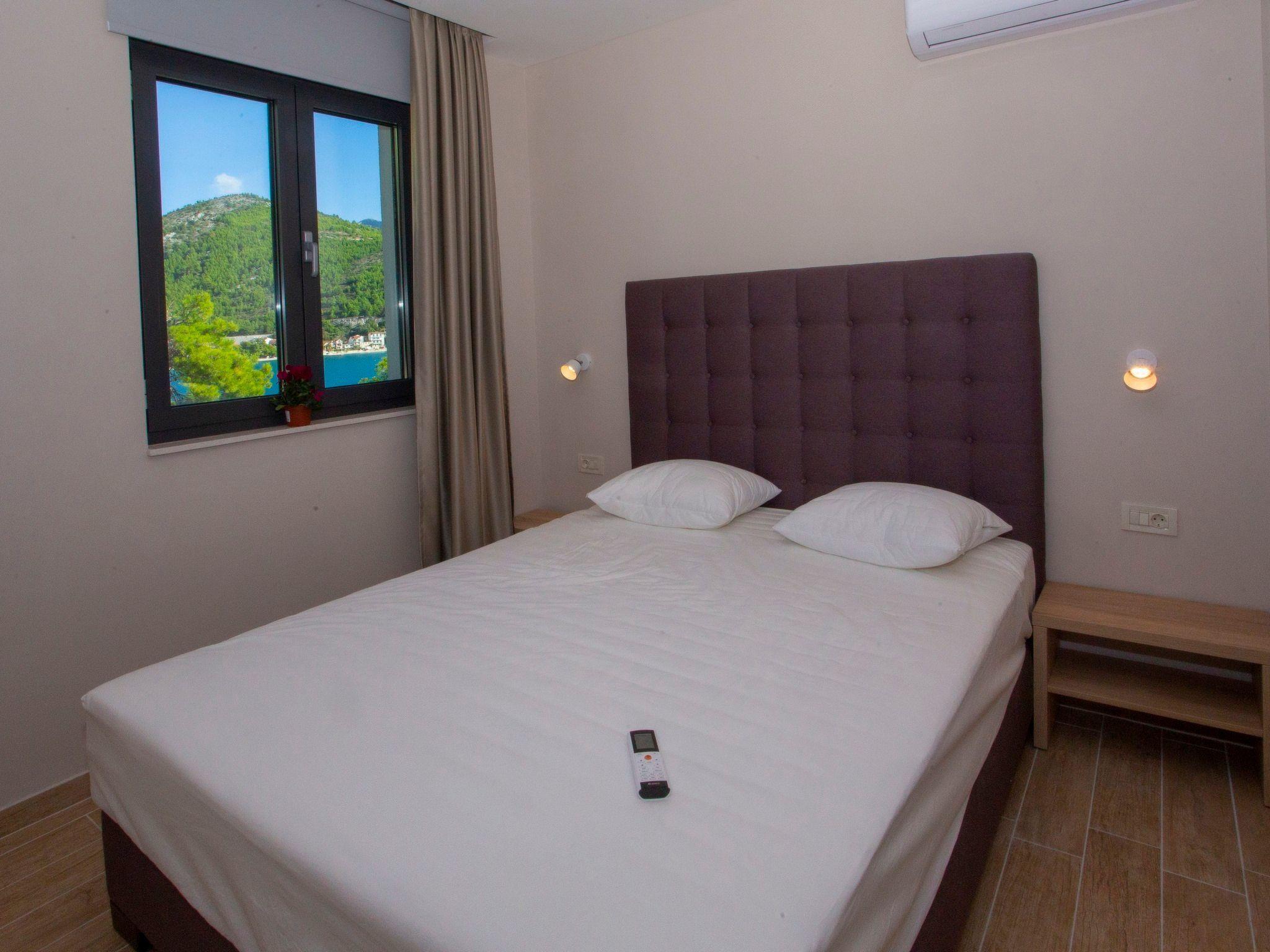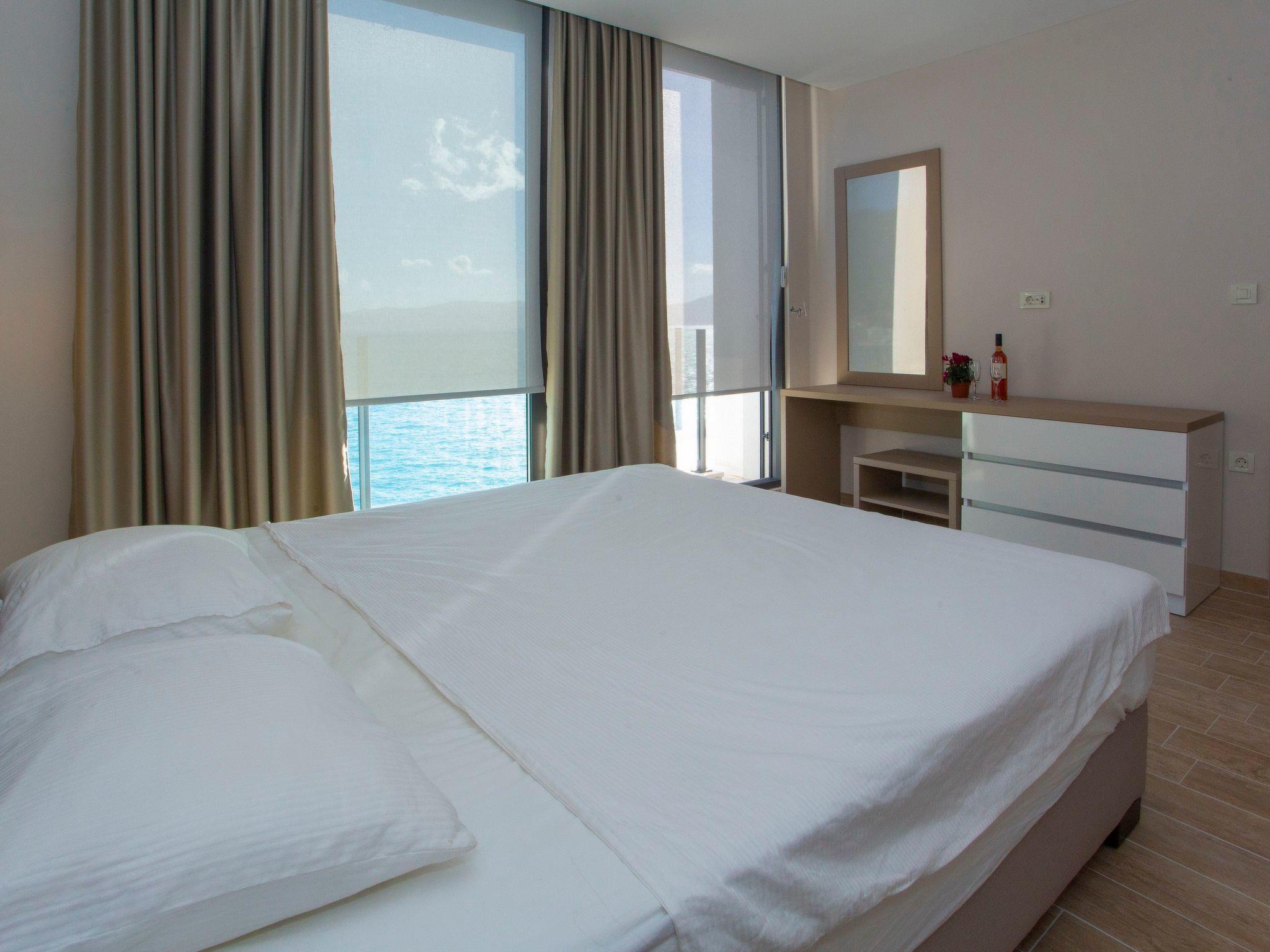 The villa’s exterior is nothing short of a paradise, offering panoramic sea views from its balcony and a private pool that serves as the centerpiece of relaxation. Surrounding the pool is a spacious terrace equipped with sun loungers, an outdoor dining table, and a grill, perfect for entertaining, whether it’s a family barbecue or a serene sunset dinner. The allure of dining under the stars or sunbathing with the backdrop of the Adriatic’s soothing hues is an experience in itself.