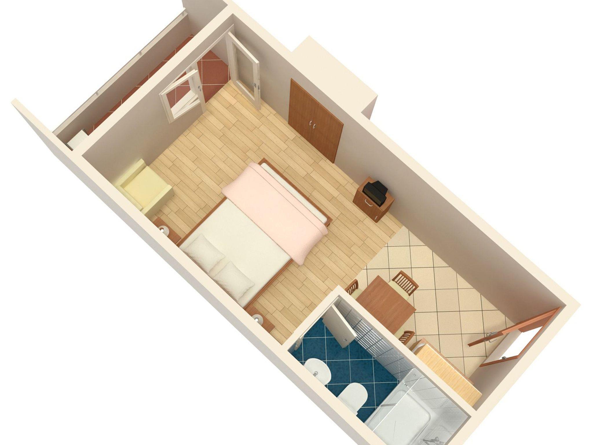 Studio bietet Platz für 2 Gäste. Die Betten sind in Schlafzimmern, die es 1 gibt, innerhalb einer Gesamtfläche von 17m2, angeordnet. Die Gäste haben einen eigenen Balkon zur Verfügung, auf der sie in warmen Sommernächten genießen können. Es ist erlaubt, Speisen auf dem Gemeinschafts-Grill vorzubereiten. In der Unterkunftseinheit besteht die Möglichkeit des Mitbringens von Haustieren gegen Aufpreis. IM PREIS INBEGRIFFEN: Kurtaxe, Endreinigung, Klimatisierung, Parkplatz, Internet, Kinderbett, Bügeleisen, Bügelbrett, Föhn, tragbarer Grill, 1 Bett für Kinder (im Preis enthalten). UNVERBINDLICHE ZUSÄTZLICHE KOSTEN: Haustiere (5,00 € pro Nacht). Die Verfügbarkeit zusätzlicher Dienstleistungen in Ihrem reservierten Termin und die Preise derselben (falls nicht aufgeführt) müssen im Voraus überprüft werden. Zusätzliche Dienstleistungen die in der Zahlungsaufforderung nicht aufgeführt sind werden direkt beim Vermieter bezahlt, angenommen der Gast nutzt auch diese. Ermäßigung auf den Grundpreis: Gratistag 14=13 (bei einem Aufenthalt von 14 Tagen oder mehr erhalten Sie einen Gratistag für den Aufenthalt bis 31.12.26).