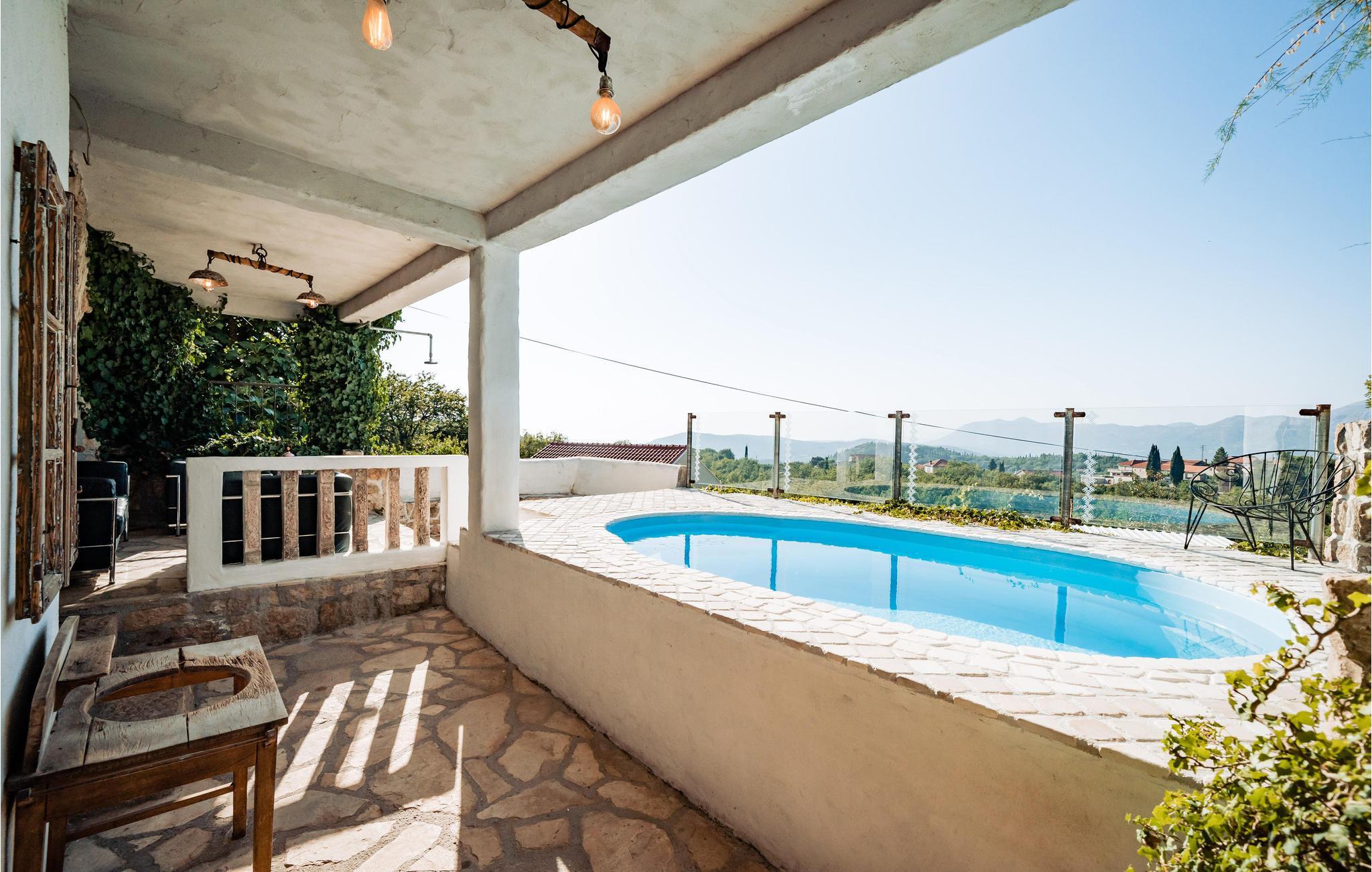 Den store terrasse med en smuk udsigt og spa er det perfekte sted at slappe af. Stueetagen har en lille udendørspool, 2 toiletter og en stor, overdækket terrasse med et dejligt udekøkken. Kælderområdet er omdannet til en taverne og vinkælder.