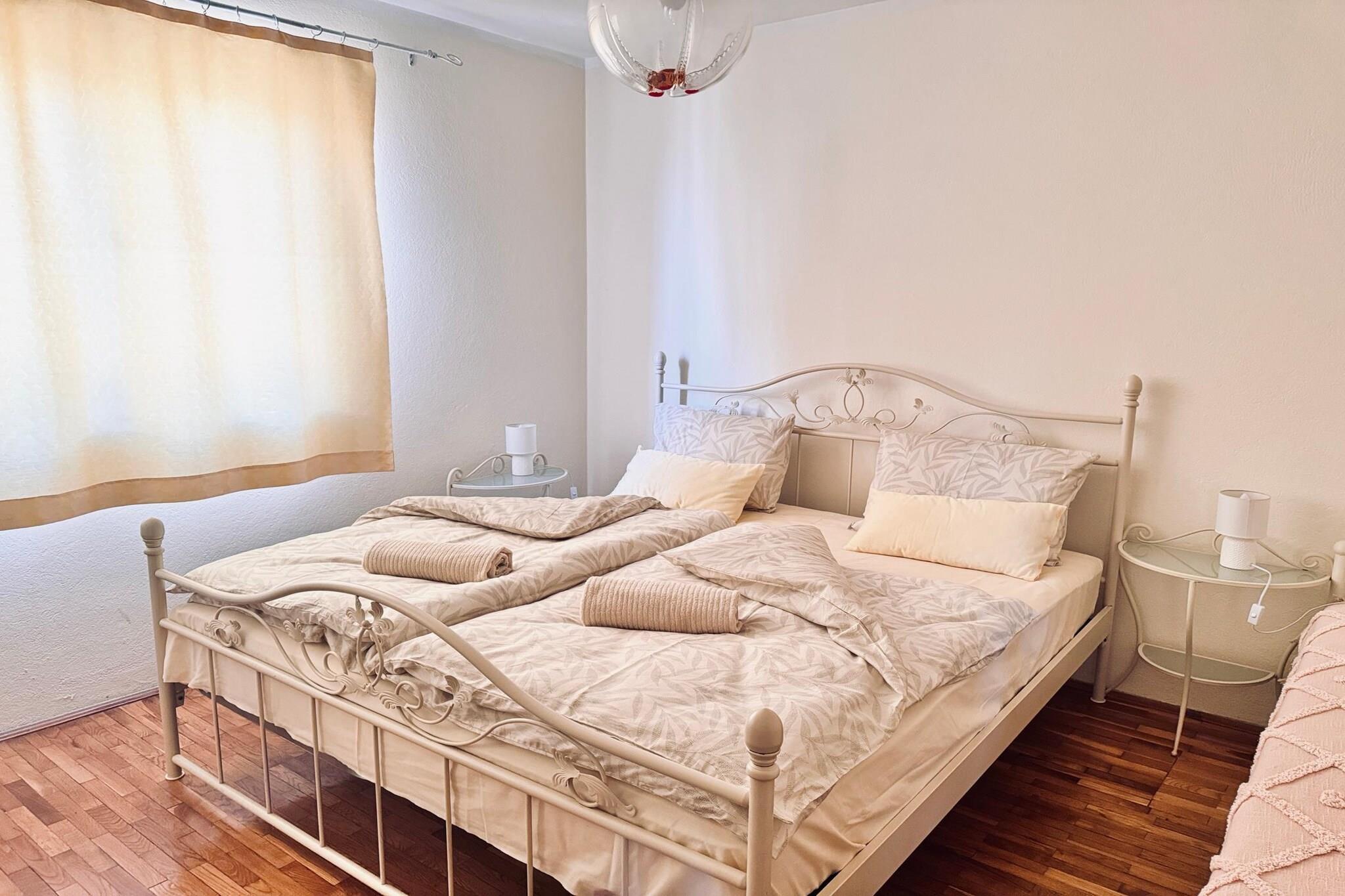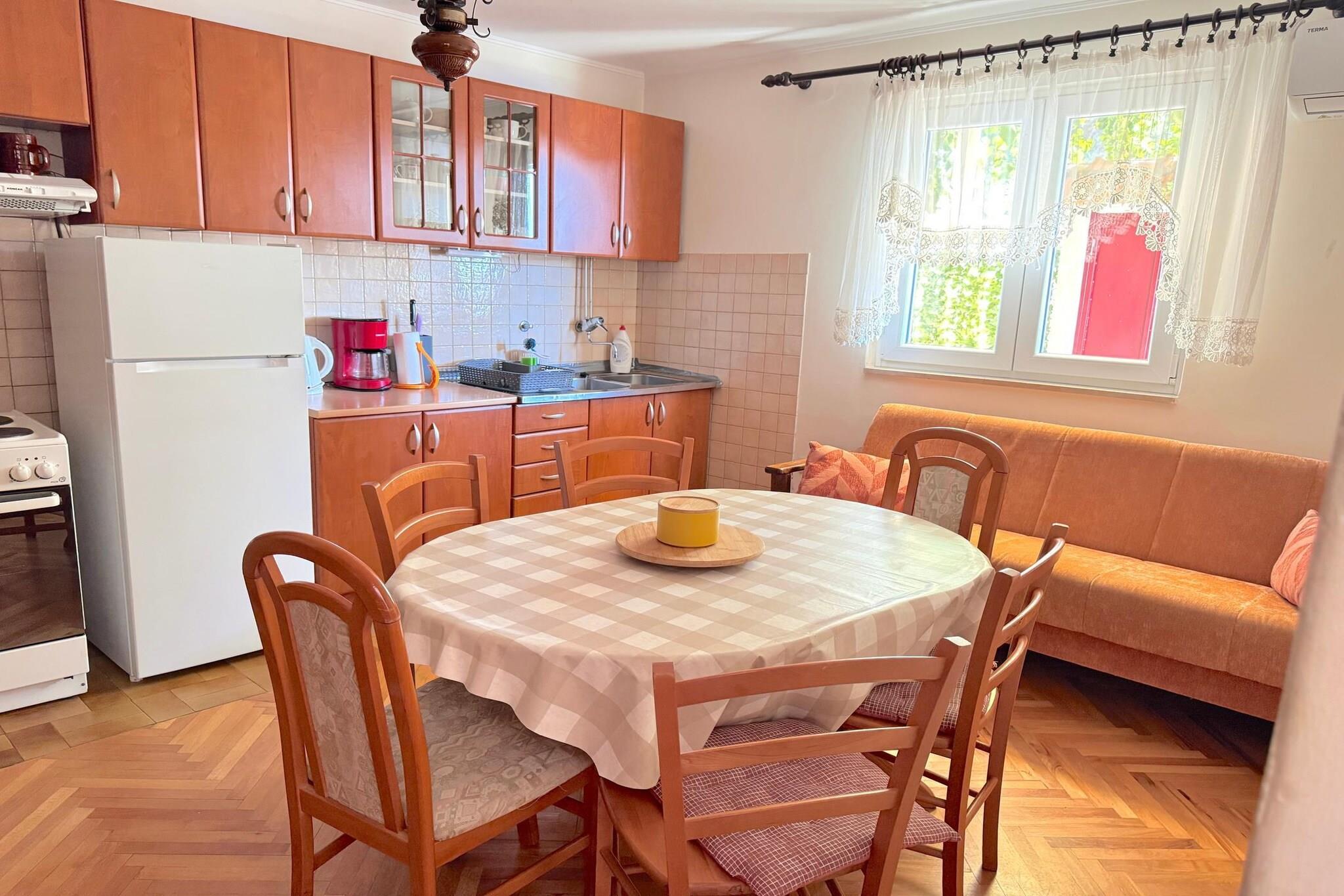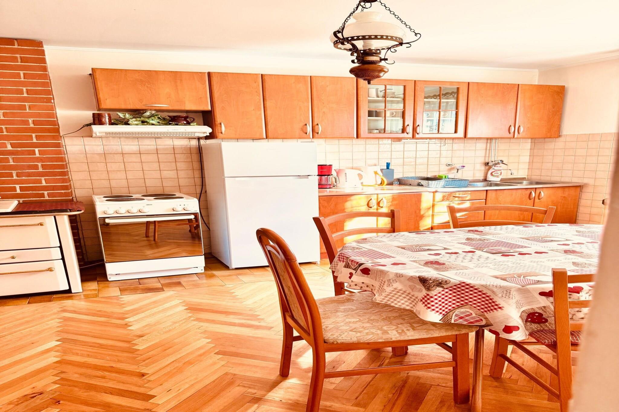 Beliggende i hjertet af Dalmatiens kystområde blander dette karakterfulde stenhus traditionel arkitektur med generøs opholdsplads, ideelt for større familier eller grupper, der søger et afslappet ophold nær Adriaterhavet. Flere terrasser og en smuk balkon skaber naturlige samlingssteder til morgenkaffe, solnedgangsudsigt og lange udendørs middage i den varme middelhavsluft. Indenfor tilbyder huset en komfortabel stue med tv, spisebord og siddeområde til fælles stunder. Der er to veludstyrede køkkener, hvilket gør det nemt at tilberede måltider, selv for større grupper. Fem gennemtænkte soveværelser tilbyder fleksible sovearrangementer: tre dobbeltværelser og et værelse med to enkeltsenge, plus et andet soveværelse med en dobbeltseng og en enkeltseng - perfekt til blandede grupper eller familier med børn. To moderne badeværelser, begge udstyret med badekar, tilføjer bekvemmelighed og komfort, mens praktiske faciliteter såsom Wi-Fi, vaskemaskine, aircondition og varme sikrer et behageligt ophold i enhver sæson. Udendørs inviterer haven med havemøbler og grill dig til at nyde Dalmatiens klima og livsstil fuldt ud. Beliggende nær Adriaterhavskysten i Primošten tilbyder dette hjem nem adgang til krystalklare strande, skjulte badebugter og naturskønne kyststier. Tilbring dine dage med at snorkle i turkisblåt vand, tage på bådture eller vandre i charmerende stengader omgivet af caféer og lokale restauranter. Inden for nem køreafstand kan du udforske de historiske havnebyer Šibenik og Trogir, eller oplev vandfald og vandrestier i Krka Nationalpark. Uanset om du er her for havet, kultur eller ren afslapning, tilbyder dette dalmatiske ophold en ideel base.