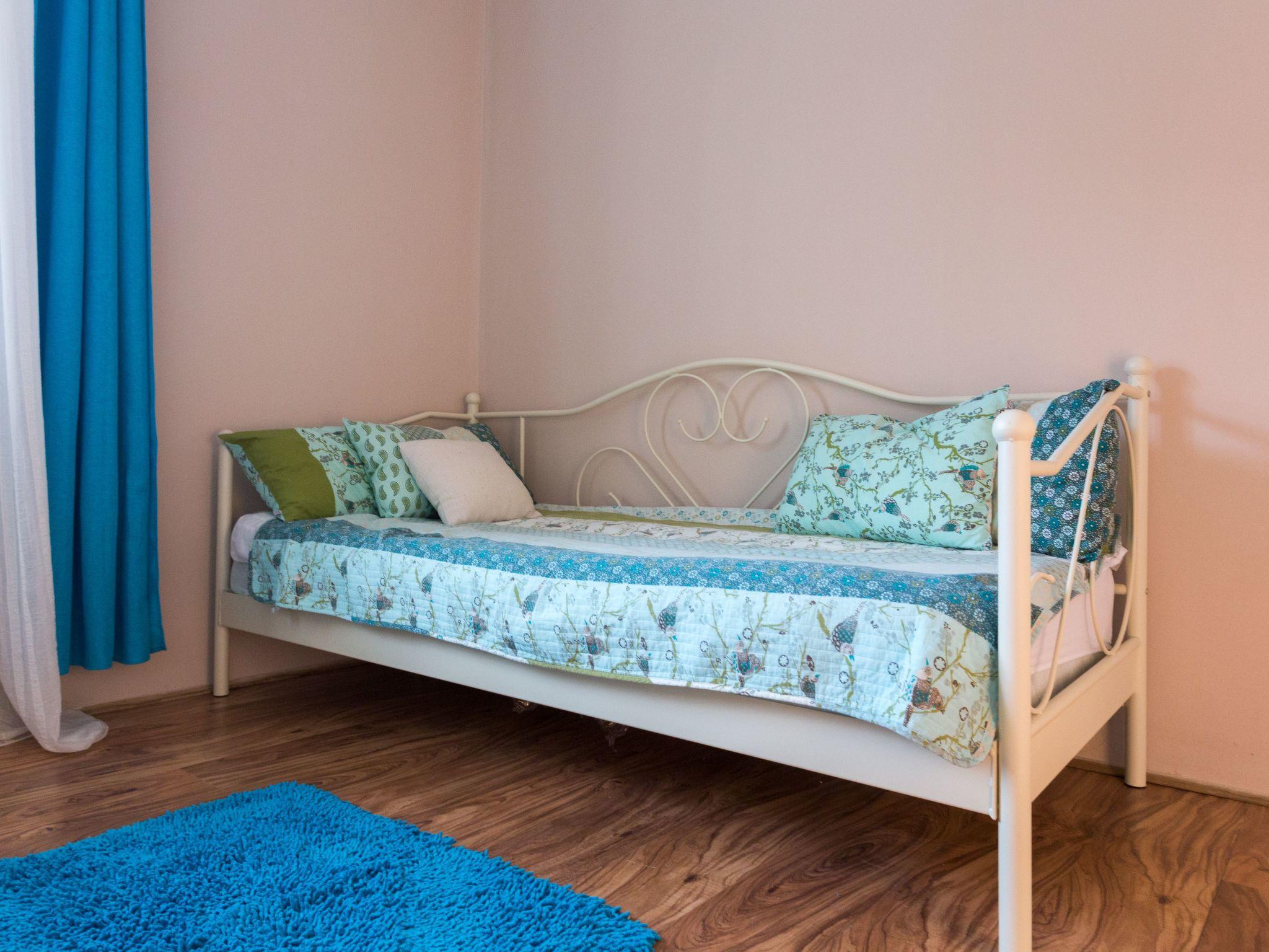 The one-storey holiday house was renovated in 2012 and can accommodate five people. The master bedroom has a double bed measuring 200 x 200cm and the second bedroom has a double bed measuring 160 x 200cm, along with a single bed measuring 90 x 200cm. Both bedrooms have heating. The bathroom has a shower with massage jets and a washing machine. The spacious living room provides a sofa bed for another person, satellite TV with over 100 international channels, as well as air conditioning and heating. The kitchen is fully-equipped with a stove, oven, fridge-freezer, microwave and toaster. The open dining space adjoins the kitchen.