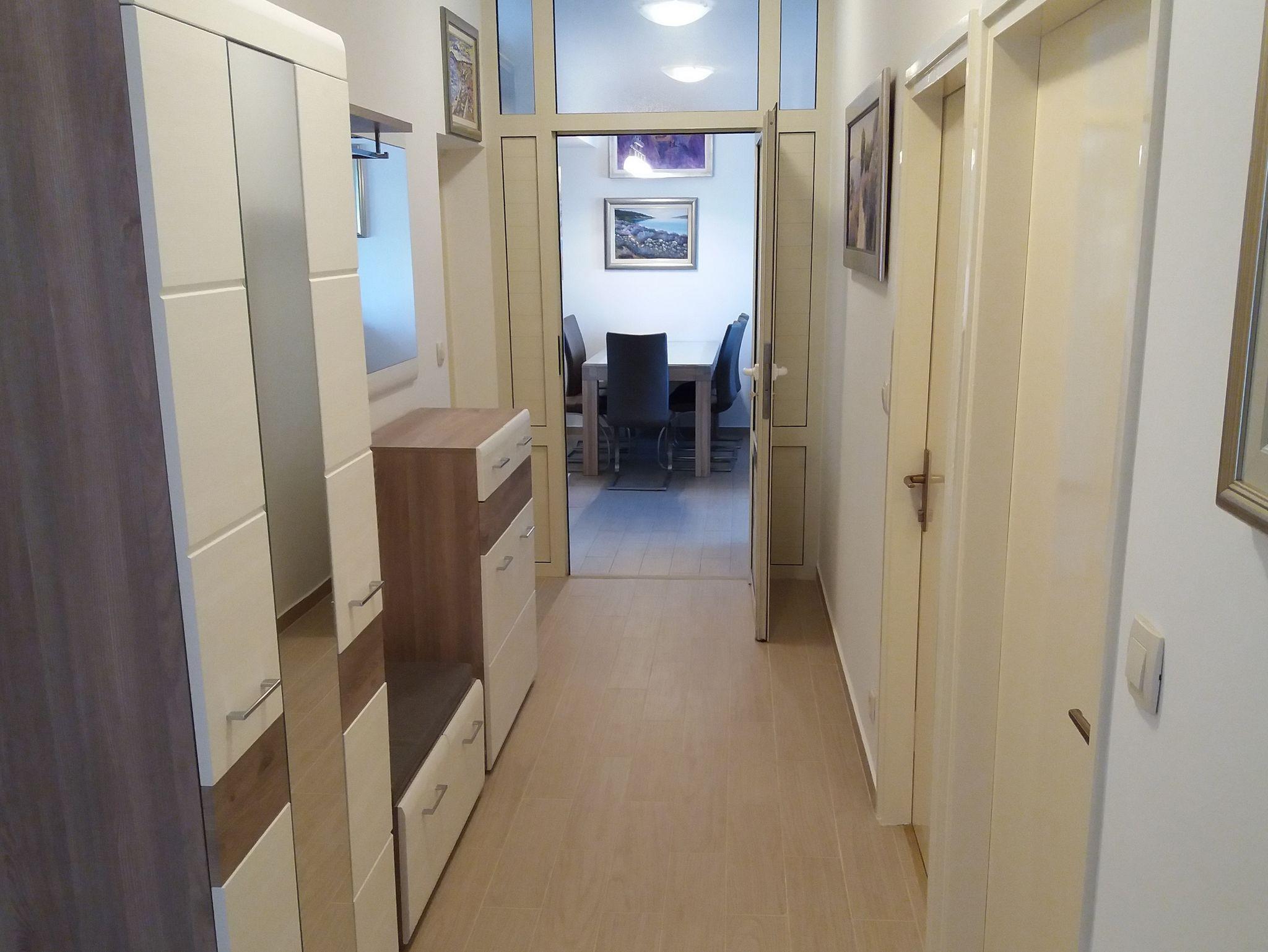 Ferienwohnung bietet Platz für 6 Gäste. Die Betten sind in Schlafzimmern, die es 2 gibt, und in Wohnzimmer, innerhalb einer Gesamtfläche von 93m2, angeordnet. Die Gäste haben einen eigenen Balkon zur Verfügung, auf der sie in warmen Sommernächten genießen können. Das Apartment bietet Meerblick. Es ist erlaubt, Speisen auf dem Gemeinschafts-Grill vorzubereiten. In der gebuchten Unterkunftseinheit zahlt man am Ort ein Depositum ( der Preis ist an der Internetseite angeführt ). IM PREIS INBEGRIFFEN: Kurtaxe, Endreinigung, Klimatisierung, Parkplatz, Internet, Föhn. VERBINDLICHE ZUSÄTZLICHE KOSTEN: Kaution (200,00 € Einmalzahlung), Aufzahlung für Kurzaufenthalte (prozentualer Zuschlag pro Nächtigungsanzahl: 30% - 1, 20% - 2, 10% - 3). Die Verfügbarkeit zusätzlicher Dienstleistungen in Ihrem reservierten Termin und die Preise derselben (falls nicht aufgeführt) müssen im Voraus überprüft werden. Zusätzliche Dienstleistungen die in der Zahlungsaufforderung nicht aufgeführt sind werden direkt beim Vermieter bezahlt, angenommen der Gast nutzt auch diese.