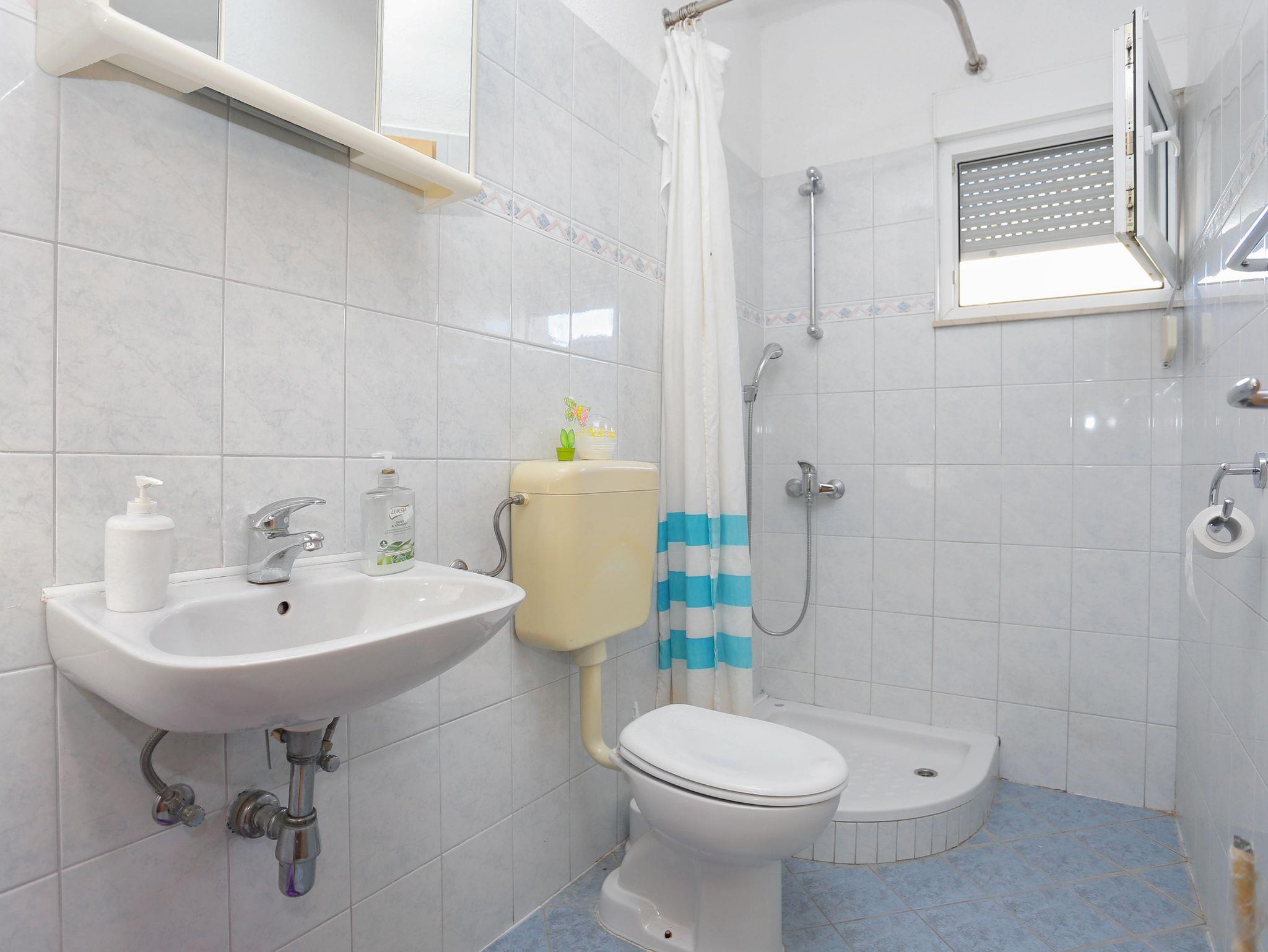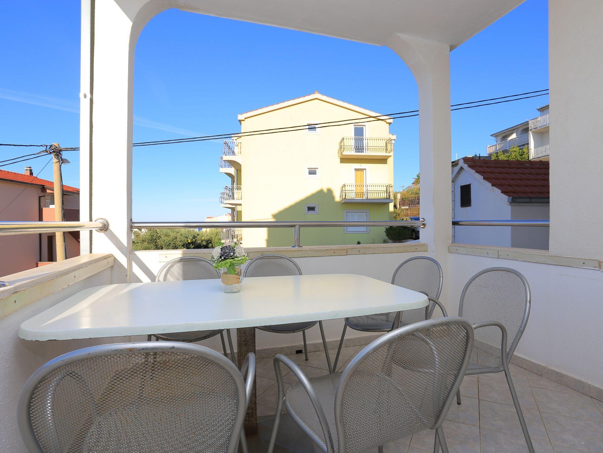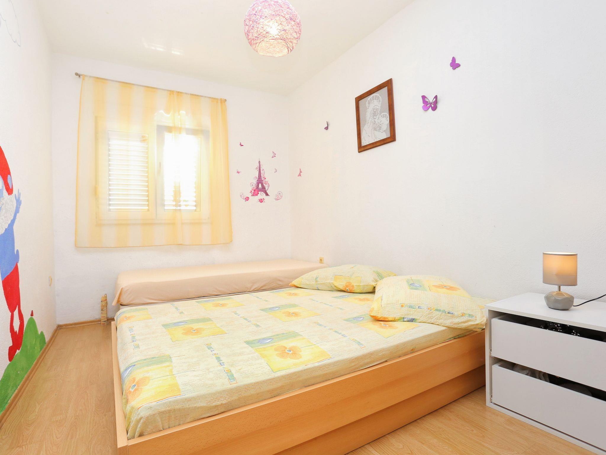 Ferienwohnung bietet Platz für 9 Gäste. Die Betten sind in Schlafzimmern, die es 3 gibt, innerhalb einer Gesamtfläche von 85m2, angeordnet. Die Gäste haben eine eigene Terrasse zur Verfügung, auf der sie in warmen Sommernächten genießen können. Das Apartment bietet Meerblick. Es ist erlaubt, Speisen auf dem Gemeinschafts-Grill vorzubereiten. IM PREIS INBEGRIFFEN: Kurtaxe, Endreinigung, Klimatisierung, Parkplatz, Internet, Wäschewaschen, tragbarer Grill. VERBINDLICHE ZUSÄTZLICHE KOSTEN: Aufzahlung für Kurzaufenthalte (prozentualer Zuschlag pro Nächtigungsanzahl: 30% - 1, 20% - 2, 10% - 3). UNVERBINDLICHE ZUSÄTZLICHE KOSTEN: Bootsanlegeplatz (10,00 € pro Nacht), Zusatzbett (10,00 € pro Nacht). Die Verfügbarkeit zusätzlicher Dienstleistungen in Ihrem reservierten Termin und die Preise derselben (falls nicht aufgeführt) müssen im Voraus überprüft werden. Zusätzliche Dienstleistungen die in der Zahlungsaufforderung nicht aufgeführt sind werden direkt beim Vermieter bezahlt, angenommen der Gast nutzt auch diese.