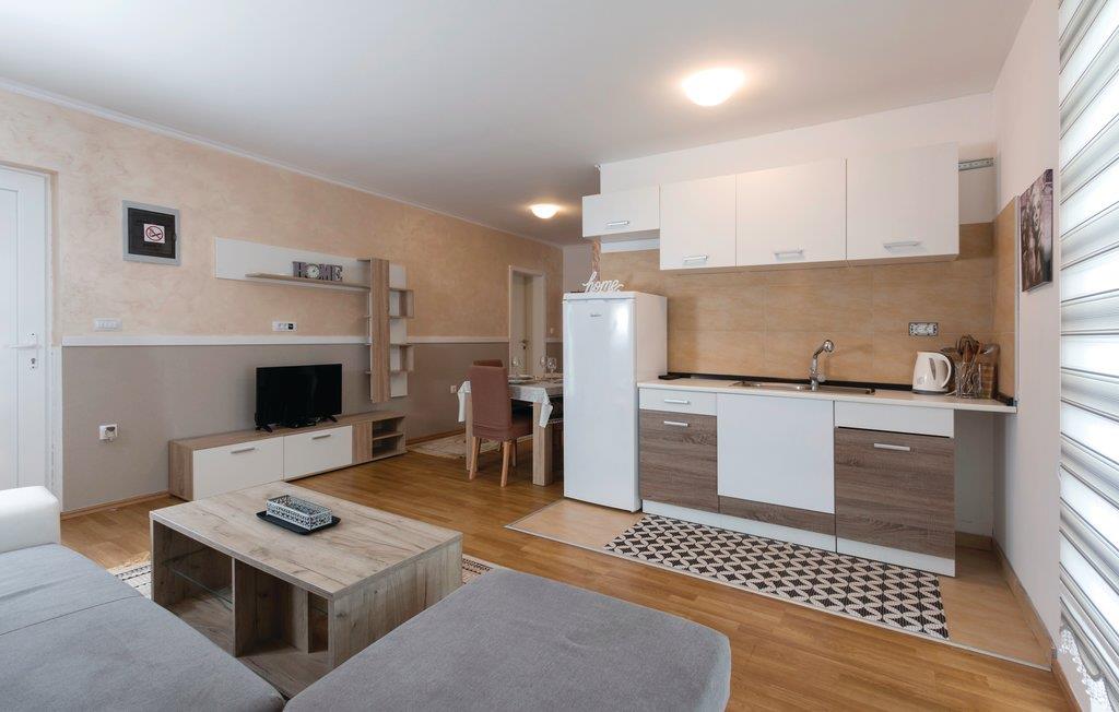 Dette personligt indrettede feriehus med privat pool, ligger i udkanten af byen Fazana, i fredelige og landlige omgivelser. Det helt rigtige valg til en afslappet familieferie eller ferie med vennerne. Huset er opdelt i to separate lejligheder og ligger i en indhegnet have. På husets forside er der pool, mens der er en overdækket terrasse med grill på bagsiden. Den lille by Fazana har udviklet sig fra lille fiskerleje til et elsket feriemål med talrige barer og restauranter og mange former for sommerunderholdning. Herfra sejler der dagligt både til nationalparken Brijuni, en øgruppe med 14 småøer, der ligger lige udenfor kysten.