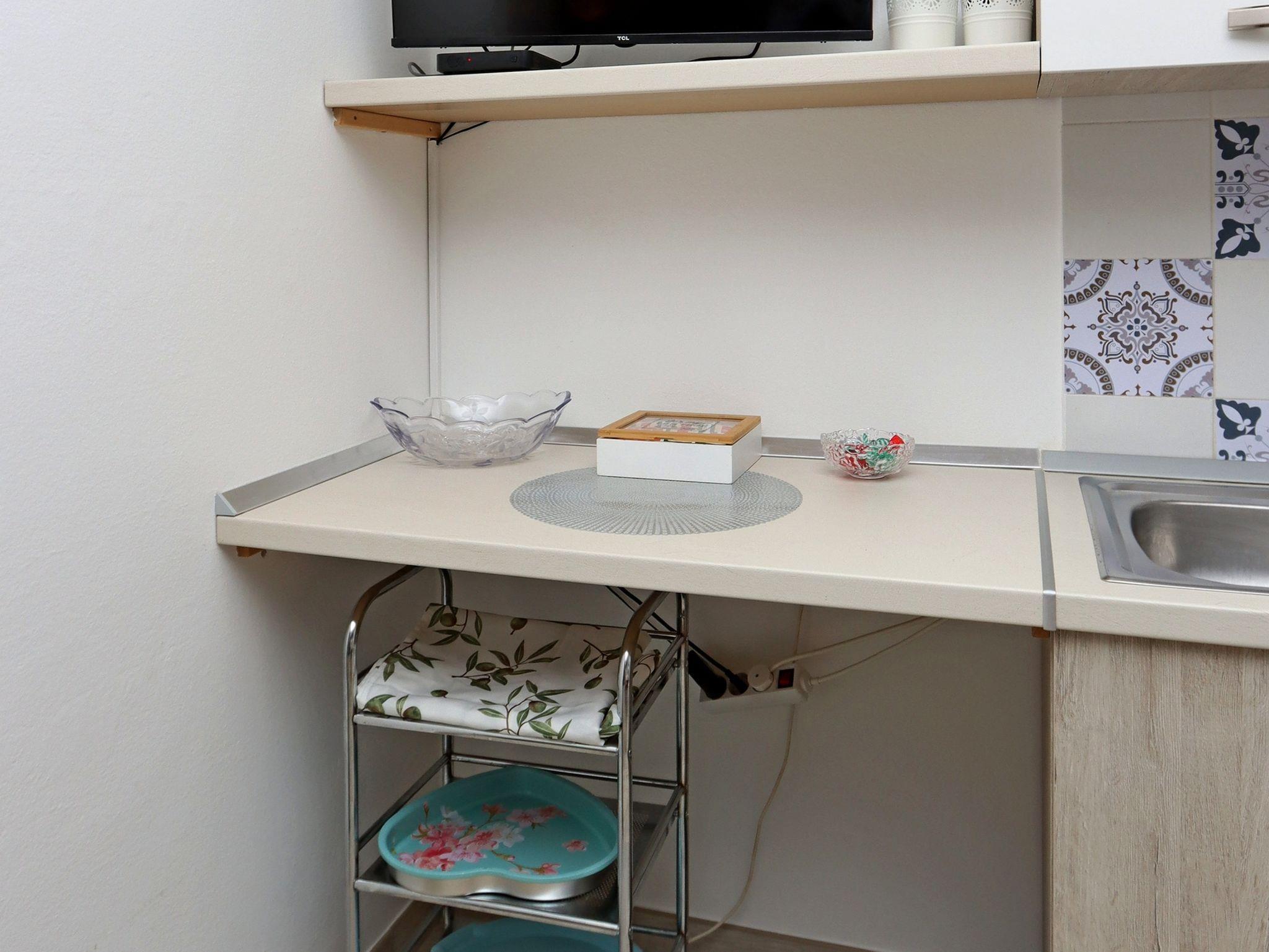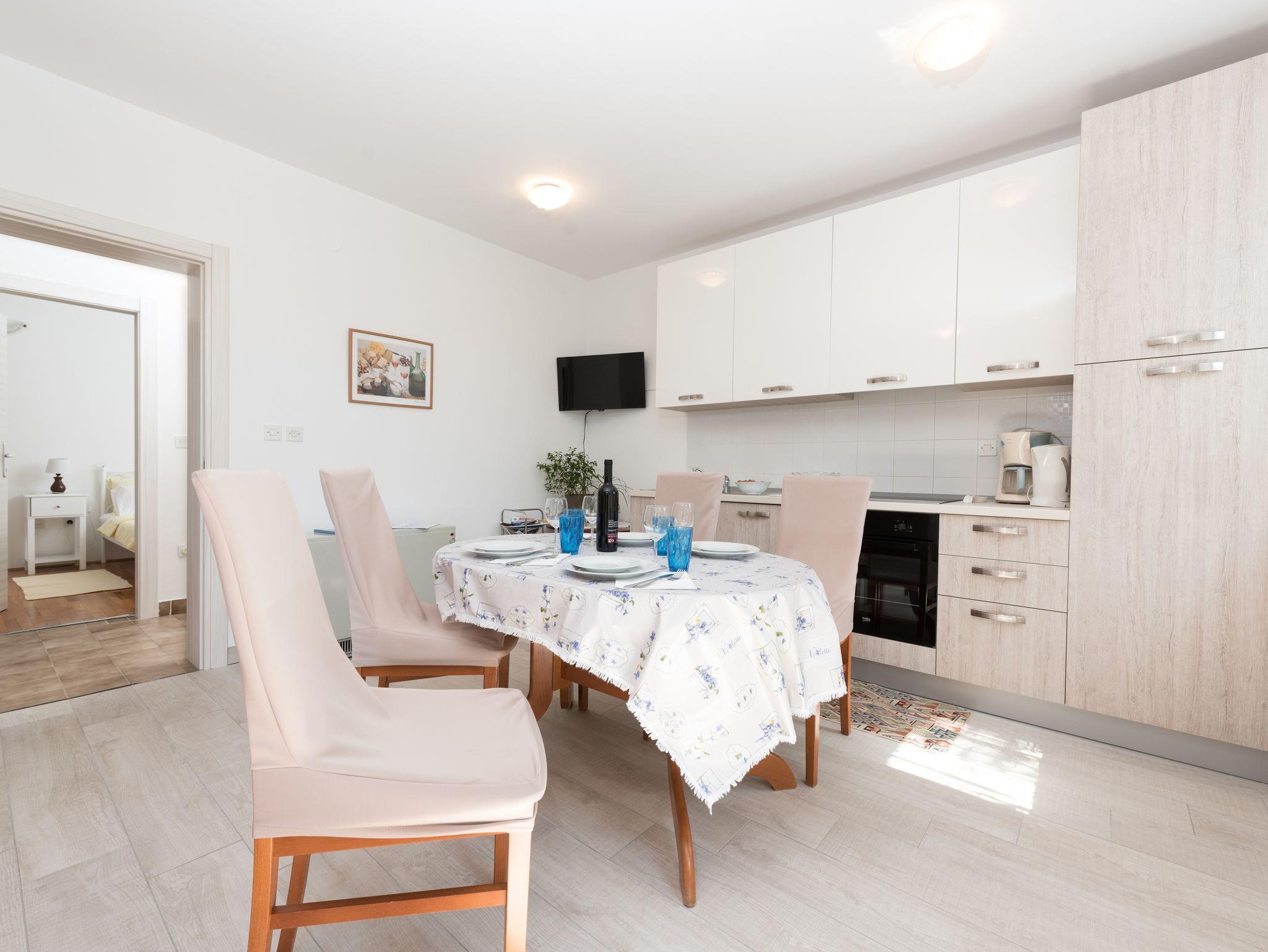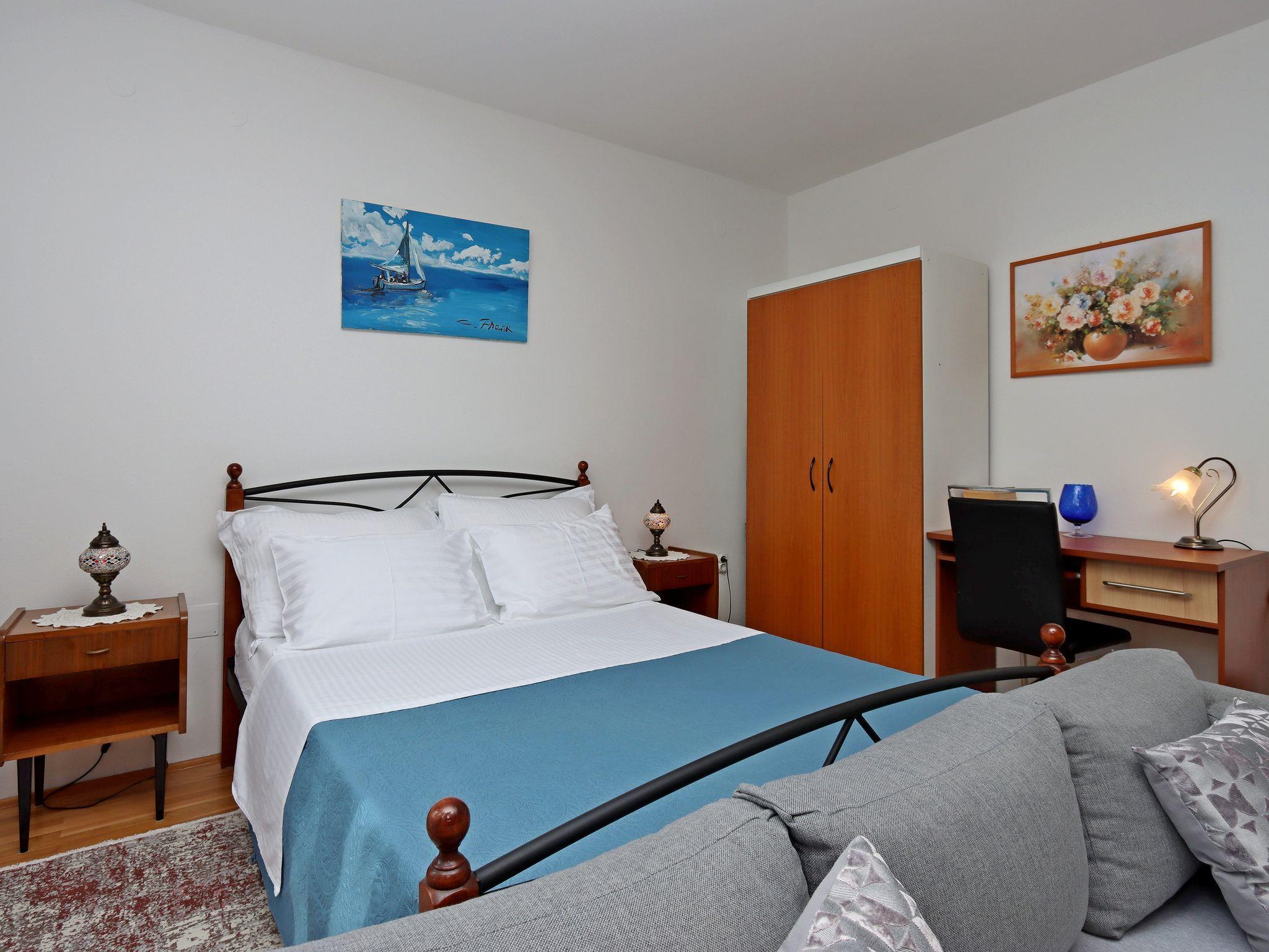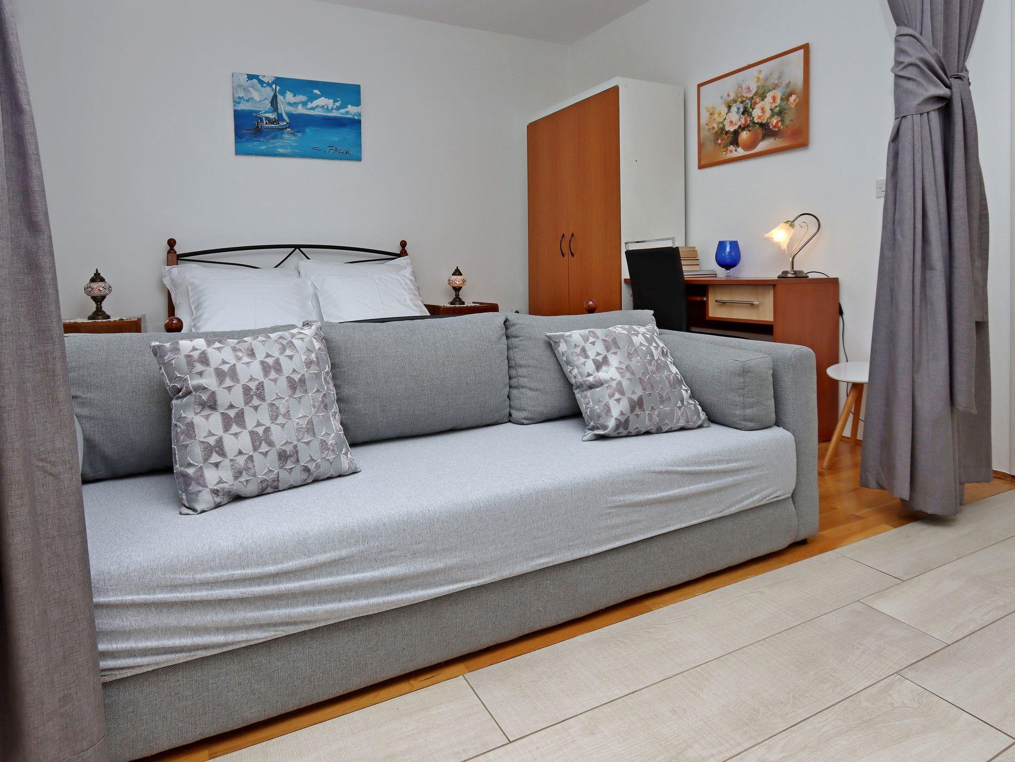 Ferienwohnung bietet Platz für 4 Gäste. Die Betten sind in Schlafzimmern, die es 1 gibt, und in Wohnzimmer, innerhalb einer Gesamtfläche von 48m2, angeordnet. Die Gäste haben eine eigene Terrasse zur Verfügung, auf der sie in warmen Sommernächten genießen können. Das Apartment bietet Meerblick. IM PREIS INBEGRIFFEN: Kurtaxe, Endreinigung, Klimatisierung, Parkplatz, Internet, Bügeleisen, Bügelbrett, Föhn. VERBINDLICHE ZUSÄTZLICHE KOSTEN: Aufzahlung für Kurzaufenthalte (prozentualer Zuschlag pro Nächtigungsanzahl: 30% - 1, 20% - 2, 10% - 3). Die Verfügbarkeit zusätzlicher Dienstleistungen in Ihrem reservierten Termin und die Preise derselben (falls nicht aufgeführt) müssen im Voraus überprüft werden. Zusätzliche Dienstleistungen die in der Zahlungsaufforderung nicht aufgeführt sind werden direkt beim Vermieter bezahlt, angenommen der Gast nutzt auch diese. Ermäßigung auf den Grundpreis: Gratistag 14=13 (bei einem Aufenthalt von 14 Tagen oder mehr erhalten Sie einen Gratistag für den Aufenthalt bis 31.12.26).