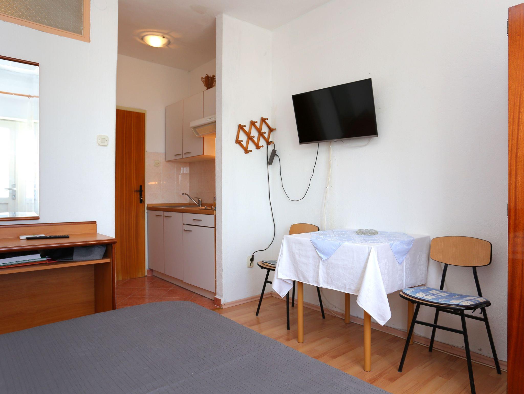 Studio bietet Platz für 2 Gäste. Die Betten sind in Schlafzimmern, die es 1 gibt, innerhalb einer Gesamtfläche von 17m2, angeordnet. Die Gäste haben einen eigenen Balkon zur Verfügung, auf der sie in warmen Sommernächten genießen können. Das Studio-Apartment bietet Meerblick. Es ist erlaubt, Speisen auf dem Gemeinschafts-Grill vorzubereiten. In der Unterkunftseinheit besteht die Möglichkeit des Mitbringens von Haustieren gegen Aufpreis. IM PREIS INBEGRIFFEN: Kurtaxe, Endreinigung, Klimatisierung, Parkplatz, Internet, Kinderbett, Bügeleisen, Bügelbrett, Föhn. VERBINDLICHE ZUSÄTZLICHE KOSTEN: Aufzahlung für Kurzaufenthalte (prozentualer Zuschlag pro Nächtigungsanzahl: 30% - 1, 20% - 2, 10% - 3). UNVERBINDLICHE ZUSÄTZLICHE KOSTEN: Haustiere (10,00 € pro Nacht). Die Verfügbarkeit zusätzlicher Dienstleistungen in Ihrem reservierten Termin und die Preise derselben (falls nicht aufgeführt) müssen im Voraus überprüft werden. Zusätzliche Dienstleistungen die in der Zahlungsaufforderung nicht aufgeführt sind werden direkt beim Vermieter bezahlt, angenommen der Gast nutzt auch diese. Ermäßigung auf den Grundpreis: Gratistag 14=13 (bei einem Aufenthalt von 14 Tagen oder mehr erhalten Sie einen Gratistag für den Aufenthalt bis 31.12.26).