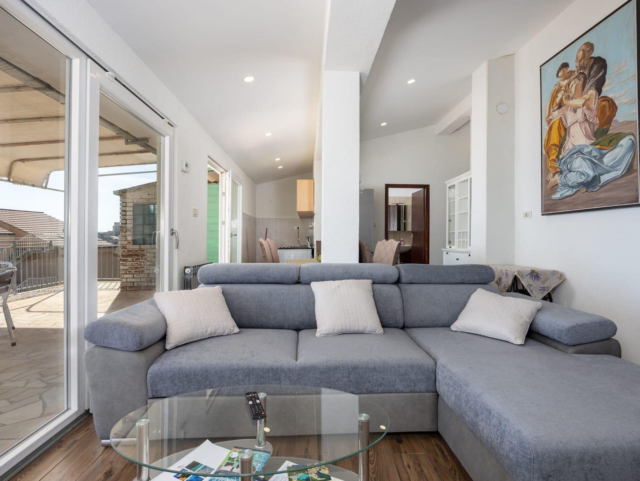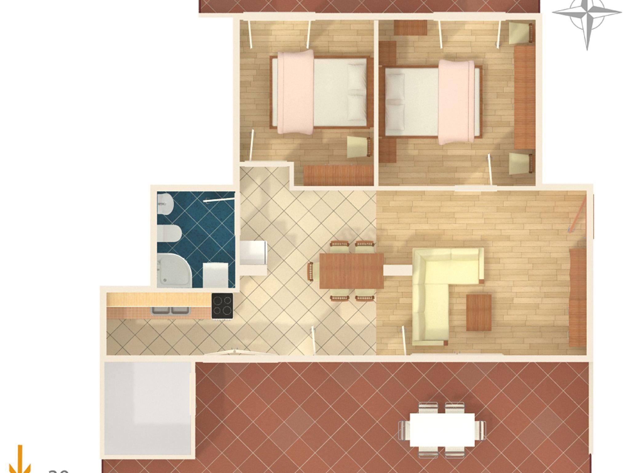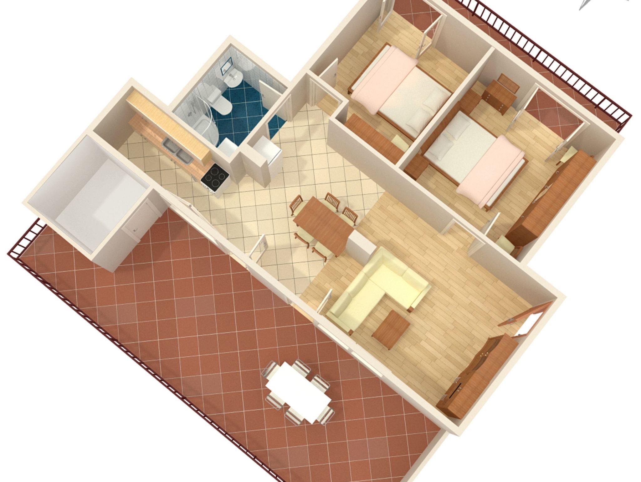 Ferienwohnung bietet Platz für 4 Gäste. Die Betten sind in Schlafzimmern, die es 2 gibt, innerhalb einer Gesamtfläche von 56m2, angeordnet. Die Gäste haben eine eigene Terrasse zur Verfügung, auf der sie in warmen Sommernächten genießen können. Das Apartment bietet Meerblick. Es ist erlaubt, Speisen auf dem Gemeinschafts-Grill vorzubereiten. In der Unterkunftseinheit besteht die Möglichkeit des Mitbringens von Haustieren gegen Aufpreis. IM PREIS INBEGRIFFEN: Kurtaxe, Endreinigung, Klimatisierung, Parkplatz, Internet, Kinderbett, Bügeleisen, Bügelbrett, Föhn, 2 Kinderbettchen (im Preis enthalten). VERBINDLICHE ZUSÄTZLICHE KOSTEN: Aufzahlung für Kurzaufenthalte (prozentualer Zuschlag pro Nächtigungsanzahl: 30% - 1, 20% - 2, 10% - 3). UNVERBINDLICHE ZUSÄTZLICHE KOSTEN: Haustiere (10,00 € pro Nacht). Die Verfügbarkeit zusätzlicher Dienstleistungen in Ihrem reservierten Termin und die Preise derselben (falls nicht aufgeführt) müssen im Voraus überprüft werden. Zusätzliche Dienstleistungen die in der Zahlungsaufforderung nicht aufgeführt sind werden direkt beim Vermieter bezahlt, angenommen der Gast nutzt auch diese. Ermäßigung auf den Grundpreis: Gratistag 14=13 (bei einem Aufenthalt von 14 Tagen oder mehr erhalten Sie einen Gratistag für den Aufenthalt bis 31.12.26).