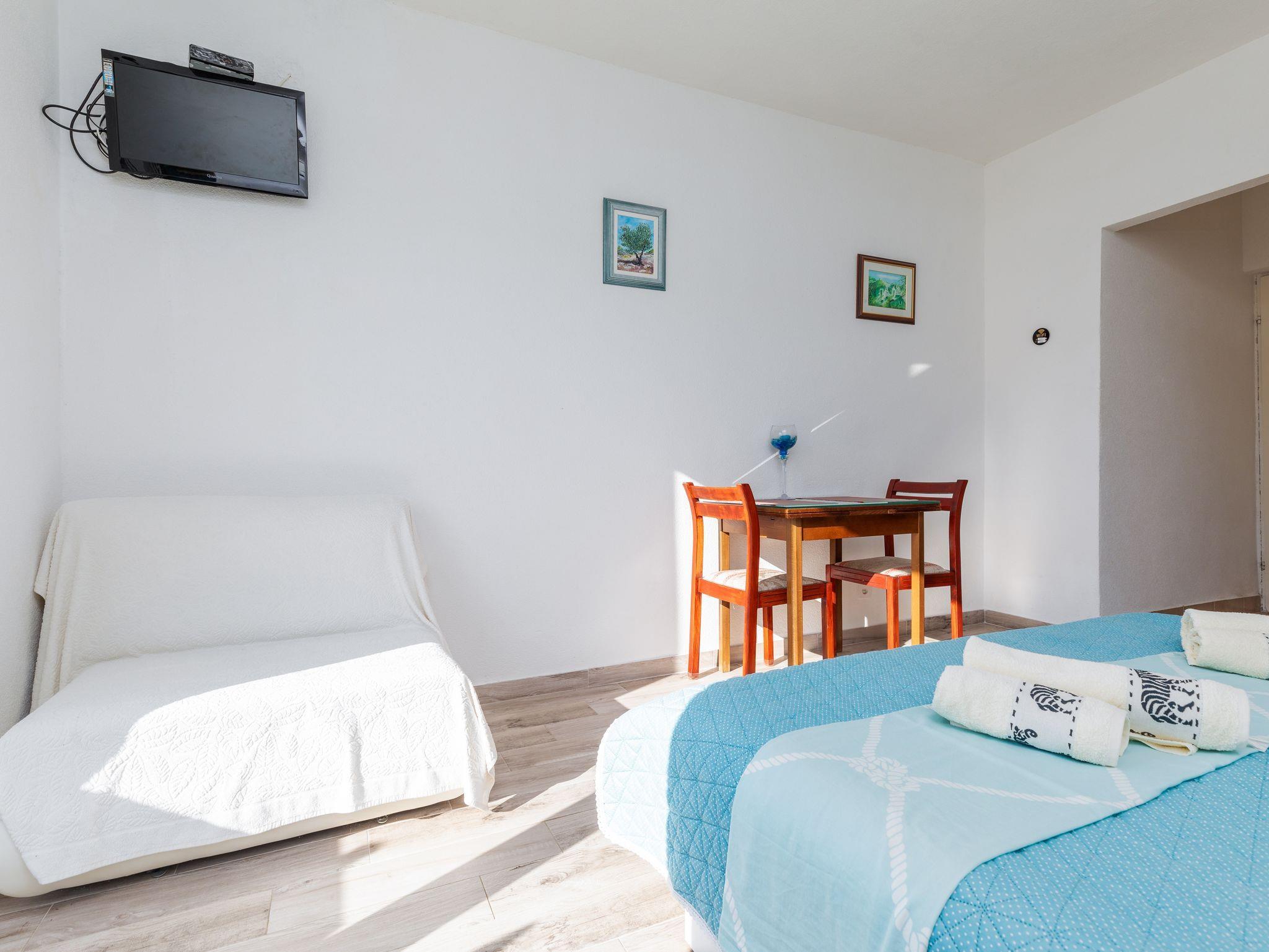 Studio bietet Platz für 2 Gäste. Die Betten sind in Schlafzimmern, die es 1 gibt, innerhalb einer Gesamtfläche von 20m2, angeordnet. Die Gäste haben einen eigenen Balkon zur Verfügung, auf der sie in warmen Sommernächten genießen können. Das Studio-Apartment bietet Meerblick. Es ist erlaubt, Speisen auf dem Gemeinschafts-Grill vorzubereiten. In der Unterkunftseinheit besteht die Möglichkeit des Mitbringens von Haustieren gegen Aufpreis. IM PREIS INBEGRIFFEN: Kurtaxe, Endreinigung, Klimatisierung, Parkplatz, Internet, Kinderbett, tragbarer Grill. VERBINDLICHE ZUSÄTZLICHE KOSTEN: Aufzahlung für Kurzaufenthalte (prozentualer Zuschlag pro Nächtigungsanzahl: 30% - 1, 20% - 2, 10% - 3). UNVERBINDLICHE ZUSÄTZLICHE KOSTEN: Haustiere (5,00 € pro Nacht). Die Verfügbarkeit zusätzlicher Dienstleistungen in Ihrem reservierten Termin und die Preise derselben (falls nicht aufgeführt) müssen im Voraus überprüft werden. Zusätzliche Dienstleistungen die in der Zahlungsaufforderung nicht aufgeführt sind werden direkt beim Vermieter bezahlt, angenommen der Gast nutzt auch diese. Ermäßigung auf den Grundpreis: Gratistag 14=13 (bei einem Aufenthalt von 14 Tagen oder mehr erhalten Sie einen Gratistag für den Aufenthalt bis 31.12.26).