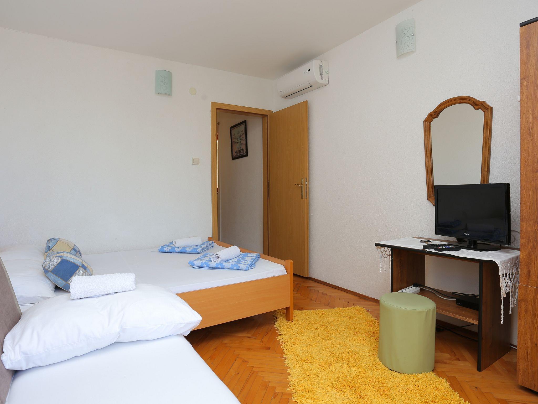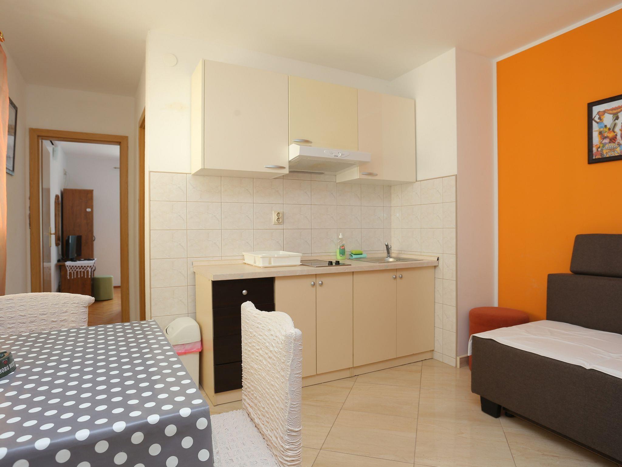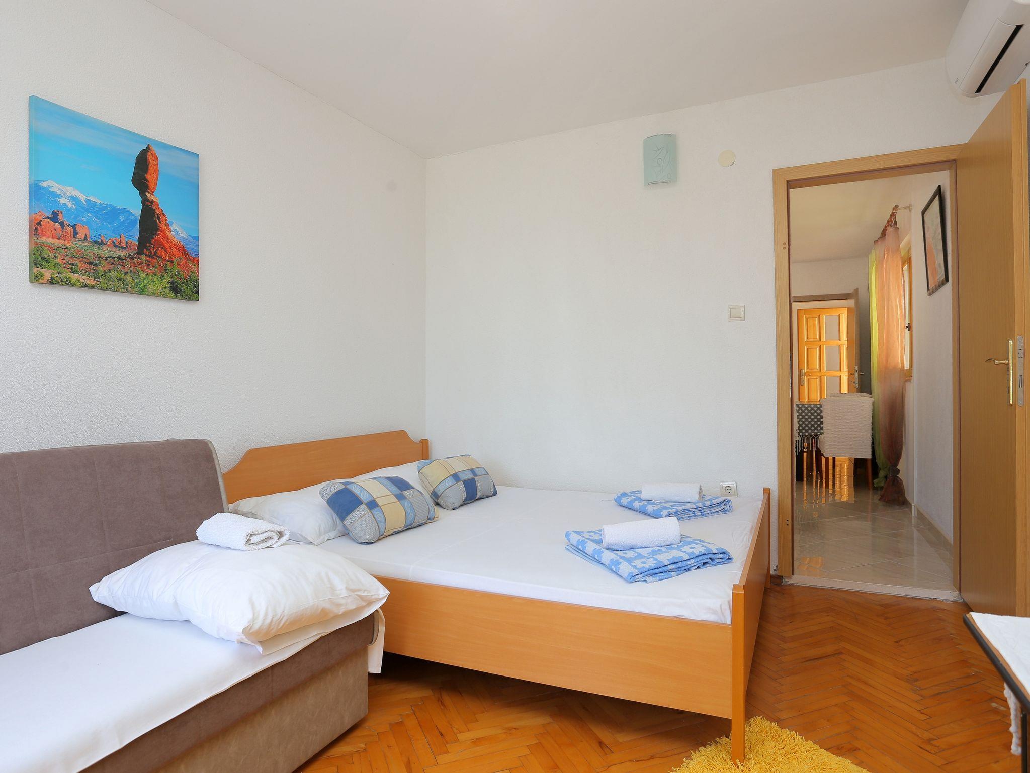 Ferienwohnung bietet Platz für 4 Gäste. Die Betten sind in Schlafzimmern, die es 1 gibt, innerhalb einer Gesamtfläche von 29m2, angeordnet. Die Gäste haben einen eigenen Balkon zur Verfügung, auf der sie in warmen Sommernächten genießen können. Das Apartment bietet Meerblick. Es ist erlaubt, Speisen auf dem Gemeinschafts-Grill vorzubereiten. IM PREIS INBEGRIFFEN: Kurtaxe, Endreinigung, Klimatisierung, Parkplatz, Internet, Föhn, 1 Bett für Kinder (im Preis enthalten). VERBINDLICHE ZUSÄTZLICHE KOSTEN: Aufzahlung für Kurzaufenthalte (prozentualer Zuschlag pro Nächtigungsanzahl: 30% - 1, 20% - 2, 10% - 3). Die Verfügbarkeit zusätzlicher Dienstleistungen in Ihrem reservierten Termin und die Preise derselben (falls nicht aufgeführt) müssen im Voraus überprüft werden. Zusätzliche Dienstleistungen die in der Zahlungsaufforderung nicht aufgeführt sind werden direkt beim Vermieter bezahlt, angenommen der Gast nutzt auch diese. Ermäßigung auf den Grundpreis: Gratistag 14=13 (bei einem Aufenthalt von 14 Tagen oder mehr erhalten Sie einen Gratistag für den Aufenthalt bis 31.12.26).