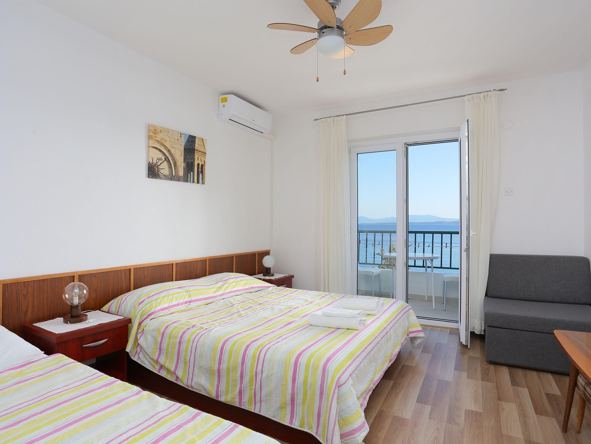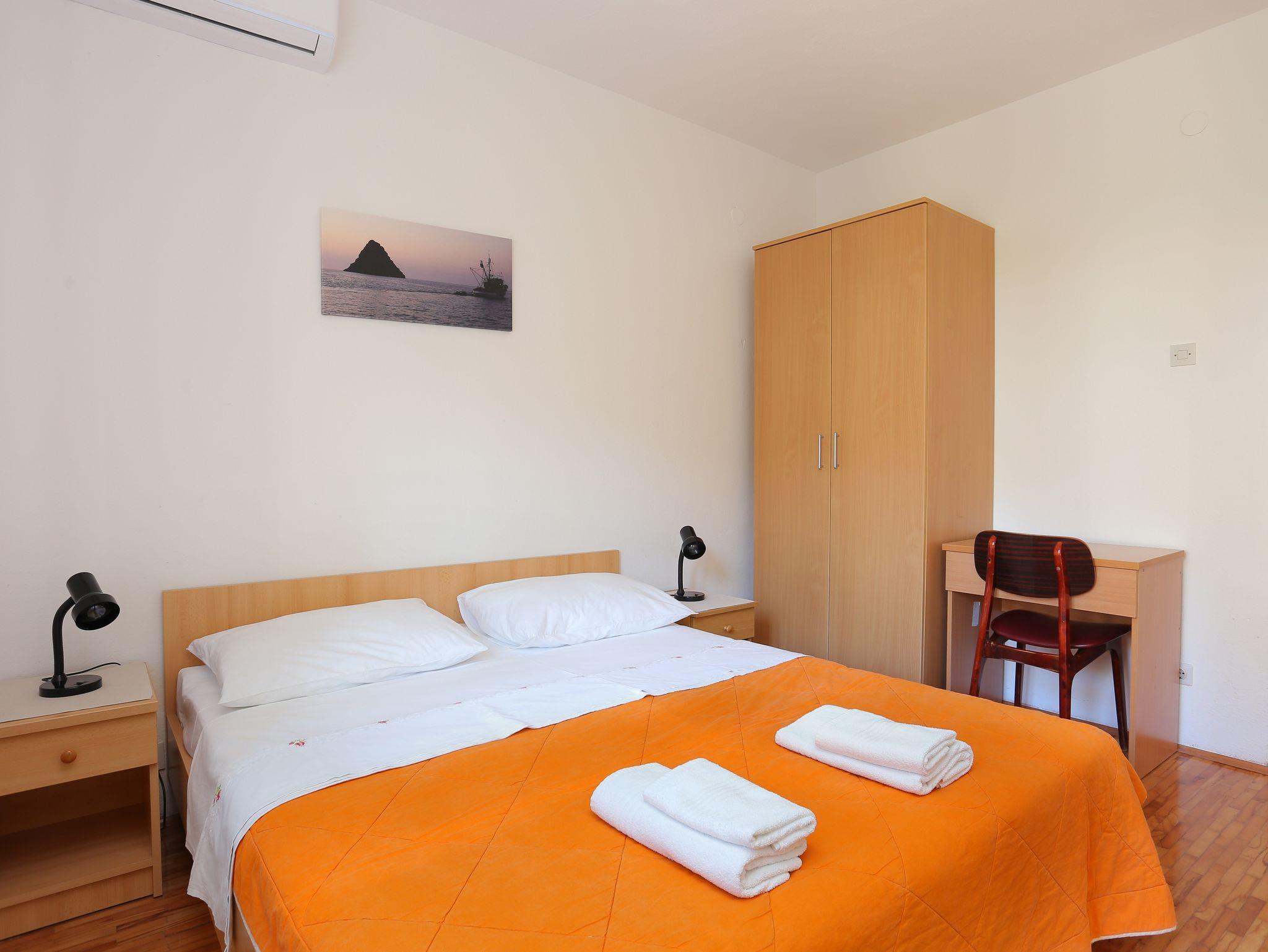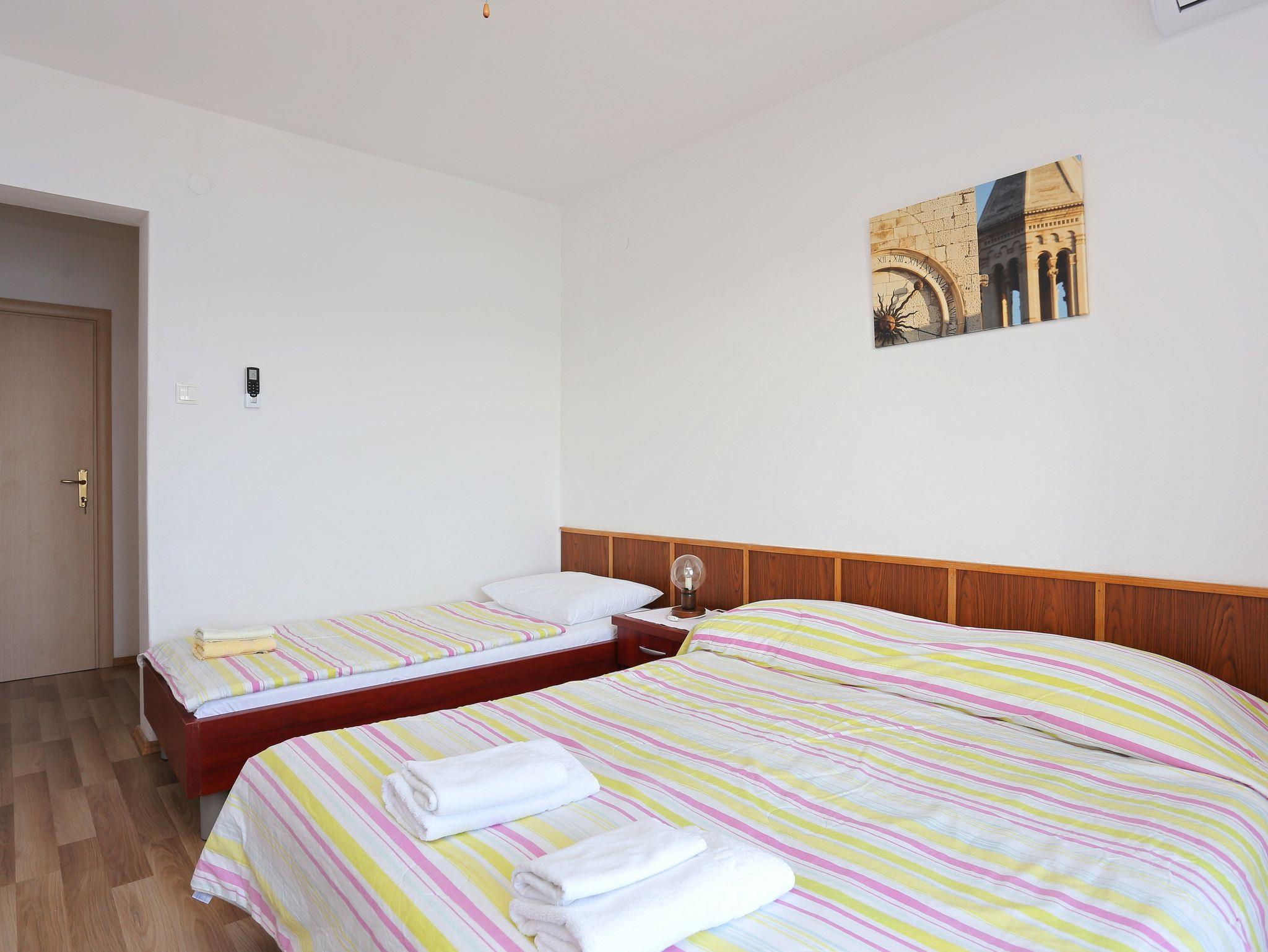 Ferienwohnung bietet Platz für 7 Gäste. Die Betten sind in Schlafzimmern, die es 3 gibt, innerhalb einer Gesamtfläche von 71m2, angeordnet. Die Gäste haben eine eigene Terrasse zur Verfügung, auf der sie in warmen Sommernächten genießen können. Das Apartment bietet Meerblick. Für vollen Genuss und Entspannung gibt es einen privaten Grill für Gäste dieser Unterkunft. Räume der gebuchten Unterkunftseinheit werden nicht in eine Ganze verbunden. Unterkunftseinheit hat Räume, die von dem Rest der Einheit abgetrennt werden. IM PREIS INBEGRIFFEN: Kurtaxe, Endreinigung, Klimatisierung, Parkplatz, Internet, Kinderbett. VERBINDLICHE ZUSÄTZLICHE KOSTEN: Aufzahlung für Kurzaufenthalte (prozentualer Zuschlag pro Nächtigungsanzahl: 30% - 1, 20% - 2, 10% - 3). Die Verfügbarkeit zusätzlicher Dienstleistungen in Ihrem reservierten Termin und die Preise derselben (falls nicht aufgeführt) müssen im Voraus überprüft werden. Zusätzliche Dienstleistungen die in der Zahlungsaufforderung nicht aufgeführt sind werden direkt beim Vermieter bezahlt, angenommen der Gast nutzt auch diese.
