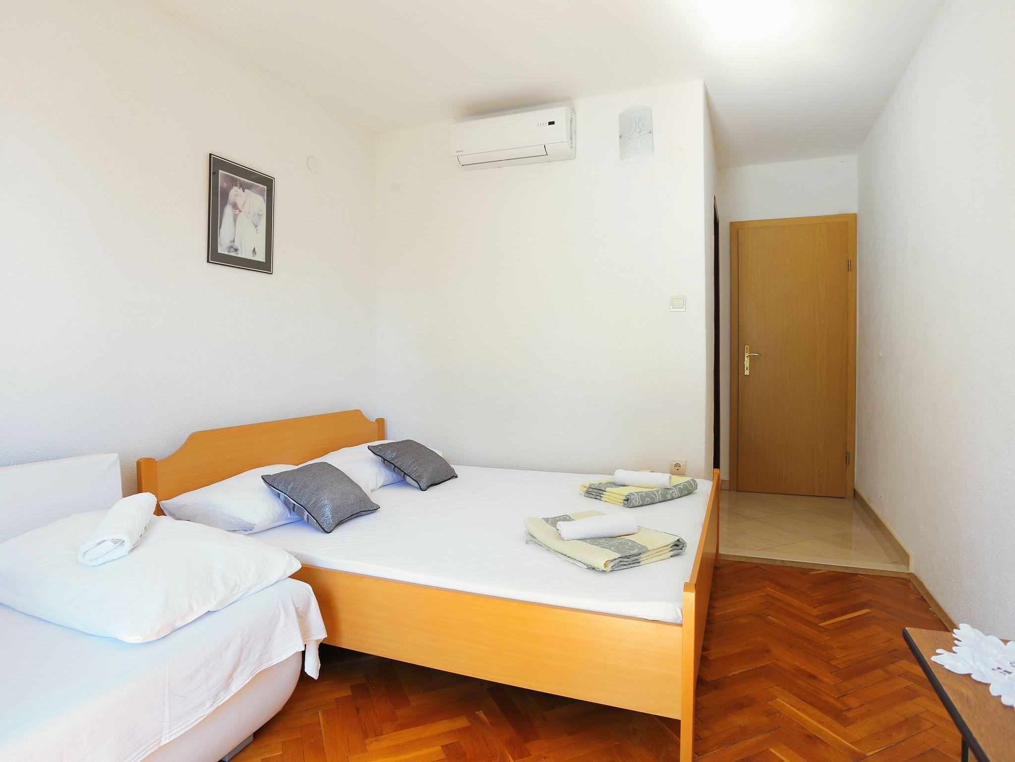 Ferienwohnung bietet Platz für 5 Gäste. Die Betten sind in Schlafzimmern, die es 2 gibt, innerhalb einer Gesamtfläche von 39m2, angeordnet. Die Gäste haben einen eigenen Balkon zur Verfügung, auf der sie in warmen Sommernächten genießen können. Das Apartment bietet Meerblick. Es ist erlaubt, Speisen auf dem Gemeinschafts-Grill vorzubereiten. IM PREIS INBEGRIFFEN: Kurtaxe, Endreinigung, Klimatisierung, Parkplatz, Internet, Föhn. VERBINDLICHE ZUSÄTZLICHE KOSTEN: Aufzahlung für Kurzaufenthalte (prozentualer Zuschlag pro Nächtigungsanzahl: 30% - 1, 20% - 2, 10% - 3). Die Verfügbarkeit zusätzlicher Dienstleistungen in Ihrem reservierten Termin und die Preise derselben (falls nicht aufgeführt) müssen im Voraus überprüft werden. Zusätzliche Dienstleistungen die in der Zahlungsaufforderung nicht aufgeführt sind werden direkt beim Vermieter bezahlt, angenommen der Gast nutzt auch diese. Ermäßigung auf den Grundpreis: Gratistag 14=13 (bei einem Aufenthalt von 14 Tagen oder mehr erhalten Sie einen Gratistag für den Aufenthalt bis 31.12.26).