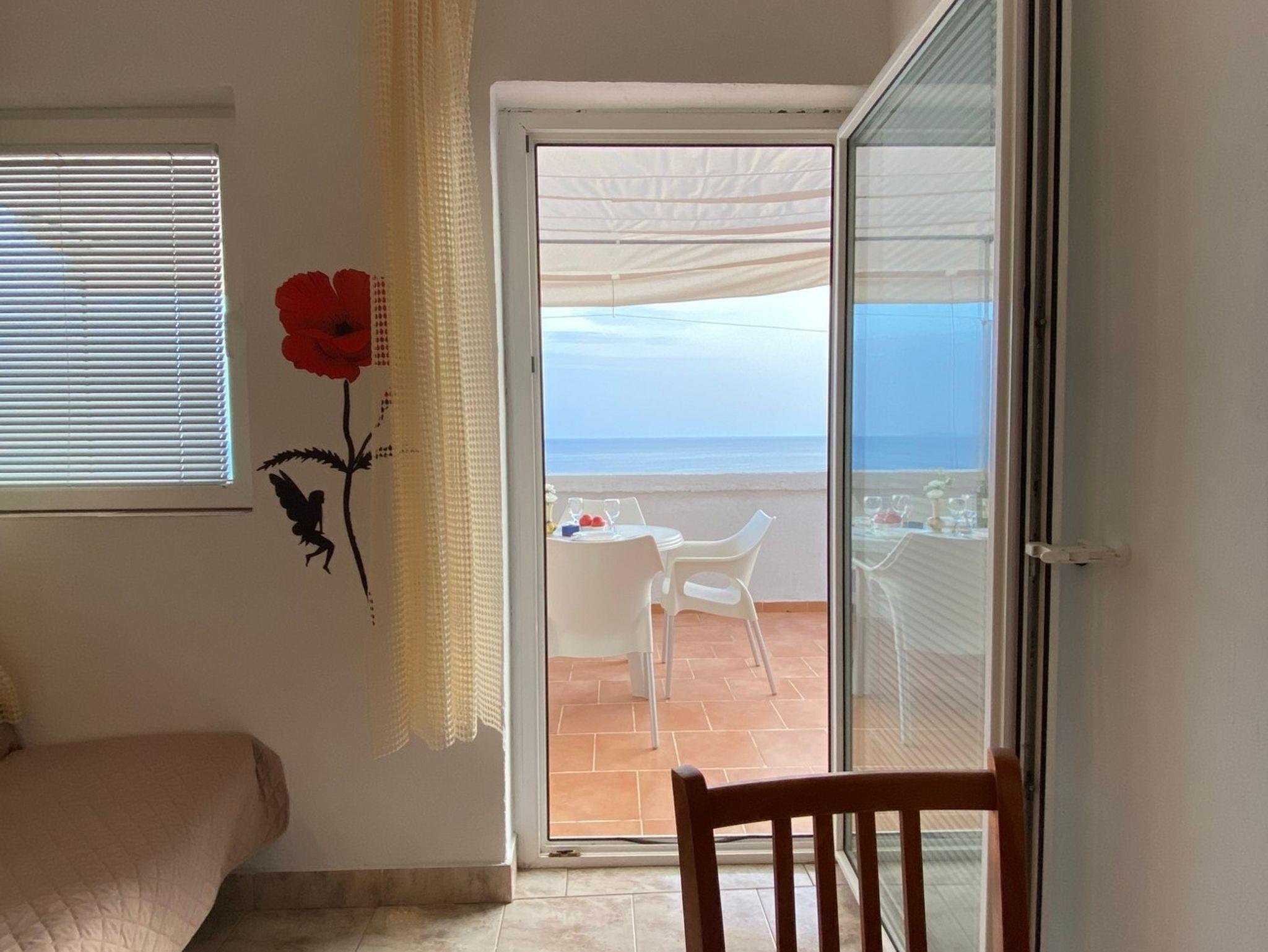Ferienwohnung bietet Platz für 5 Gäste. Die Betten sind in Schlafzimmern, die es 2 gibt, und in Wohnzimmer, innerhalb einer Gesamtfläche von 60m2, angeordnet. Die Gäste haben eine eigene Terrasse zur Verfügung, auf der sie in warmen Sommernächten genießen können. Das Apartment bietet Meerblick. In der Unterkunftseinheit besteht die Möglichkeit des Mitbringens von Haustieren gegen Aufpreis. IM PREIS INBEGRIFFEN: Kurtaxe, Endreinigung, Klimatisierung, Parkplatz, Internet, Föhn. UNVERBINDLICHE ZUSÄTZLICHE KOSTEN: Haustiere (10,00 € pro Nacht). Die Verfügbarkeit zusätzlicher Dienstleistungen in Ihrem reservierten Termin und die Preise derselben (falls nicht aufgeführt) müssen im Voraus überprüft werden. Zusätzliche Dienstleistungen die in der Zahlungsaufforderung nicht aufgeführt sind werden direkt beim Vermieter bezahlt, angenommen der Gast nutzt auch diese.