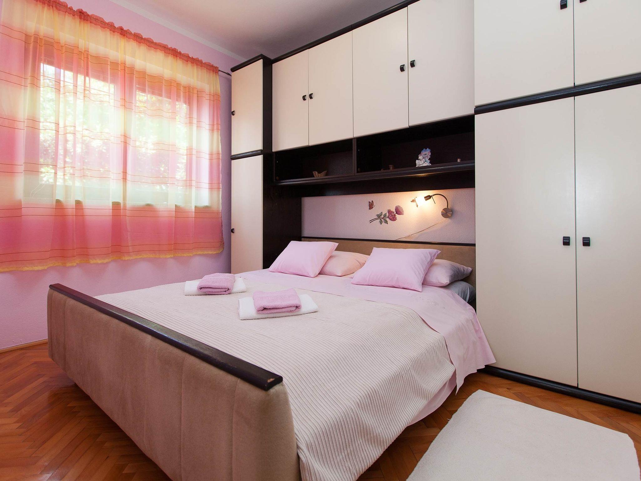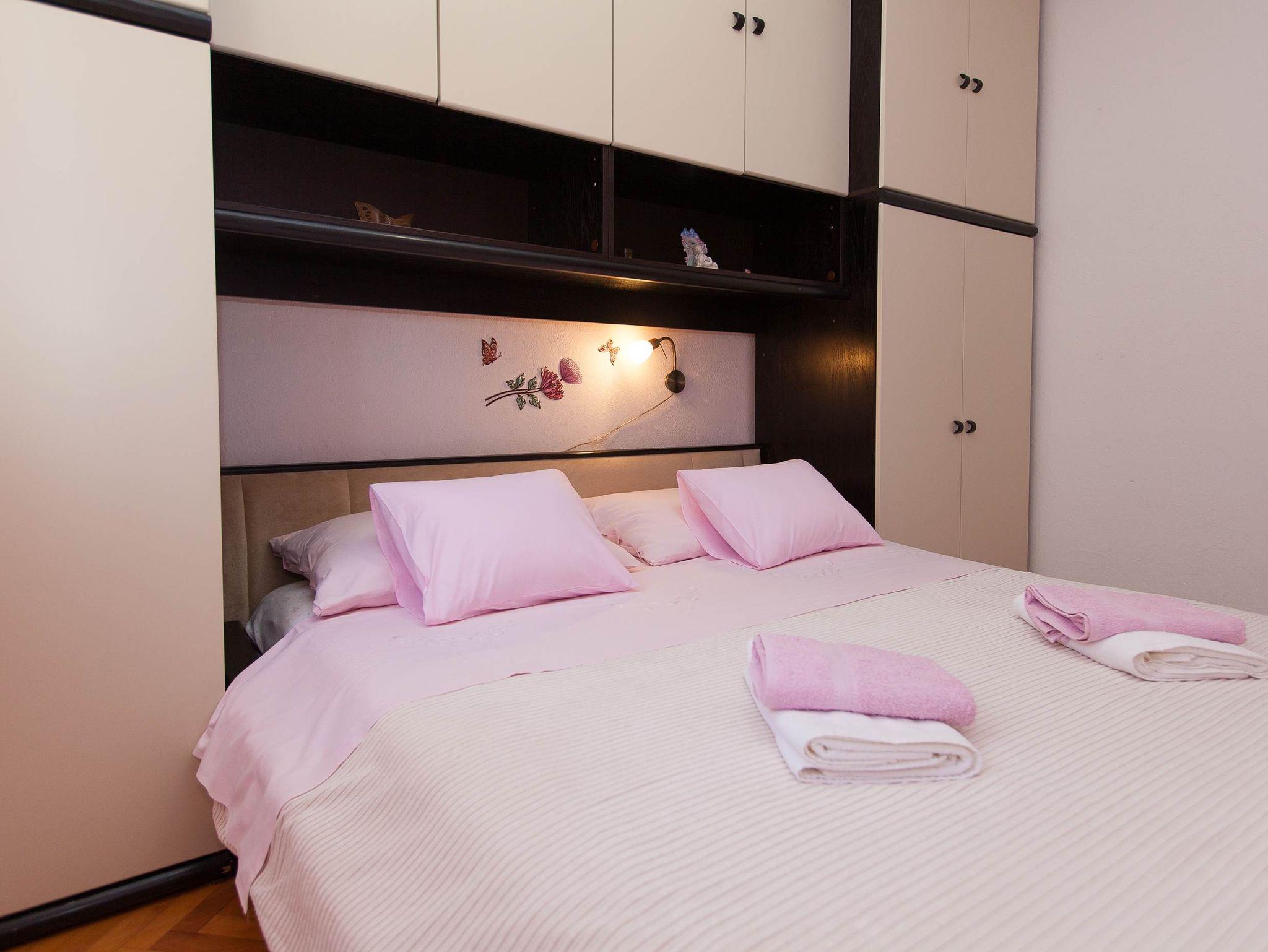 Ferienwohnung bietet Platz für 4 Gäste. Die Betten sind in Schlafzimmern, die es 2 gibt, innerhalb einer Gesamtfläche von 46m2, angeordnet. Die Gäste haben eine eigene Terrasse zur Verfügung, auf der sie in warmen Sommernächten genießen können. Das Apartment bietet Meerblick. Es ist erlaubt, Speisen auf dem Gemeinschafts-Grill vorzubereiten. In der Unterkunftseinheit besteht die Möglichkeit des Mitbringens von Haustieren gegen Aufpreis. IM PREIS INBEGRIFFEN: Kurtaxe, Endreinigung, Parkplatz, Internet, Fahrrad, Kinderbett, Bügeleisen, Bügelbrett, Föhn. VERBINDLICHE ZUSÄTZLICHE KOSTEN: Aufzahlung für Kurzaufenthalte (prozentualer Zuschlag pro Nächtigungsanzahl: 30% - 1, 20% - 2, 10% - 3). UNVERBINDLICHE ZUSÄTZLICHE KOSTEN: Klimatisierung (7,00 € pro Nacht), Haustiere (10,00 € pro Nacht). Die Verfügbarkeit zusätzlicher Dienstleistungen in Ihrem reservierten Termin und die Preise derselben (falls nicht aufgeführt) müssen im Voraus überprüft werden. Zusätzliche Dienstleistungen die in der Zahlungsaufforderung nicht aufgeführt sind werden direkt beim Vermieter bezahlt, angenommen der Gast nutzt auch diese.