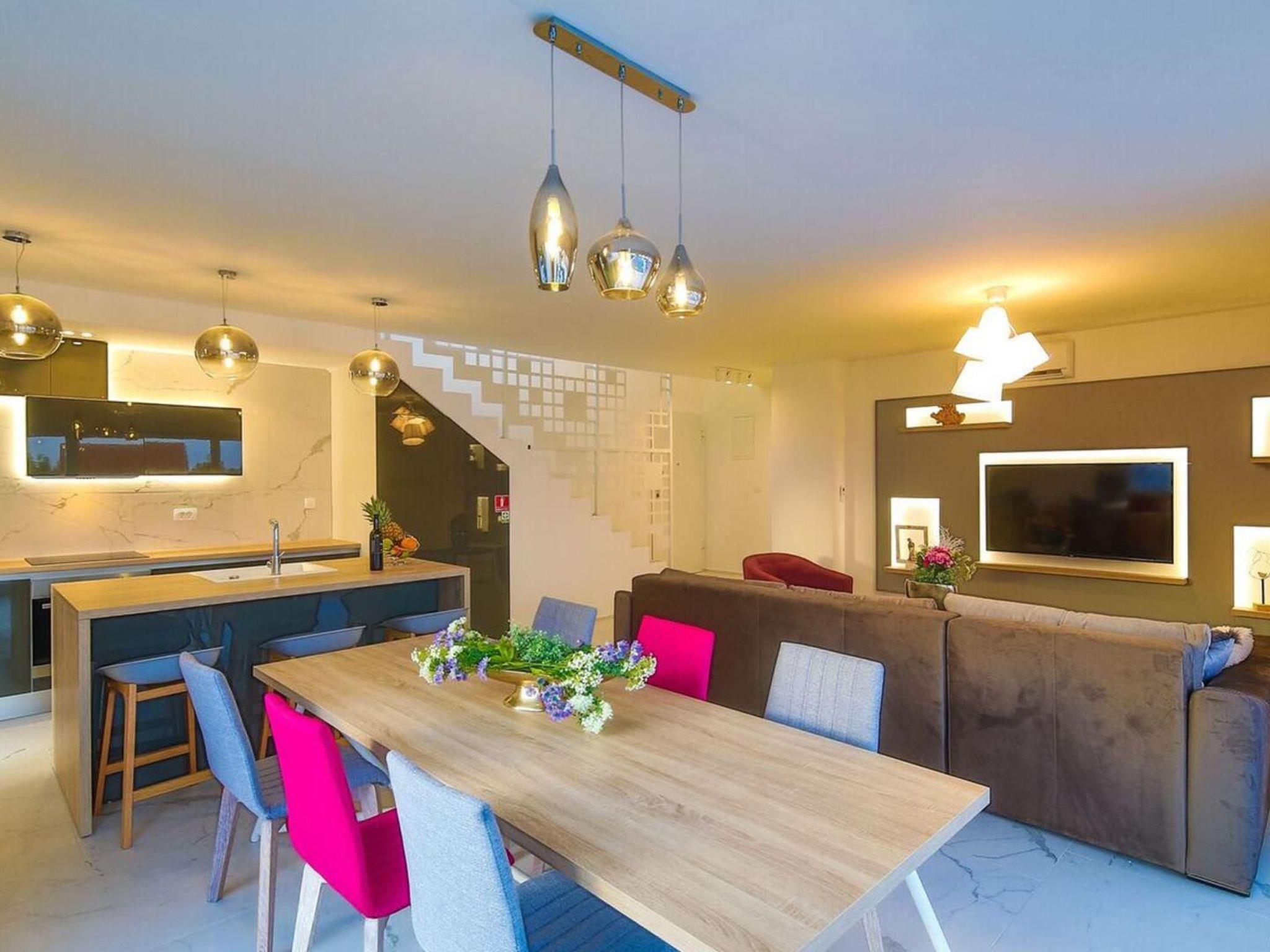 Residence 7 Stars is a luxurious newly built complex which consists of 7 luxurious and superbly furnished villas located in Kaštel Gomilica, halfway between UNESCO protected centers of town Trogir and the palace of the Roman emperor Diocletian in Split. The residence is located just 900 m from the nearest beach and within the walking distance from the nearest grocery store (180 m), restaurants (650 m), cafes (800 m), while marina Kaštela is only 950 m away. The accommodation has easy access to the main coastal road and to the motorway, offering many touring possibilities in the coastal region and in Dalmatian hinterland.